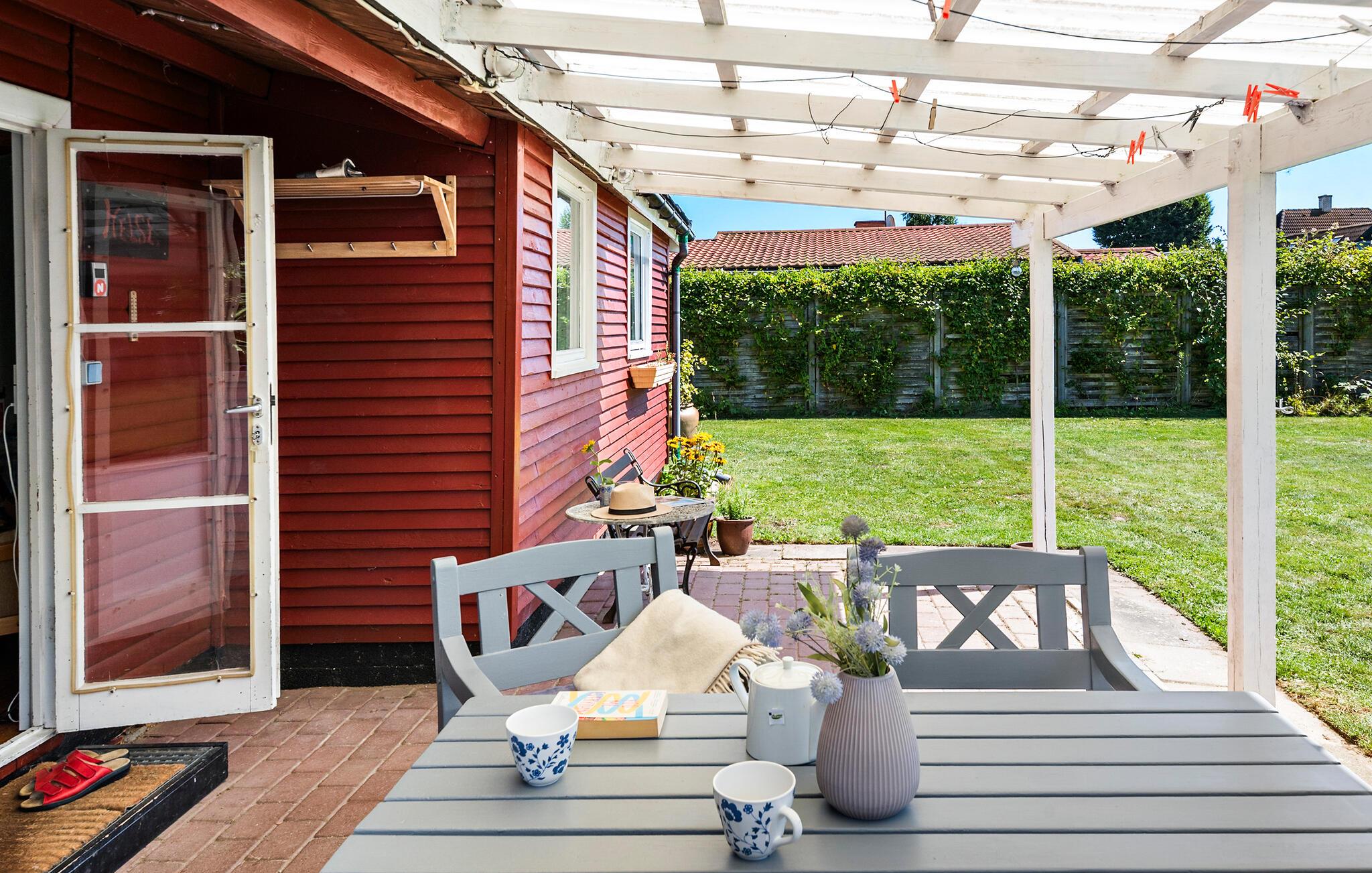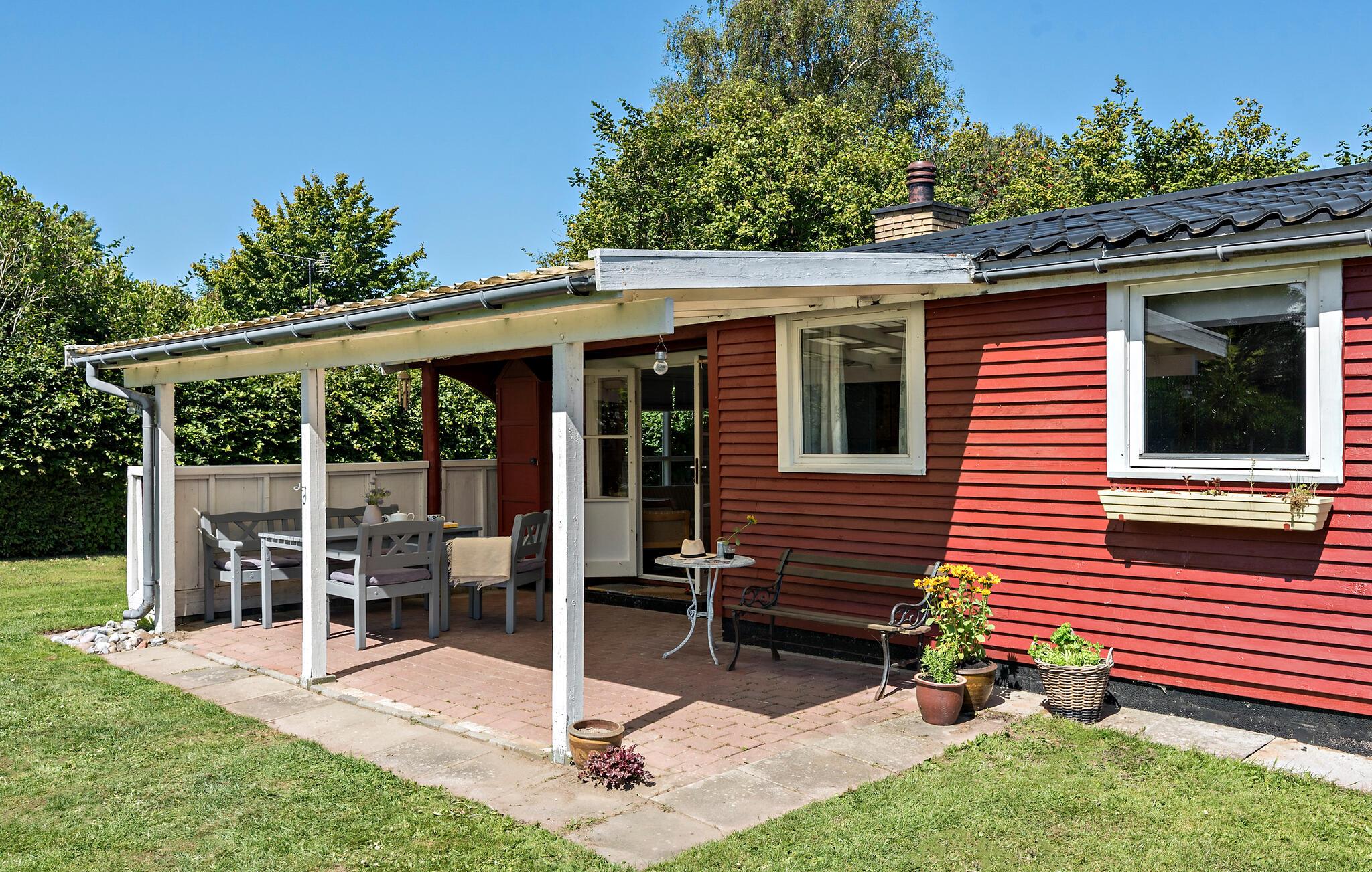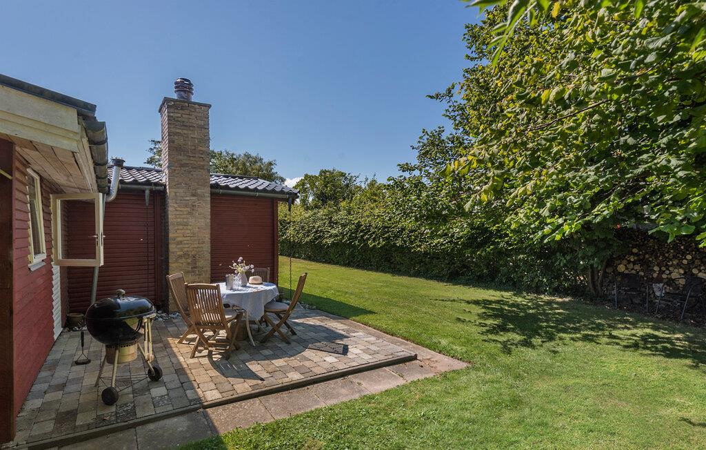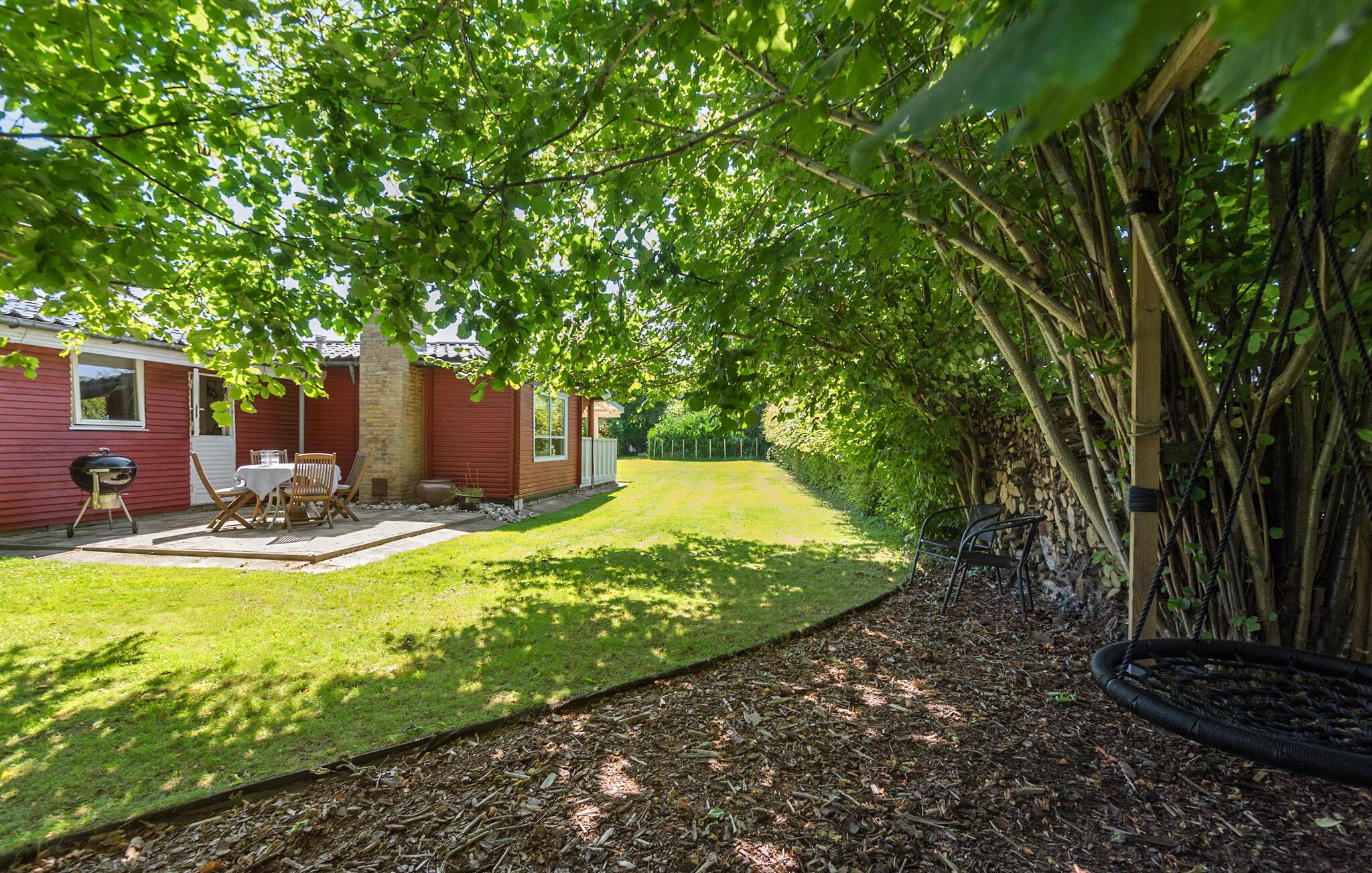 Udendørs byder haven på en overdækket terrasse med havemøbler og grill, perfekt til udendørs middage og hyggelige grillaftener. Bålpladsen er ideel til at riste skumfiduser og fortælle historier under stjernerne. Kun en kort gåtur fra huset finder I en skøn sandstrand, hvor I kan svømme, bygge sandslotte eller tage en afslappet gåtur langs vandet.