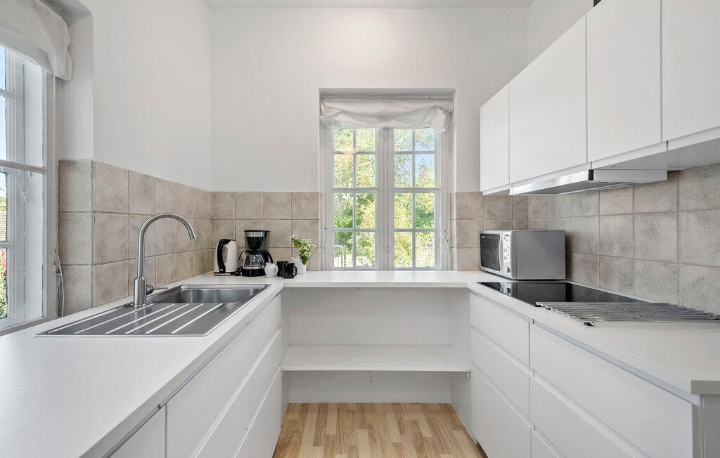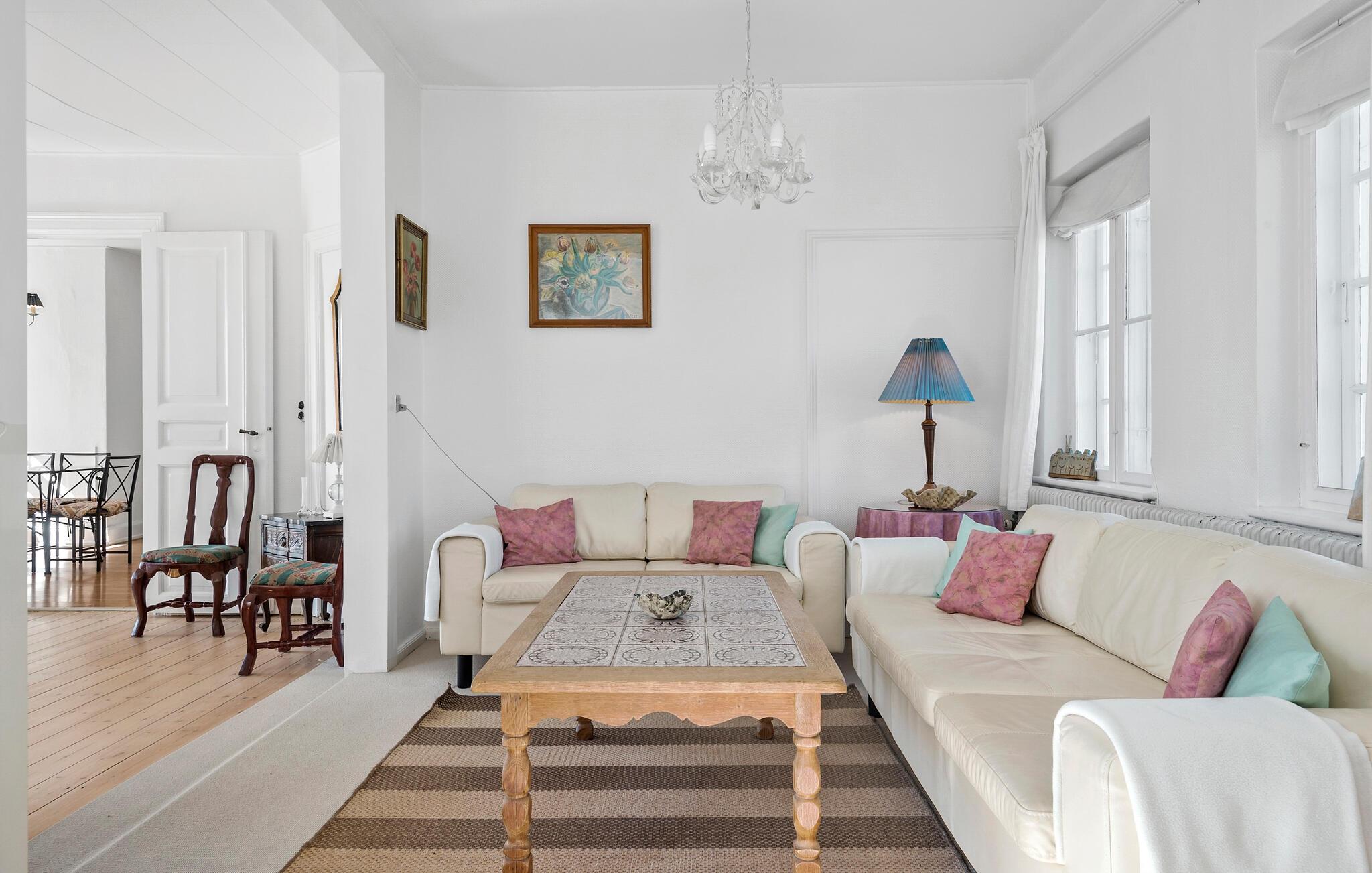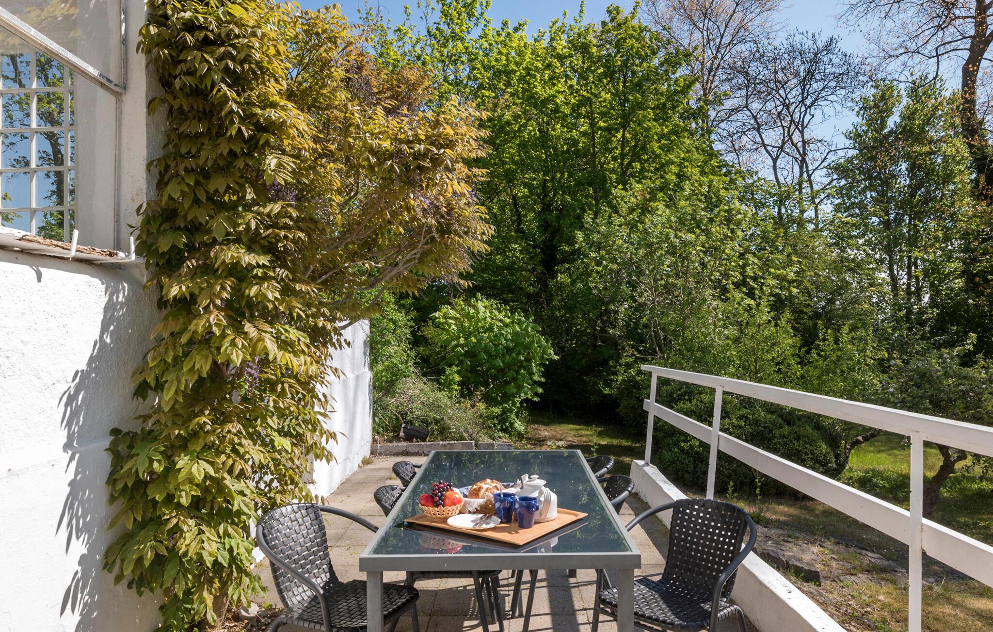 Oplev en uforglemmelig ferie i dette hyggelige sommerhus i Faxe Ladeplads, som byder på utallige muligheder for afslapning både indendørs og udendørs. Gå ind i det smagfuldt indrettede hus og bliv budt velkommen af ??den lyse, venlige atmosfære. Stuen er udstyret med et rummeligt opholdsområde, hvor I kan tilbringe rolige aftener. En separat spisestue med store vinduer giver jer en vidunderlig udsigt over haven. Køkkenet er fuldt udstyret og lader intet tilbage at ønske, uanset om I vil tilberede frisk fisk og skaldyr eller en solid morgenmad. Om eftermiddagen kan I nyde en kop te i den hyggelige vinterhave med udsigt over haven.