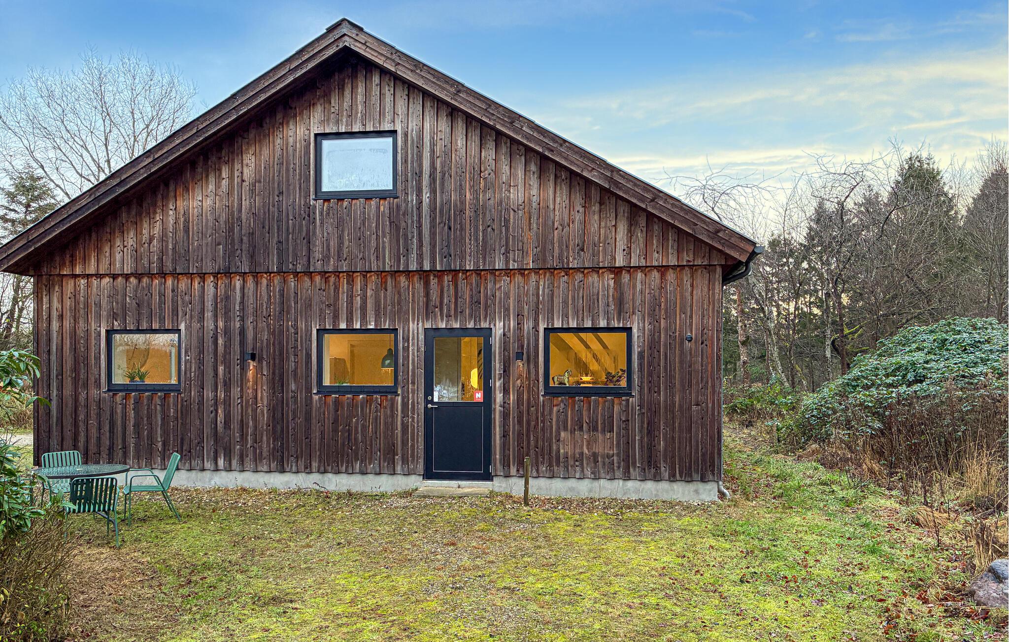 Oplev det fælles udeområde i naturnære omgivelser. Sæt jer ved havebordet foran træfacaden til afslappende pauser i det fri eller morgenmad under åben himmel. Tilbring også uforstyrrede aftener her, og nyd de naturlige omgivelser omkring huset.
