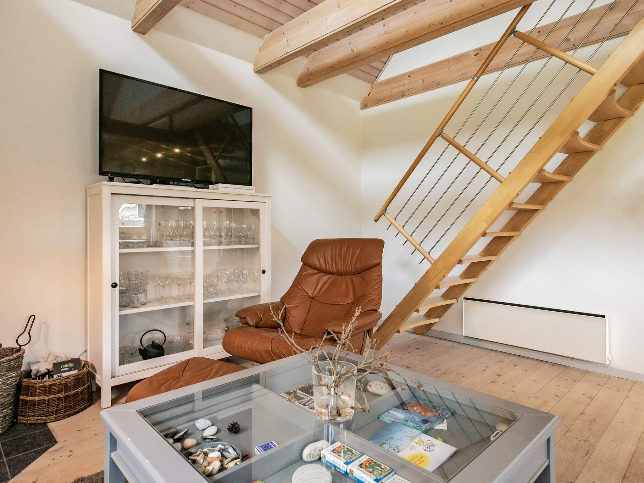 1 Opholdsstue: Brændeovn, radio, Apple TV, tv, høj stol