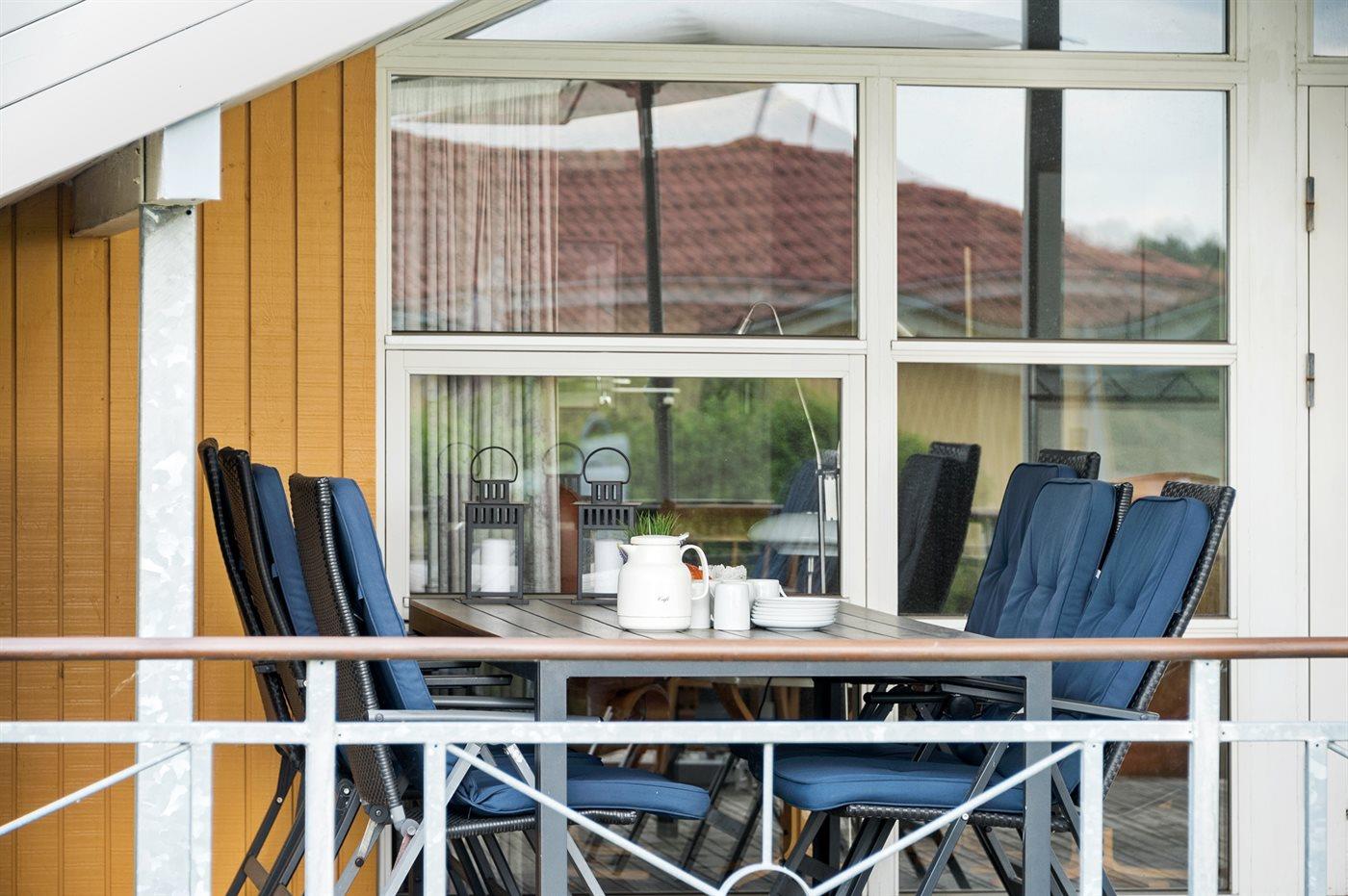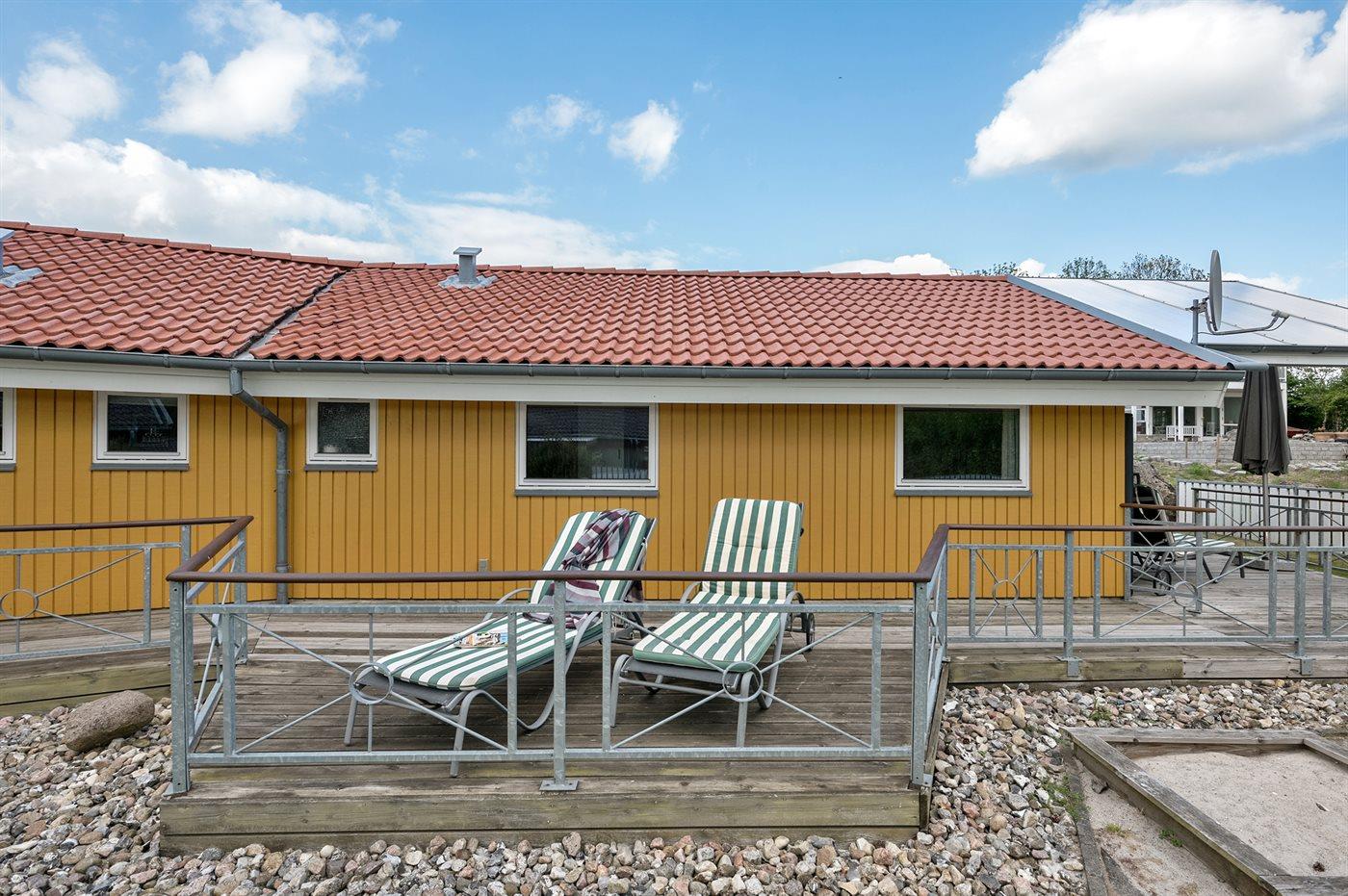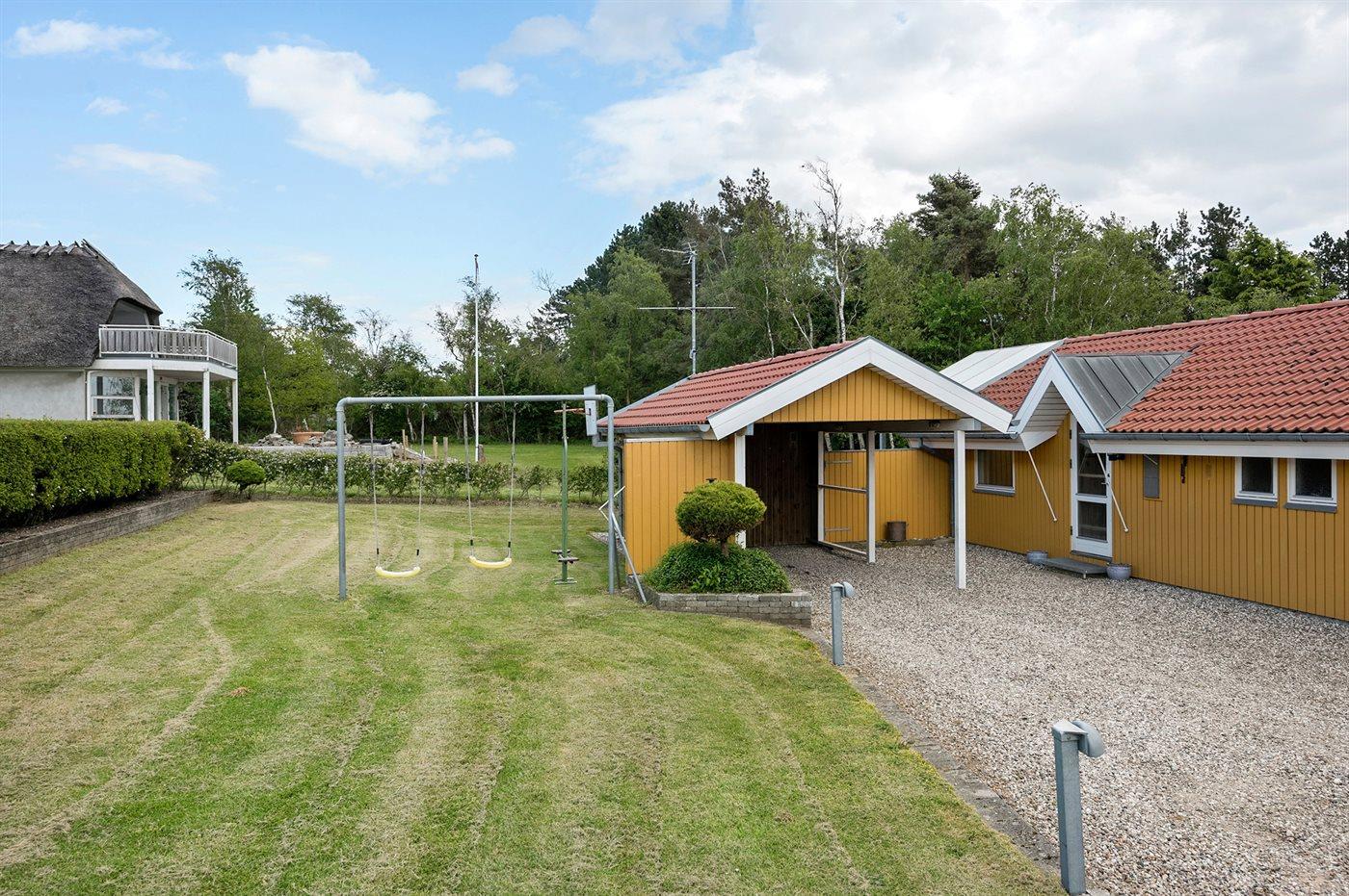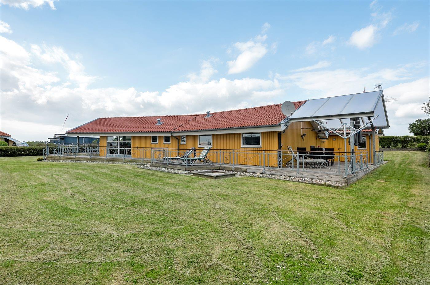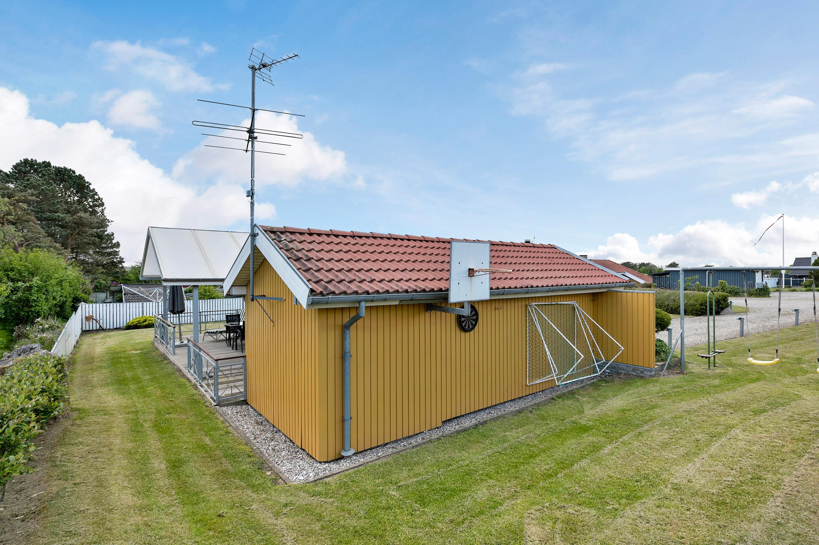 Ferieboligen er beliggende på en 900 m² stor havegrund. Der er 400 m til havet. Der er en badebro i nærheden. Nærmeste forretning er beliggende i en afstand af 3000 m. Til ferieboligen hører 60 m² terrasseareal. Desuden er der 40 m² overdækket terrasse. Gynge. Sandkasse. Fodboldmål. Grill til rådighed. Der er carport til rådighed. Parkering ved ferieboligen.