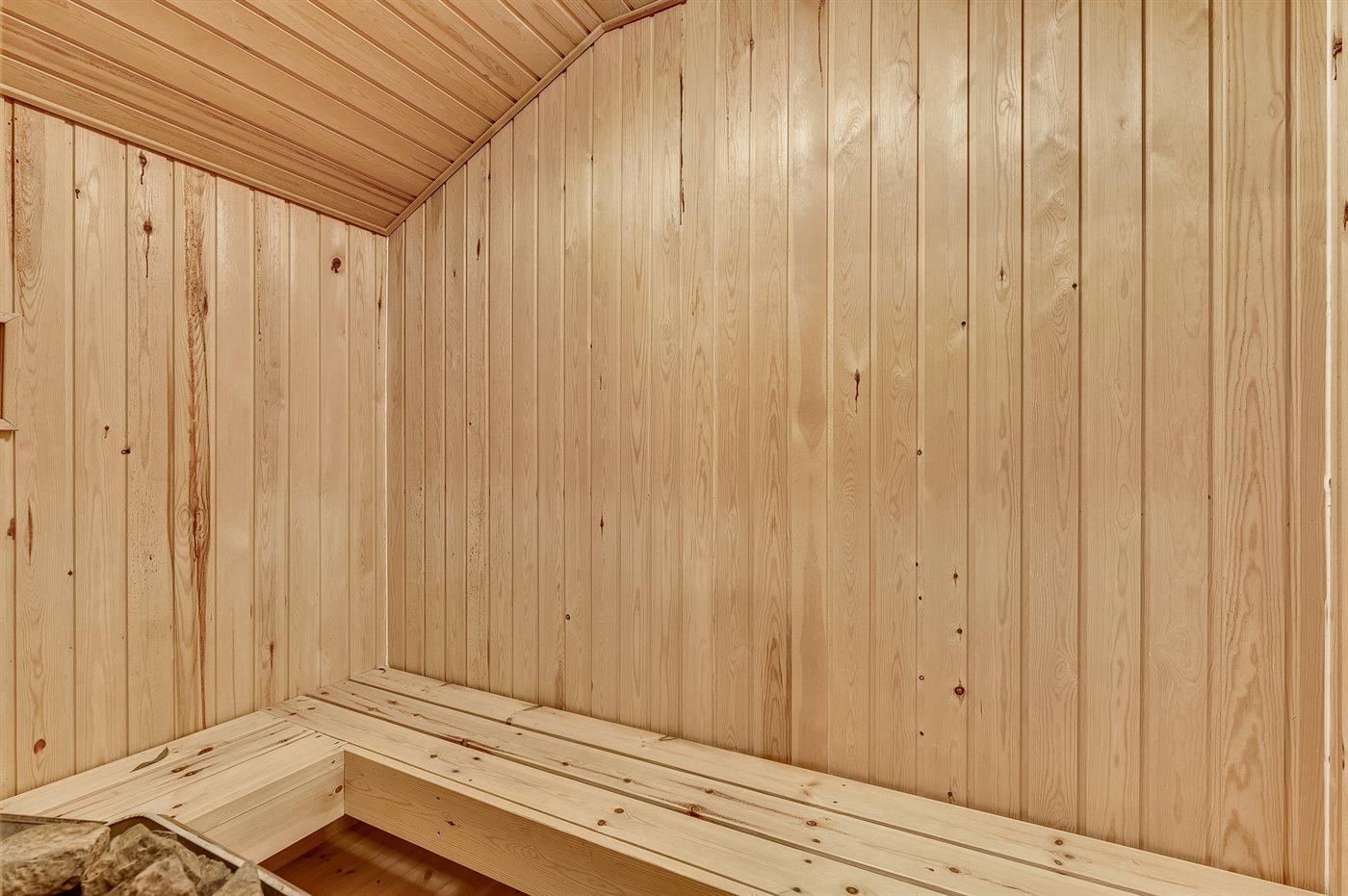 Der er 1 badeværelse med bruseniche og 2 toiletter, heraf 1 gæstetoilet. Der er gulvvarme på 1 badeværelse. Der er gulvvarme på gæstetoilettet. I saunaen er der mulighed for afslapning.