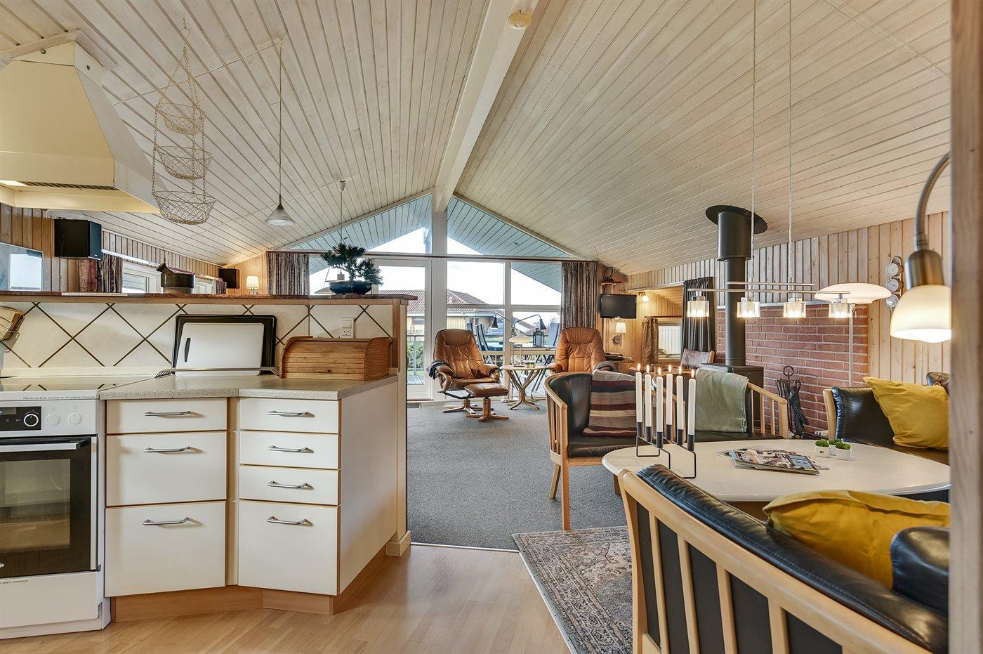 Køkkenet er udstyret med 1 køleskab. Der er 4 keramiske kogeplader, varmluftovn, mikrobølgeovn samt opvaskemaskine.