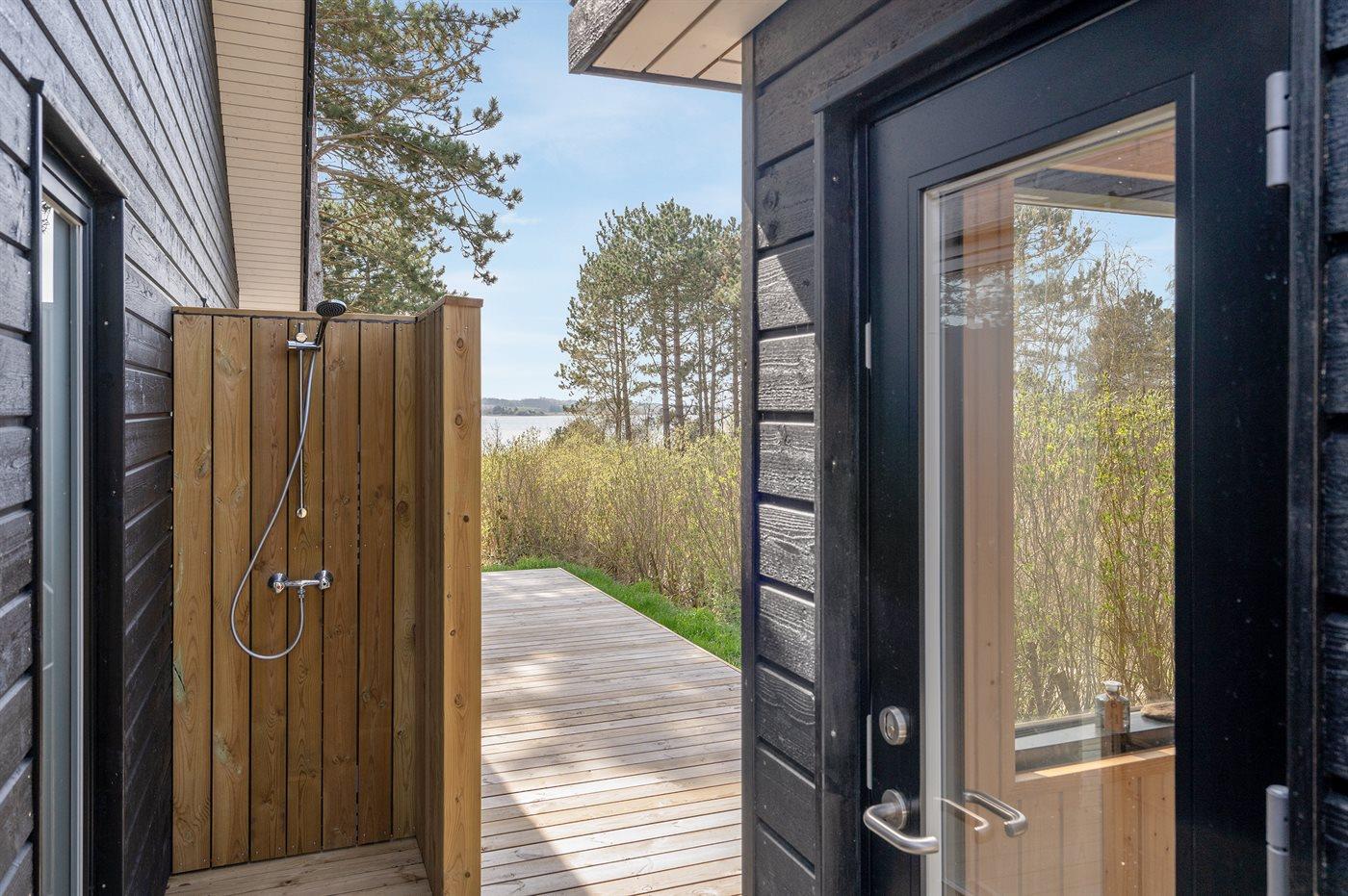 Med udsigt ud over den sydlige del af Helnæsbugten finder I dette nye, flotte og lyst indrettede sommerhus. Huset er bl.a. indrettet med badeværelse med spa, hvorfra der er direkte udgang til terrassearealet, hvor I finder udebruser og udendørs sauna, hvorfra udsigten over Helnæsbugten også kan nydes. Bemærk at 2 af de i alt 10 sovepladser befinder sig på hemsen (madrasser), hvorfor disse egner sig bedst til unge mennesker. På hemsen er der ligeledes opsat TV med spillekonsol.