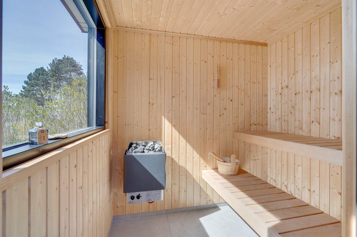 Ferieboligen er beliggende på en 1200 m² stor naturgrund. Der er 150 m til havet. Nærmeste forretning er beliggende i en afstand af 2700 m. Der er en golfbane i en afstand af 5000 m. Til ferieboligen hører åbent og overdækket terrasseareal. Til ferieboligen hører åbent terrasseareal. Desuden er der overdækket terrasse. Udendørs sauna. Udendørs bruser. Grill til rådighed. Parkering ved ferieboligen.