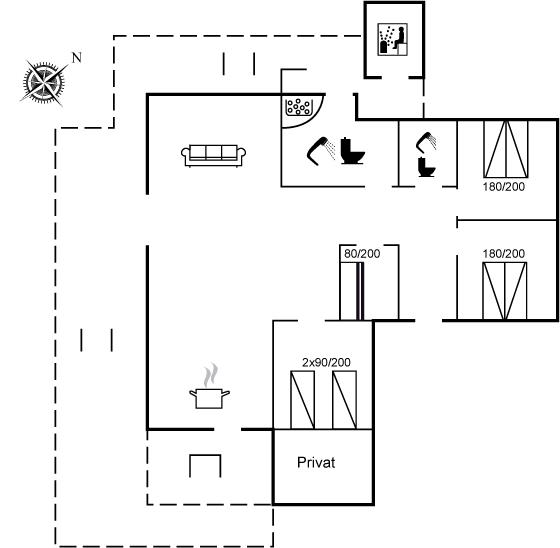 Der er 2 badeværelser med bruseniche og 2 toiletter. Der er gulvvarme på 2 badeværelser.