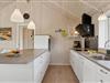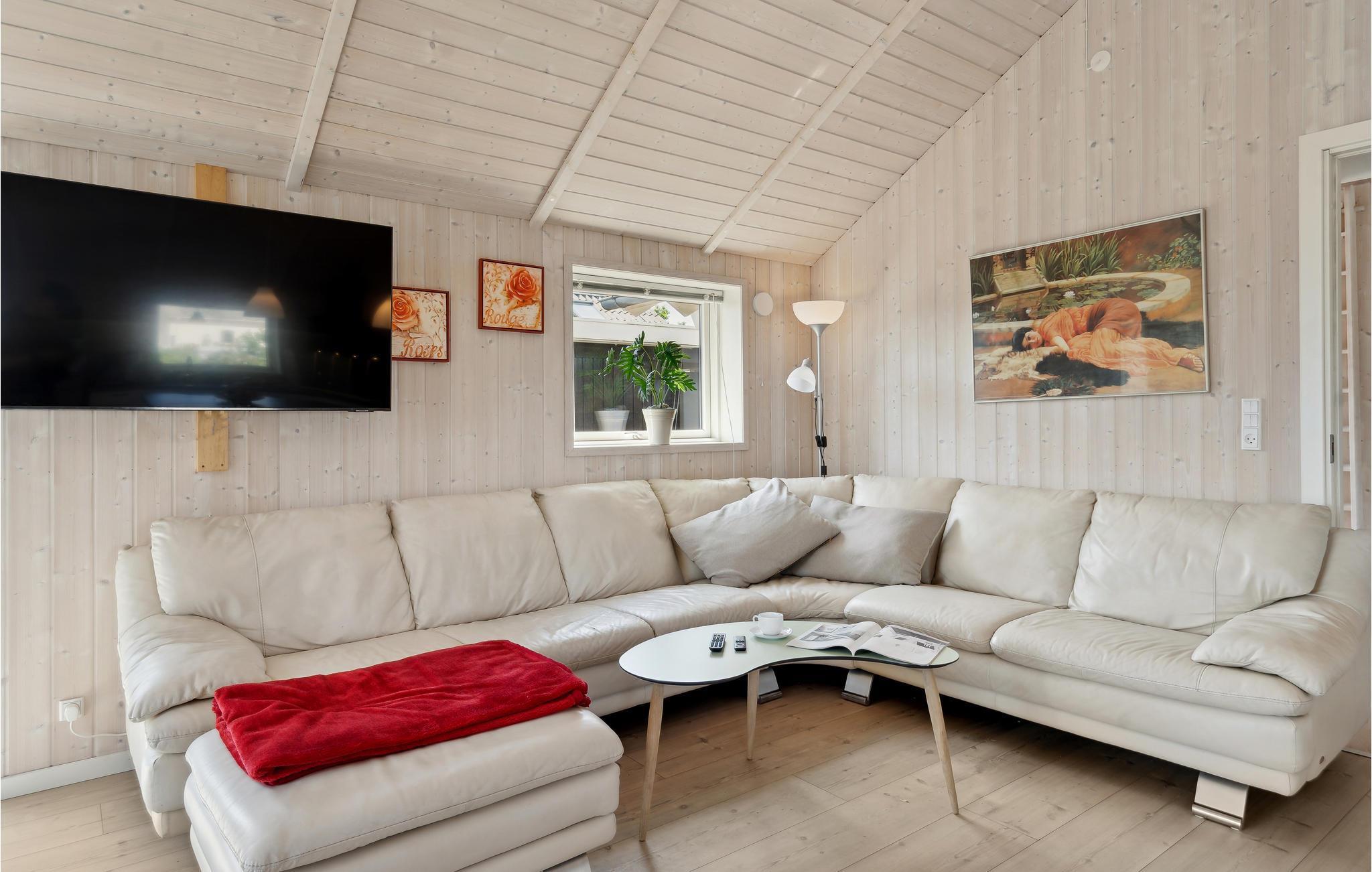Dette hus er helt ideelt til børnefamilier og lokker med en skøn beliggenhed nær stranden. Husets funktion som et aktivt sted og en rummelig base understreges af de gennemgående farver, hvid og beige, og de høje lofter. De store vinduer bidrager til en følelse af friskhed og lethed. Planlæg jeres aktiviteter og udflugter over havregrøden ved spisebordet og nyd en lille stund med kortspil i sofaen efter en lang udflugt eller en dag på stranden. Udenfor er der flere legeredskaber, som vil fornøje de små. Senere kan I nyde aftensolen på terrassen. Fra huset er der ikke mange skridt til stranden, hvor I kan bade og gå en aftentur.