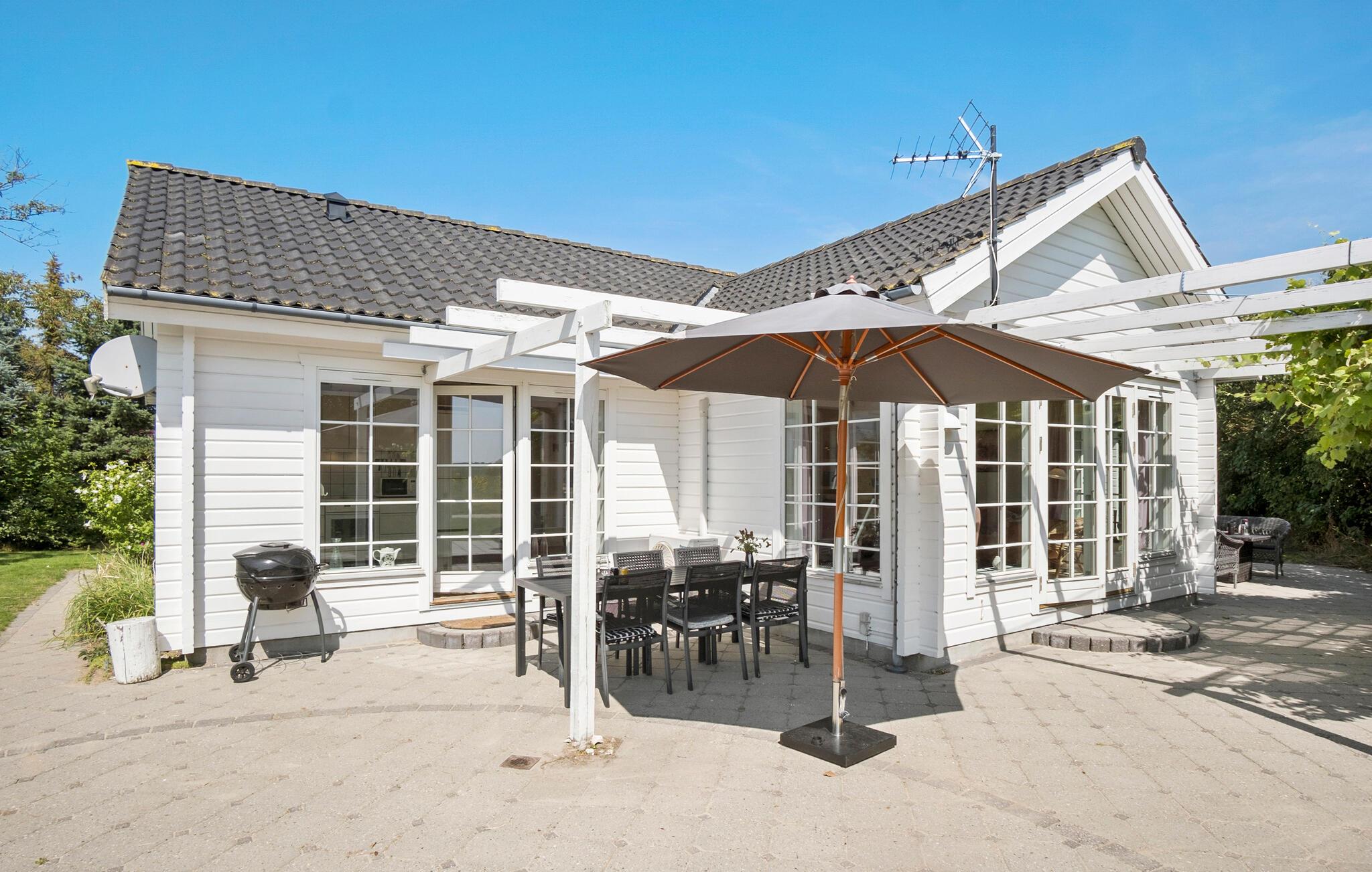 Fra køkkenet kan I træde direkte ud på en stor terrasse, hvor I kan sætte jer til rette for at nyde solen og den vidunderlige udsigt. Dagene rundes af på bedste vis med grillretter i de fredfyldte omgivelser.