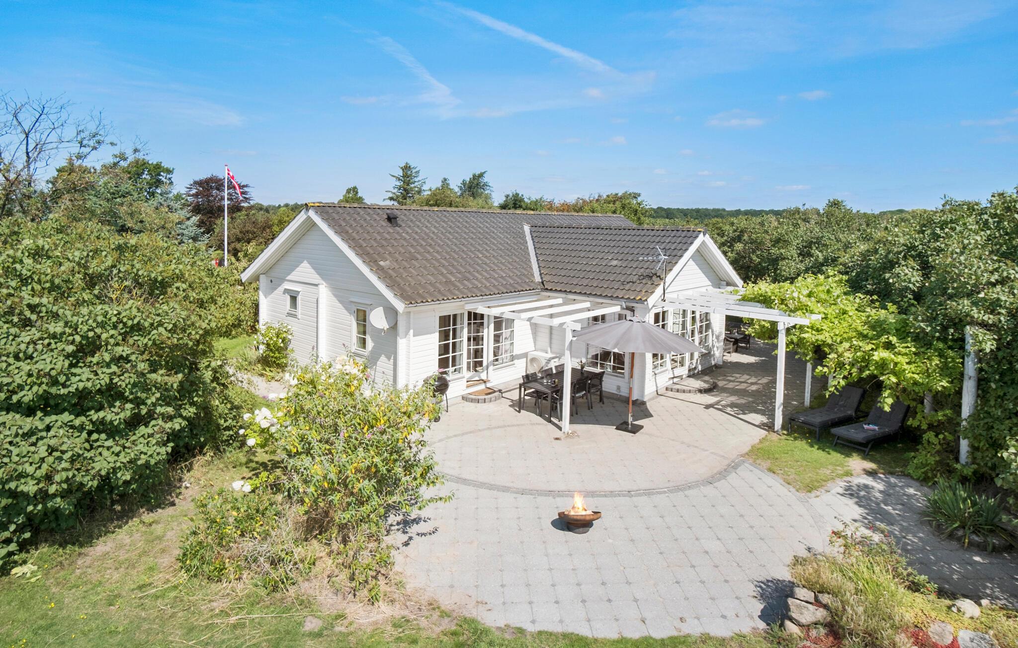 Hyggeligt sommerhus i Faldsled med stor terrasse og delvis havudsigt, perfekt til afslapning og vandsport.
