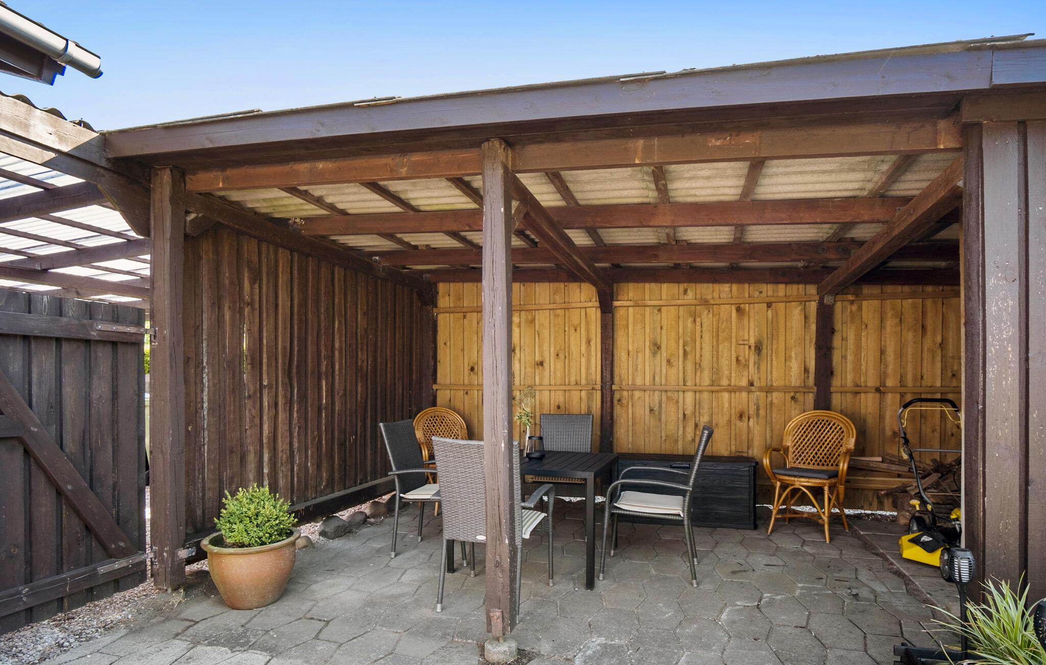 Til huset flere terrasser, hvor I kan finde sol og skygge efter behov og nyde dagens måltider i det fri på de varme sommerdage. I bor i et skønt, roligt område, så nyd solen og den friske luft i mange timer, mens børnene løber rundt og leger i haven.