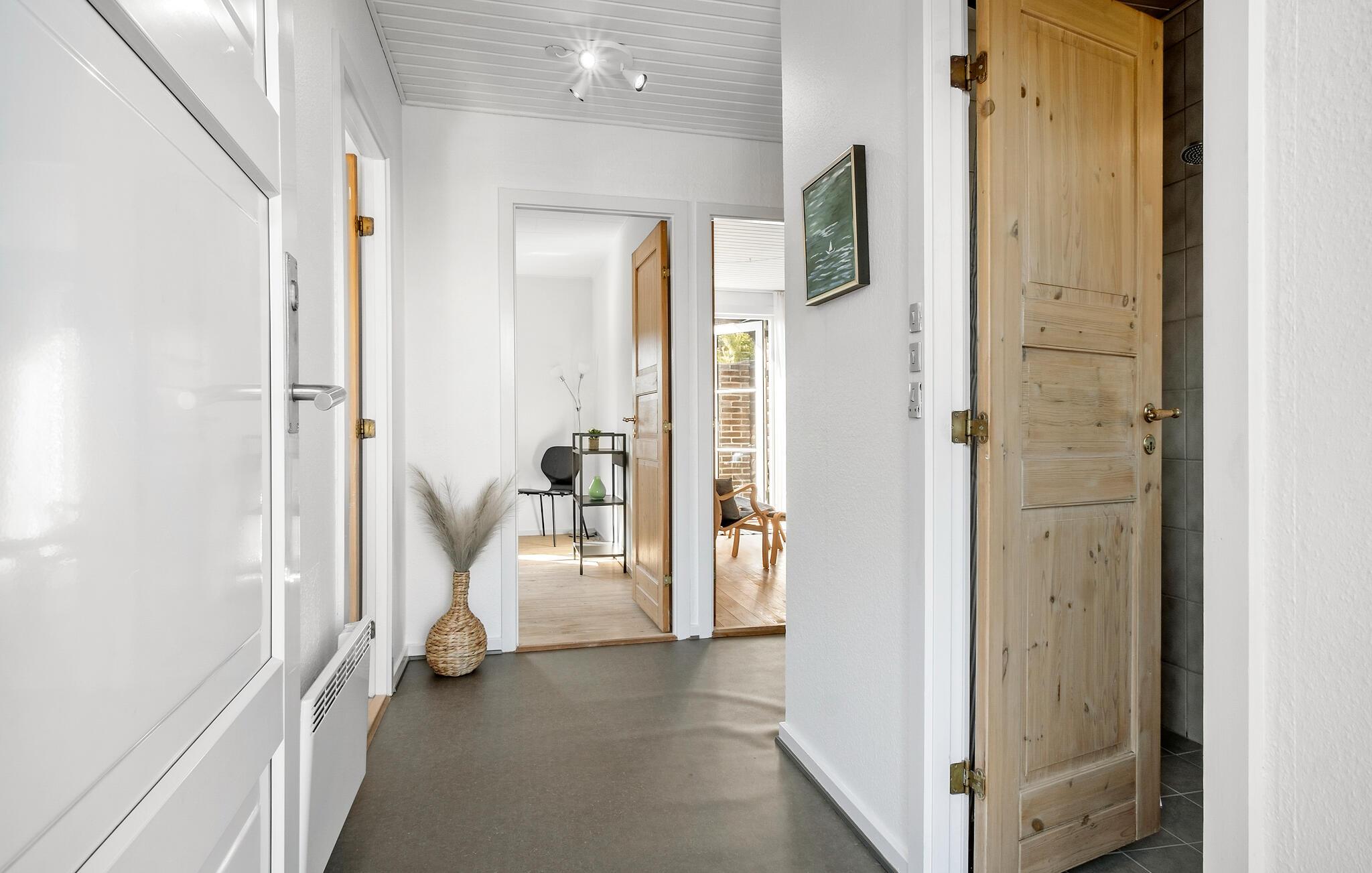 Velkommen til dette skønne hus, der ligger i rolige omgivelser på smukke Sydfyn og danner rammen om en herlig ferie med familien. Huset er dejligt indrettet med en stor åben stue, der prydes af lyse træpaneler og delvist rå murstensvægge, der giver det indre et både flot og rustikt udtryk og får en masse dagslys gennem de mange vinduespartier. Skulle vinden bide lidt fra sig, kan I tænde op i brændeovnen og nyde dens knitrende lydtapet til madlavningen i det veludstyrede køkken og en hyggelig aftensmad ved spisebordet.