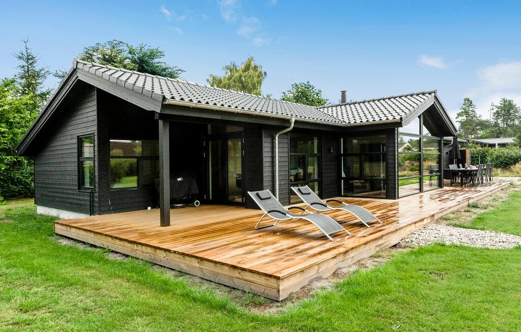 Hyggeligt og moderne feriehus på Falster med aktiviteter, stor terrasse og smuk udsigt over naturen.