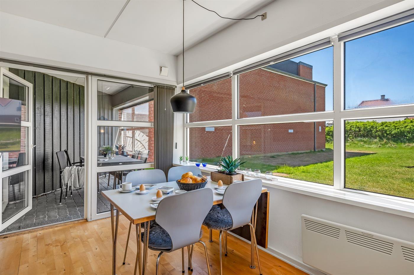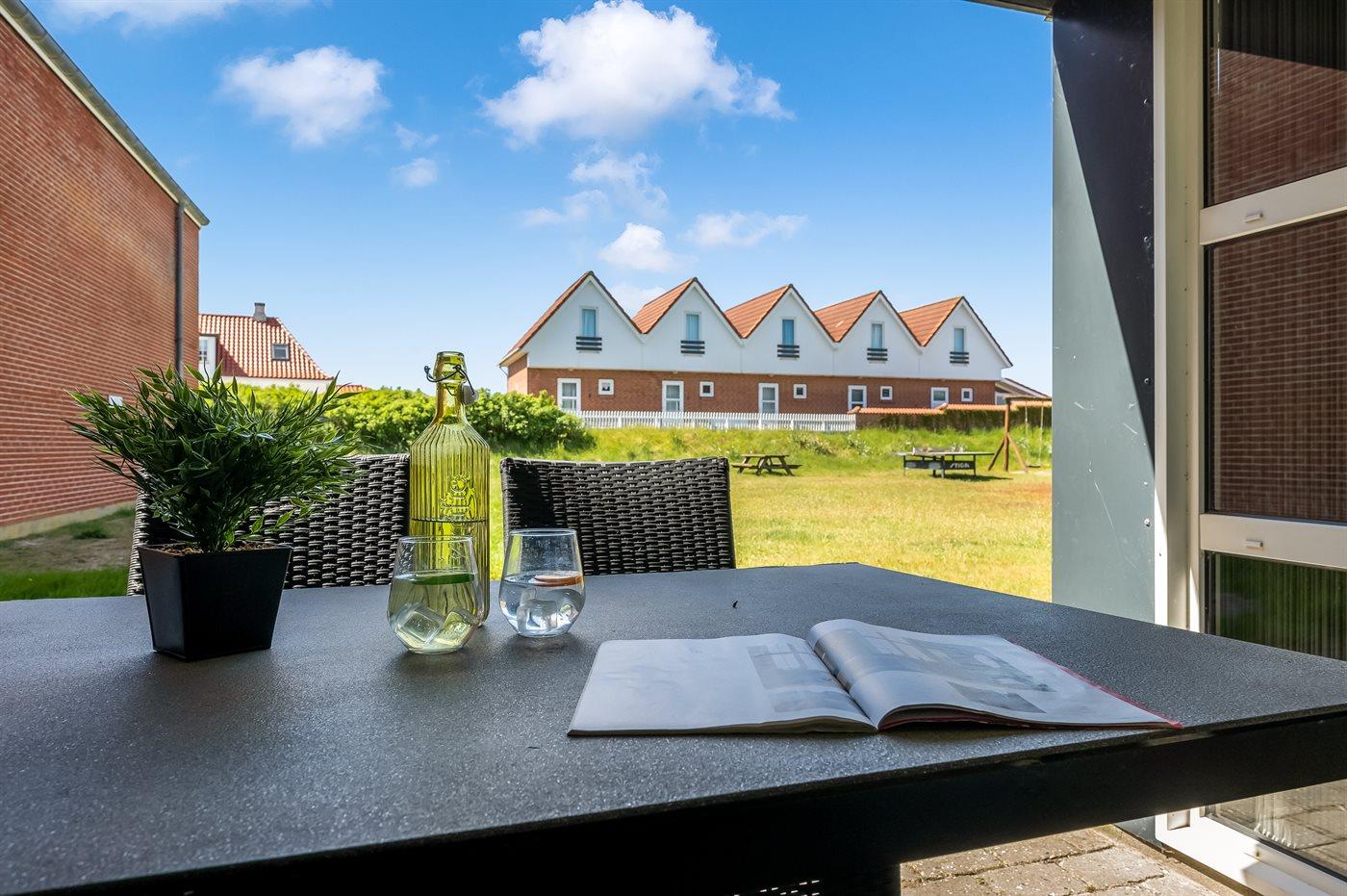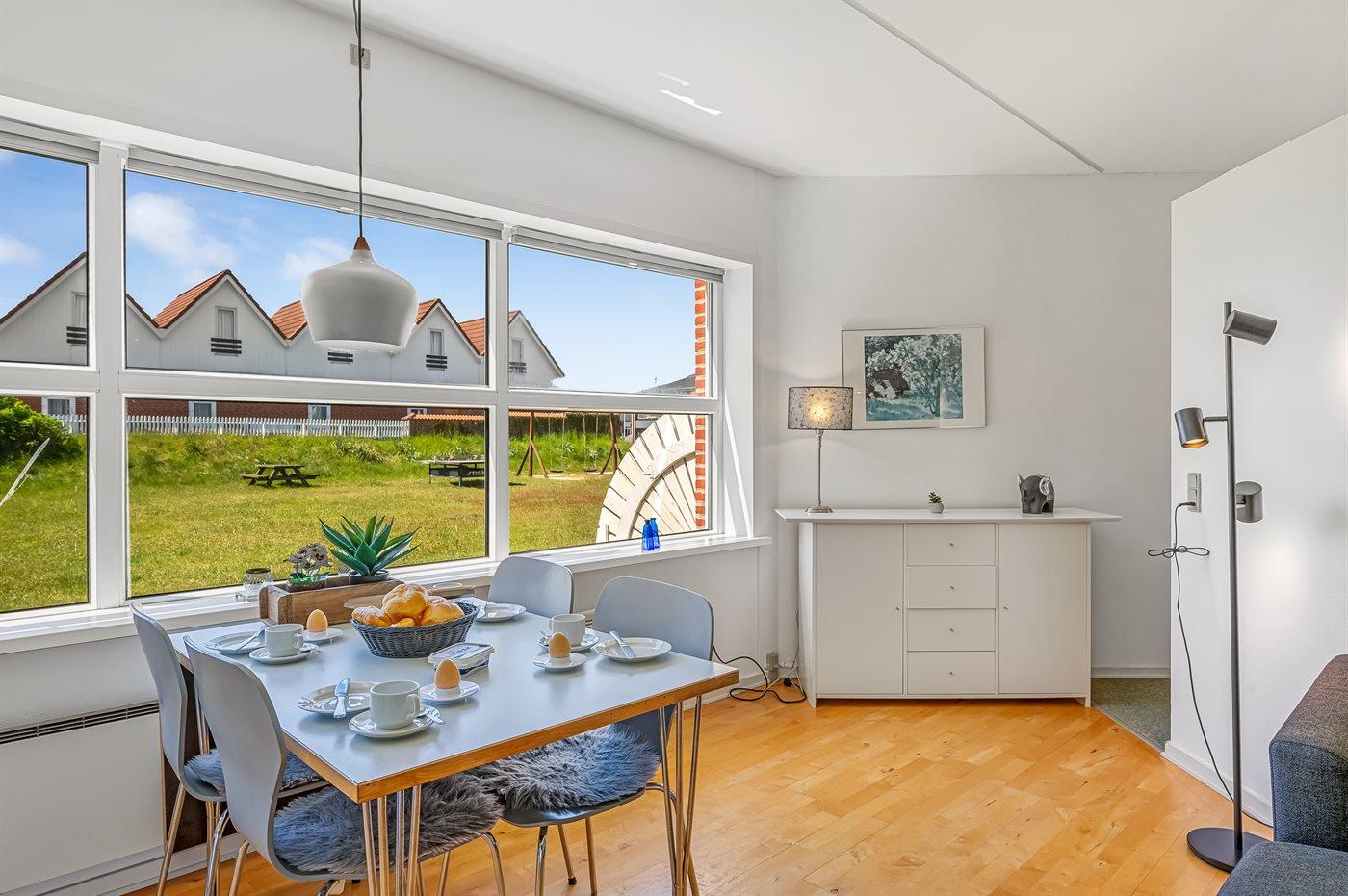 Her bor I med Danmarks fineste sandstrand lige uden for døren. Denne pænt indrettede ferielejlighed ligger i stueetagen i et feriecenter med 65 individuelle lejligheder og med mulighed for at slappe af i et historisk område. Fra lejligheden er der udsigt til fællesområdet.