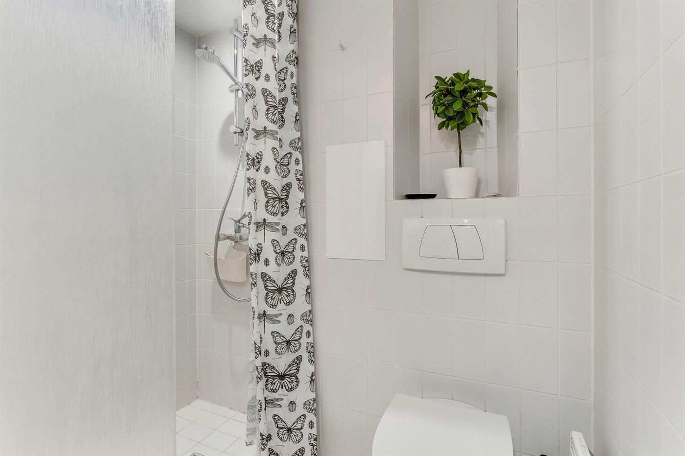 Der er 1 badeværelse med bruseniche og 1 toilet.