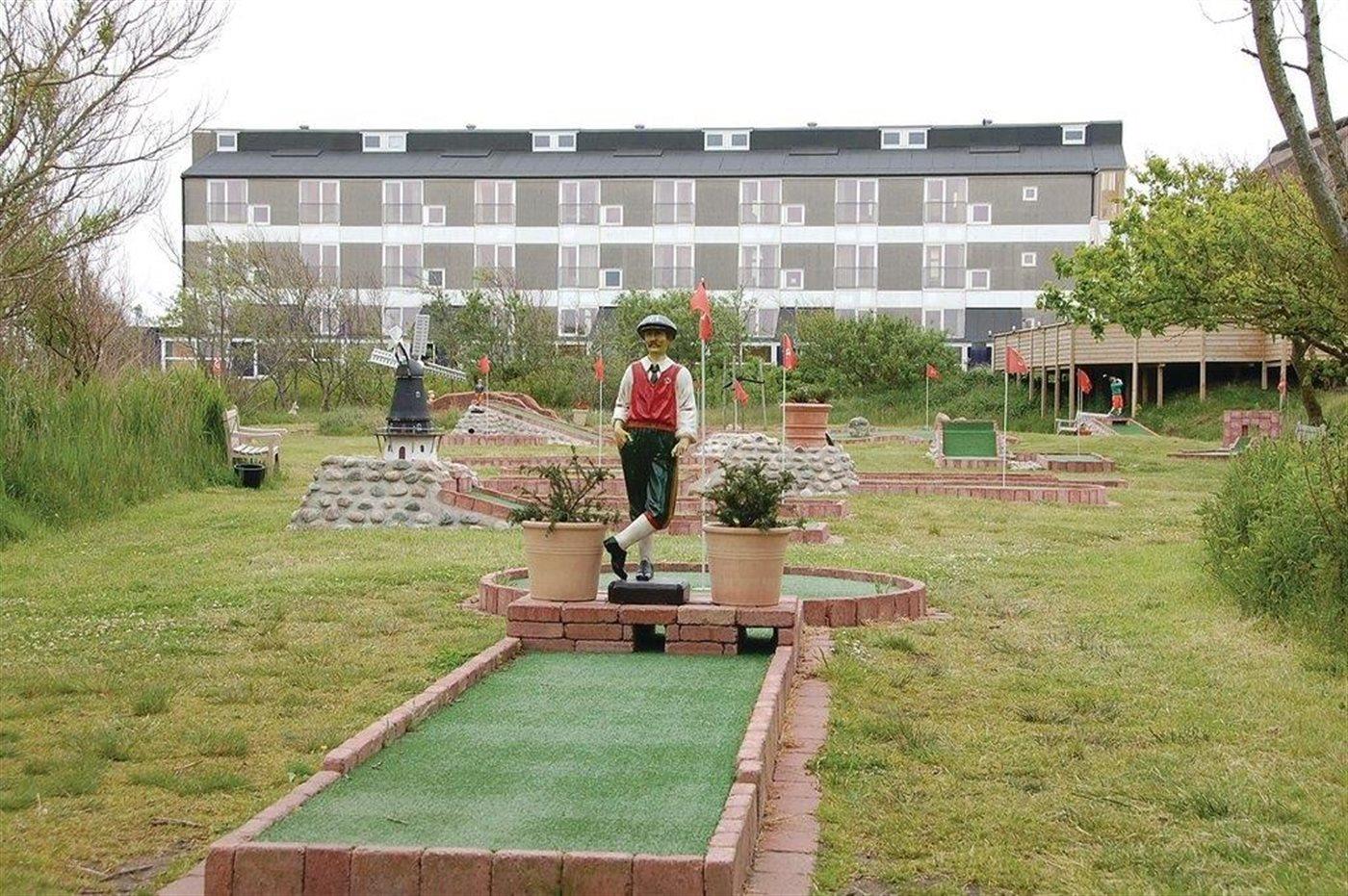 Lys ferielejlighed ved Fanøs fine sandstrand med golfudsigt og hyggelige fællesfaciliteter.
