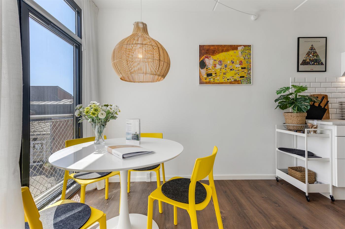 Bemærk, at 2 af de i alt 4 sovepladser befinder sig på en dobbelt sovesofa i opholdsstuen.