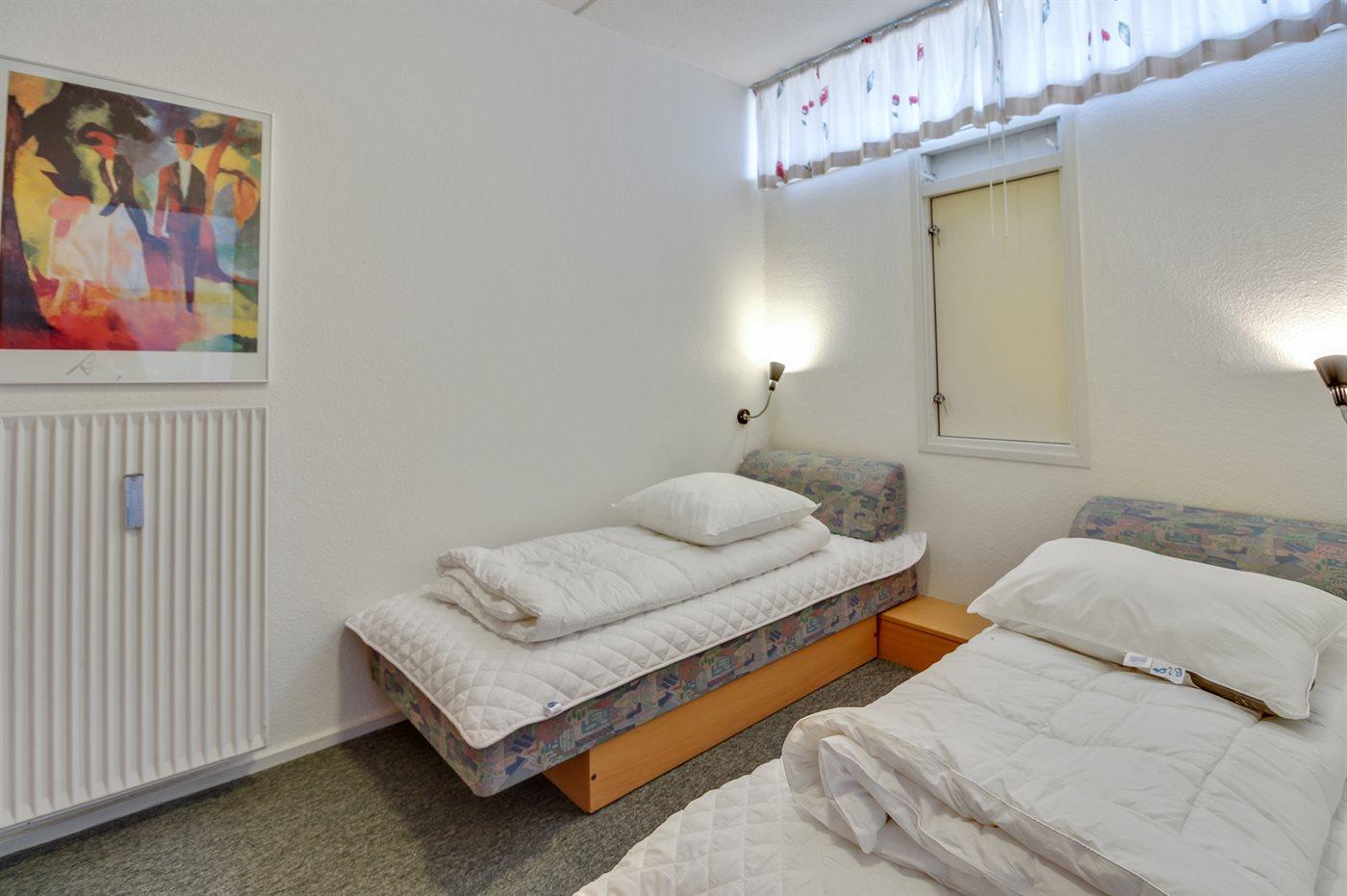 Der er i alt 1 soveværelse. Sovepladserne fordeler sig på: 2 sovepladser i enkeltsenge. 2 sovepladser i sovesofa (dobbelt).