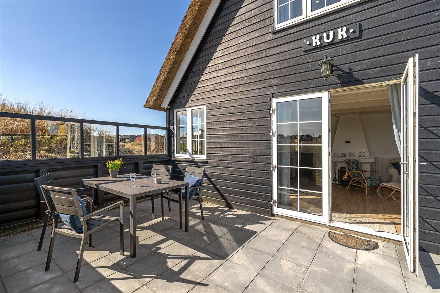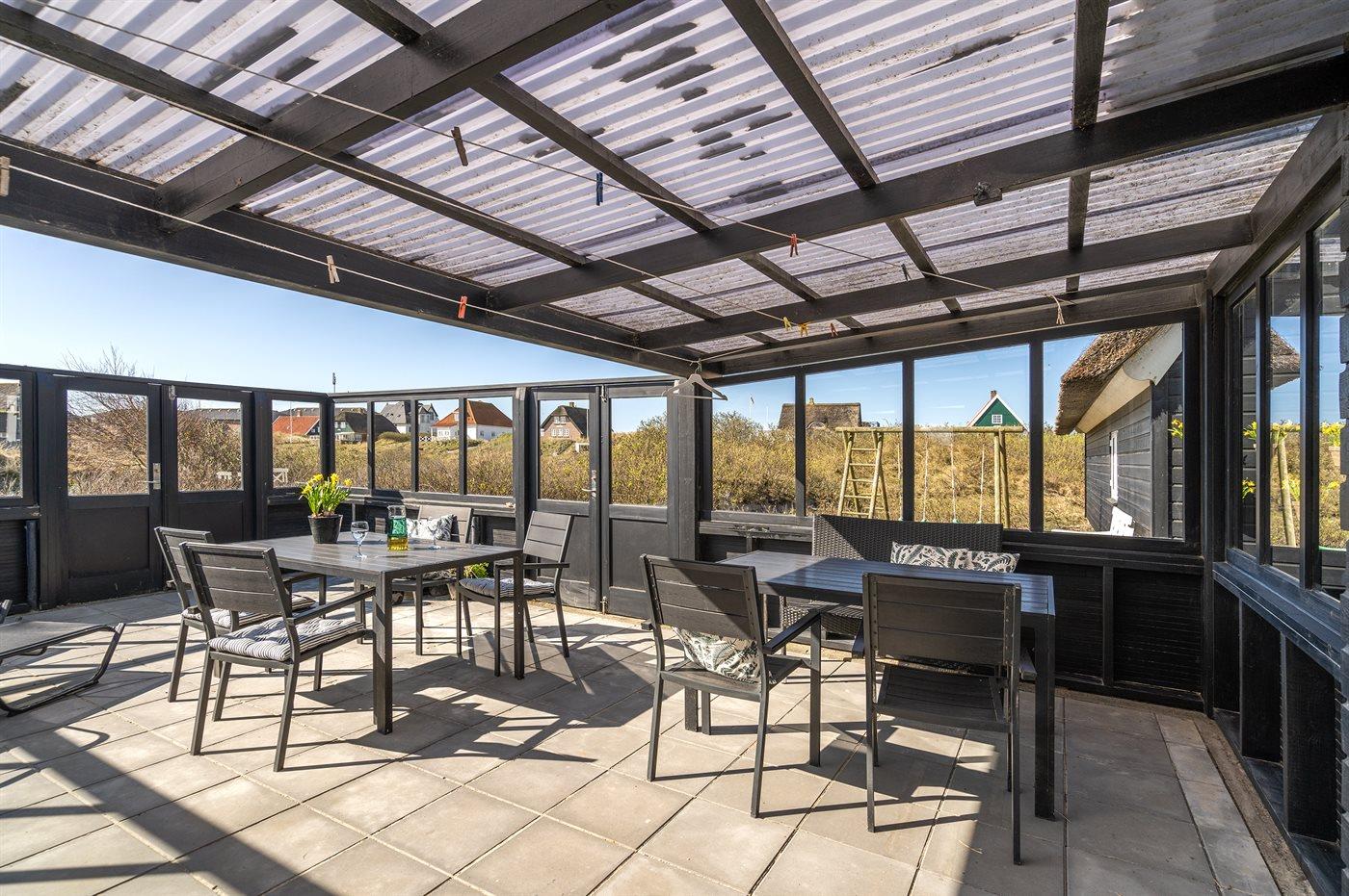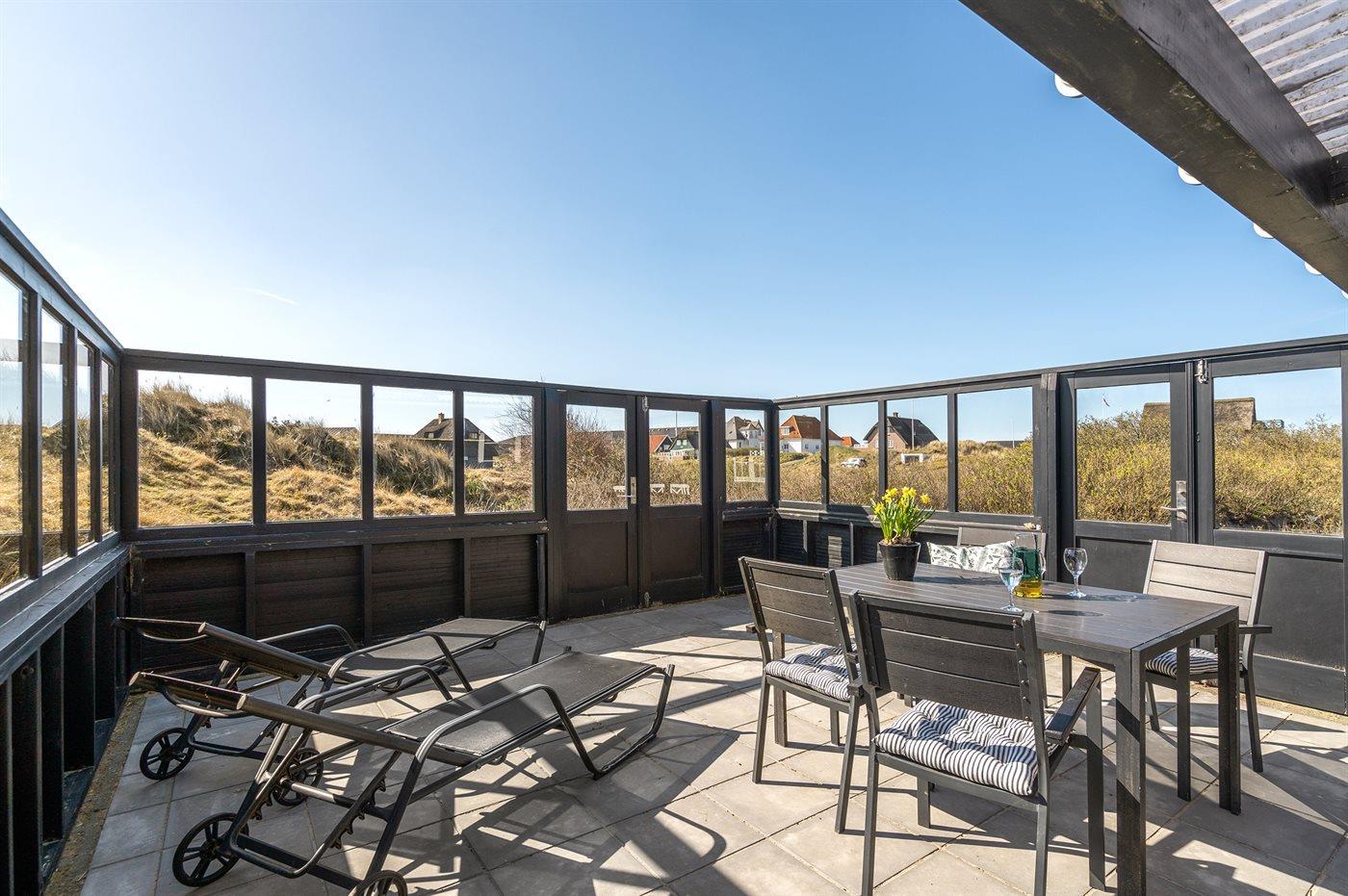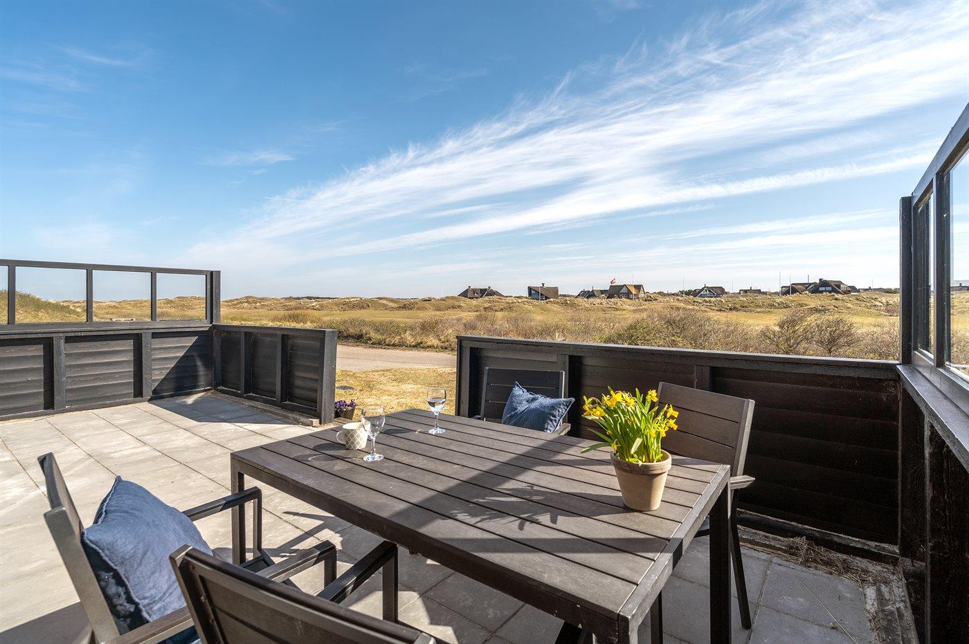 Ferieboligen er beliggende på en 926 m² stor klitgrund. Der er 100 m til havet. Nærmeste forretning er beliggende i en afstand af 500 m. Der er en golfbane i en afstand af 20 m. Til ferieboligen hører 25 m² terrasseareal. Heraf i alt 25 m² lukket terrasse. Udgang til solgård. Parkering ved ferieboligen.
