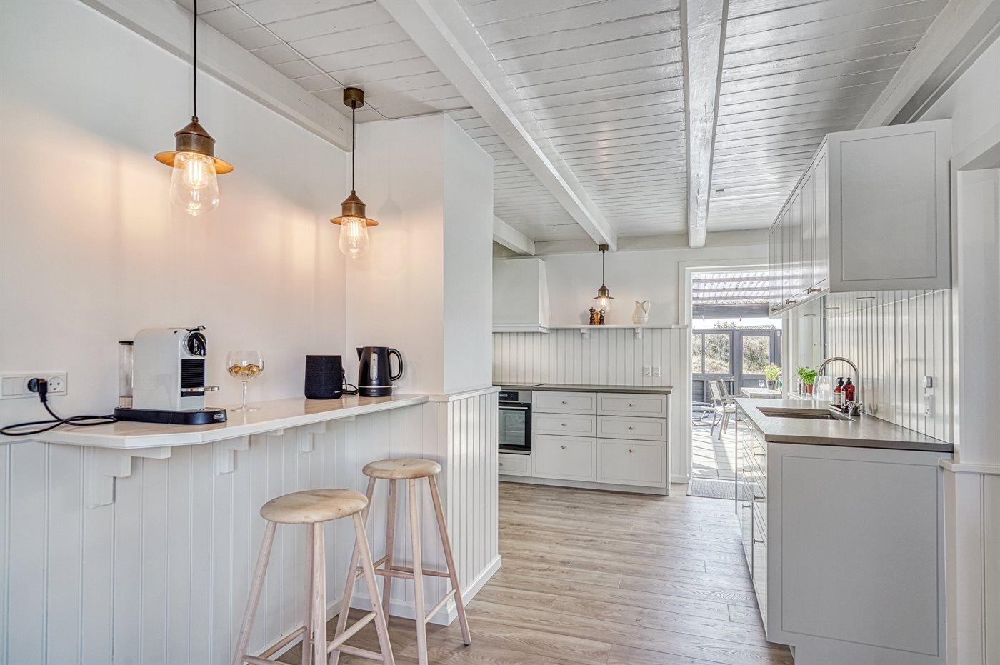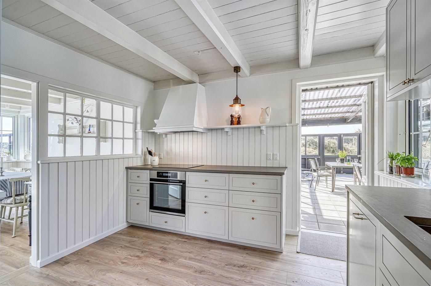 Køkkenet er udstyret med 1 køleskab. Der er 4 keramiske kogeplader, varmluftovn, mikrobølgeovn samt opvaskemaskine.