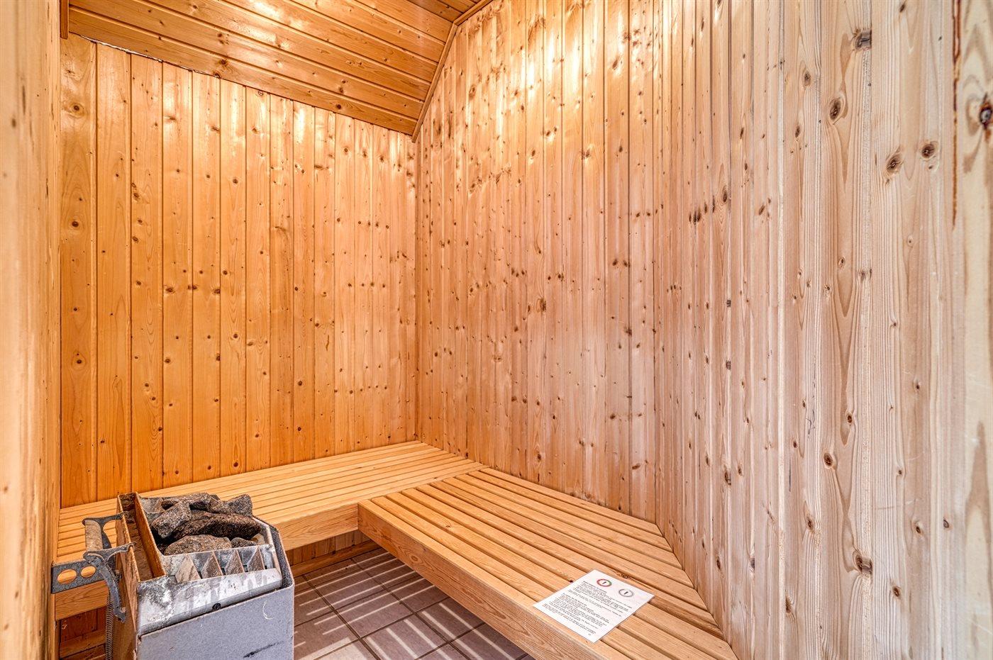 Der er 3 badeværelser med bruseniche og 3 toiletter I saunaen er der mulighed for afslapning.