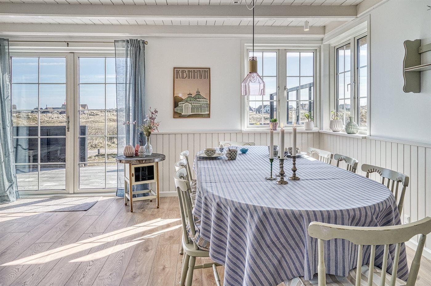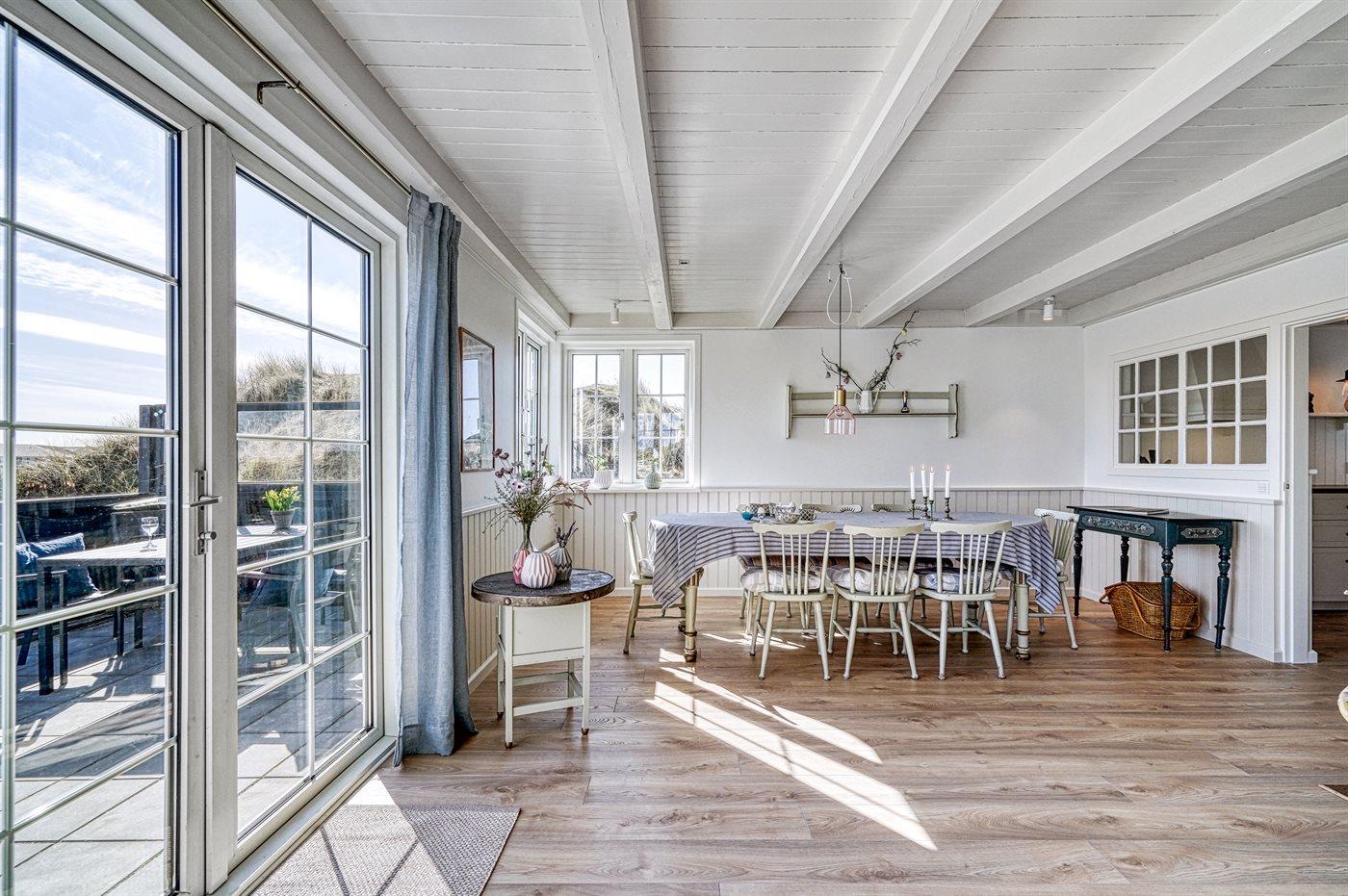 Dette yderst smagfuldt indrettede sommerhus har i 2022 gennemgået en totalrenovering og fremtræder lyst og indbydende. Huset er beliggende på en skøn naturgrund midt i Fanøs ældste ferieområde Fanø Bad - 50 meter fra golfbanen og 100 meter fra stranden, her har man en smuk udsigt udover både golfbanen og nordsiden af Fanø. Sommerhuset er opdateret med alle moderne fornødenheder til en afslappet ferie i fantastiske og luksuriøse omgivelser. Huset, som har et boligareal på 174 m2 er indrettet med 3 toiletter og 4 soveværelser – så er her der fin plads til 8 sovende gæster.