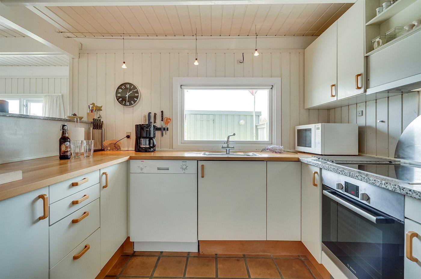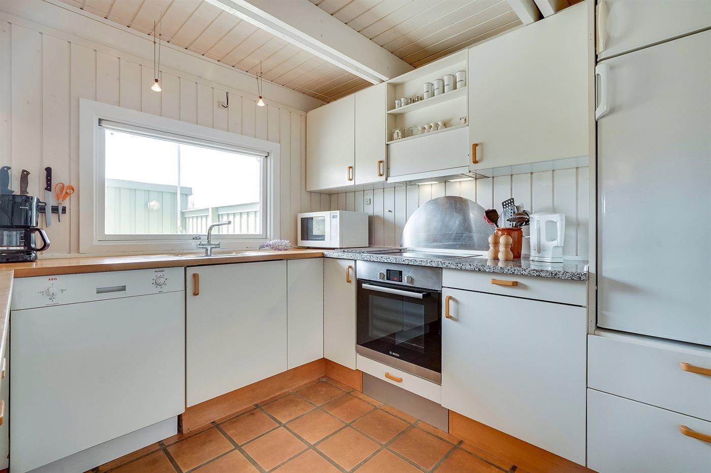 Køkkenet er udstyret med 1 køleskab. Der er 4 induktionskogeplader, bageovn, varmluftovn, mikrobølgeovn samt opvaskemaskine.