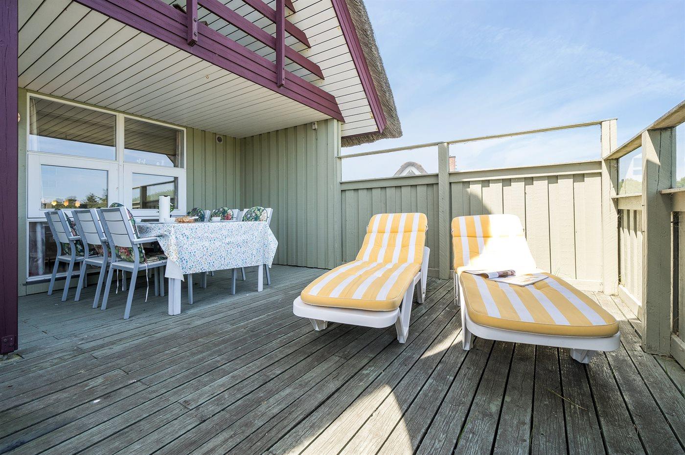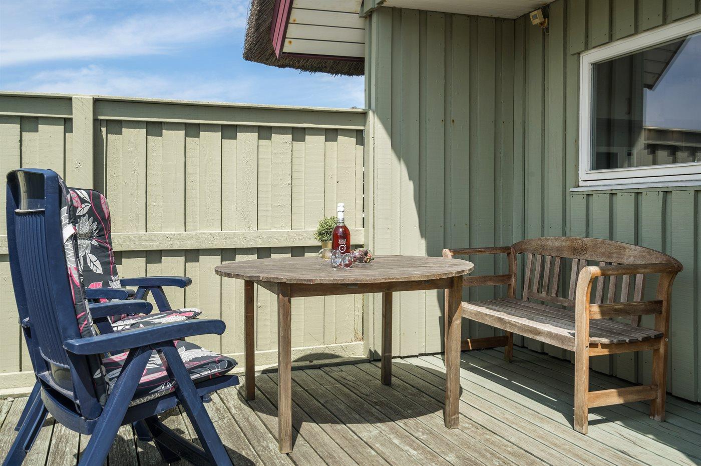 Dette dejlige veludstyrede stråtækte hus er smagfuldt og lyst indrettet. Huset ligger pragtfuldt på stor naturgrund ved en lille sø. Ekstra toilet på 1. sal. Fra det store soveværelse med dobbelt seng er der udgang til balkonen. Herfra en flot udsigt. Fra husets store lukkede terrasse og balkonen kan man nyde områdets rige dyreliv.