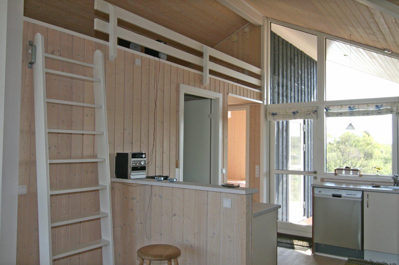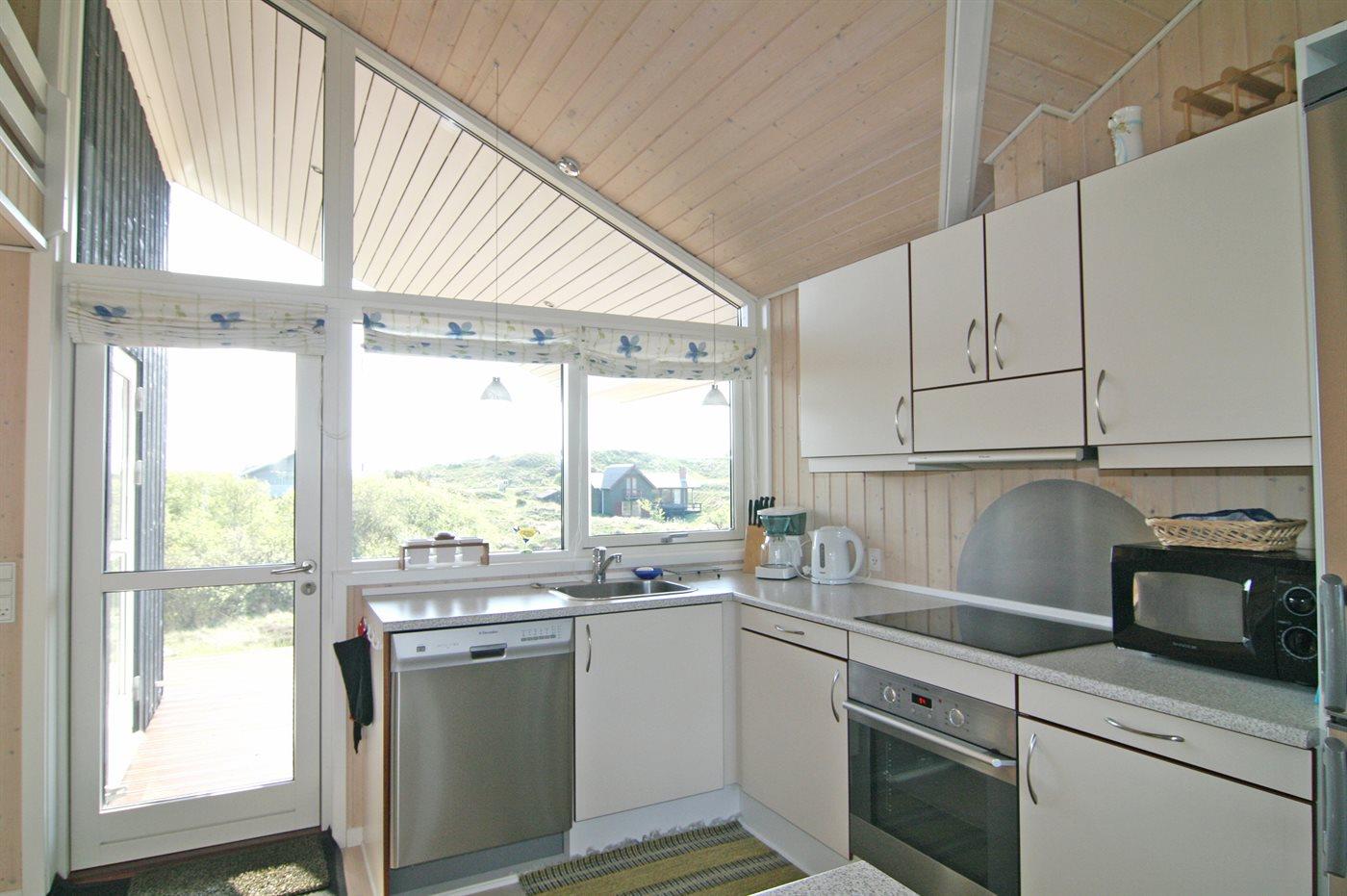 Køkkenet er udstyret med 1 køleskab. Der er 4 keramiske kogeplader, varmluftovn, mikrobølgeovn samt opvaskemaskine.