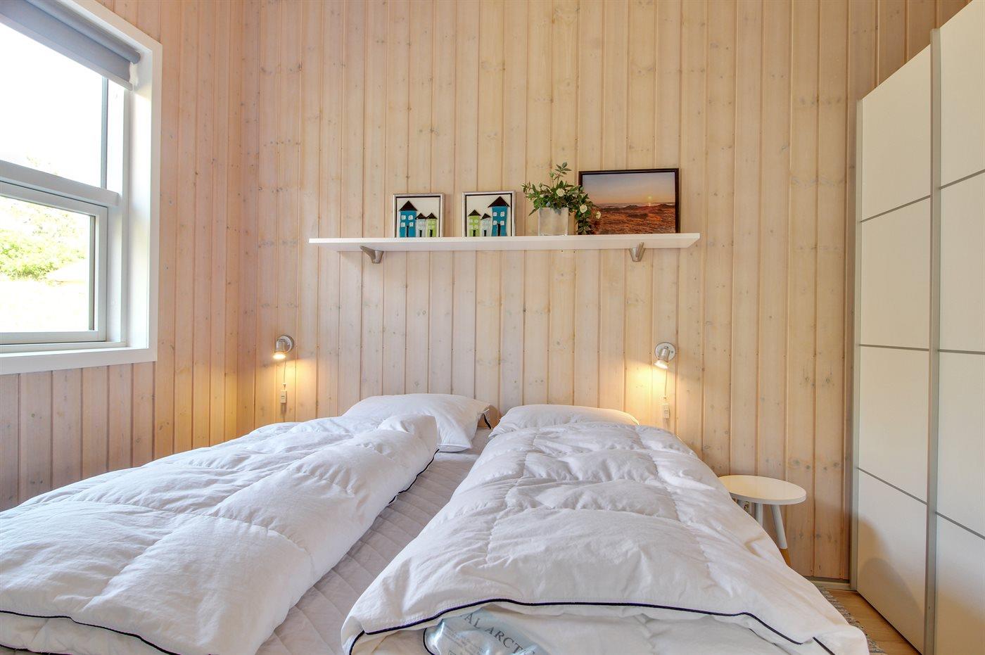 Der er i alt 3 soveværelser. Sovepladserne fordeler sig på: 2 sovepladser i dobbeltseng. 4 sovepladser i enkeltsenge. Derudover er der 1 stk. barneseng.