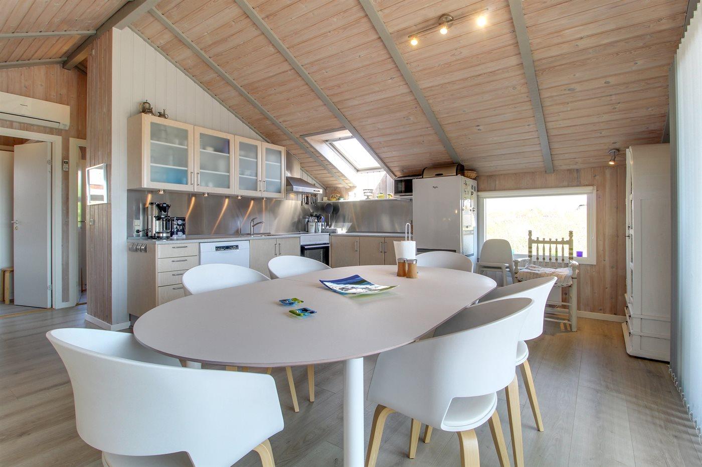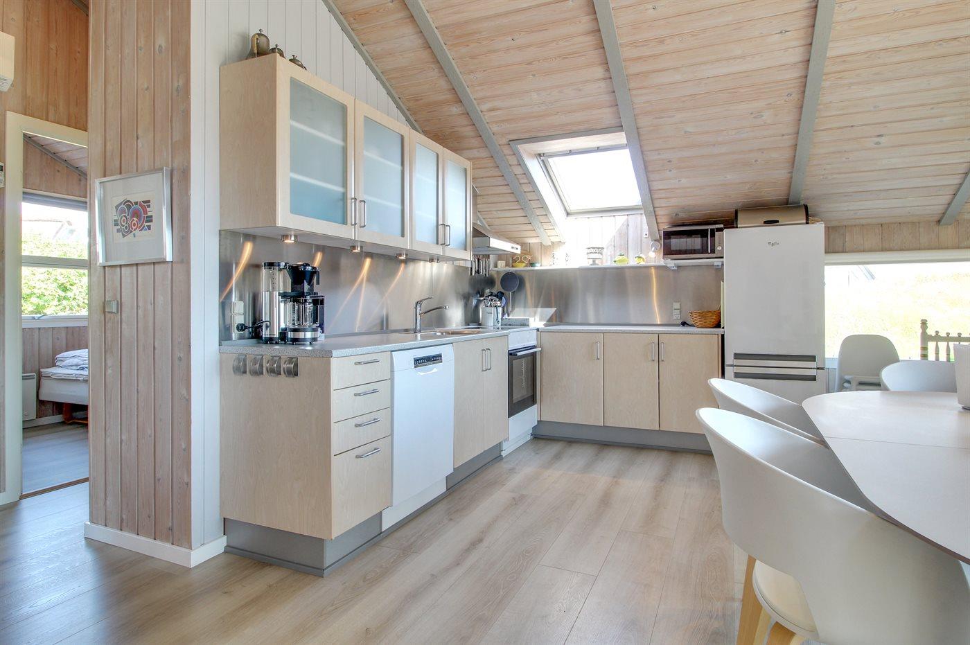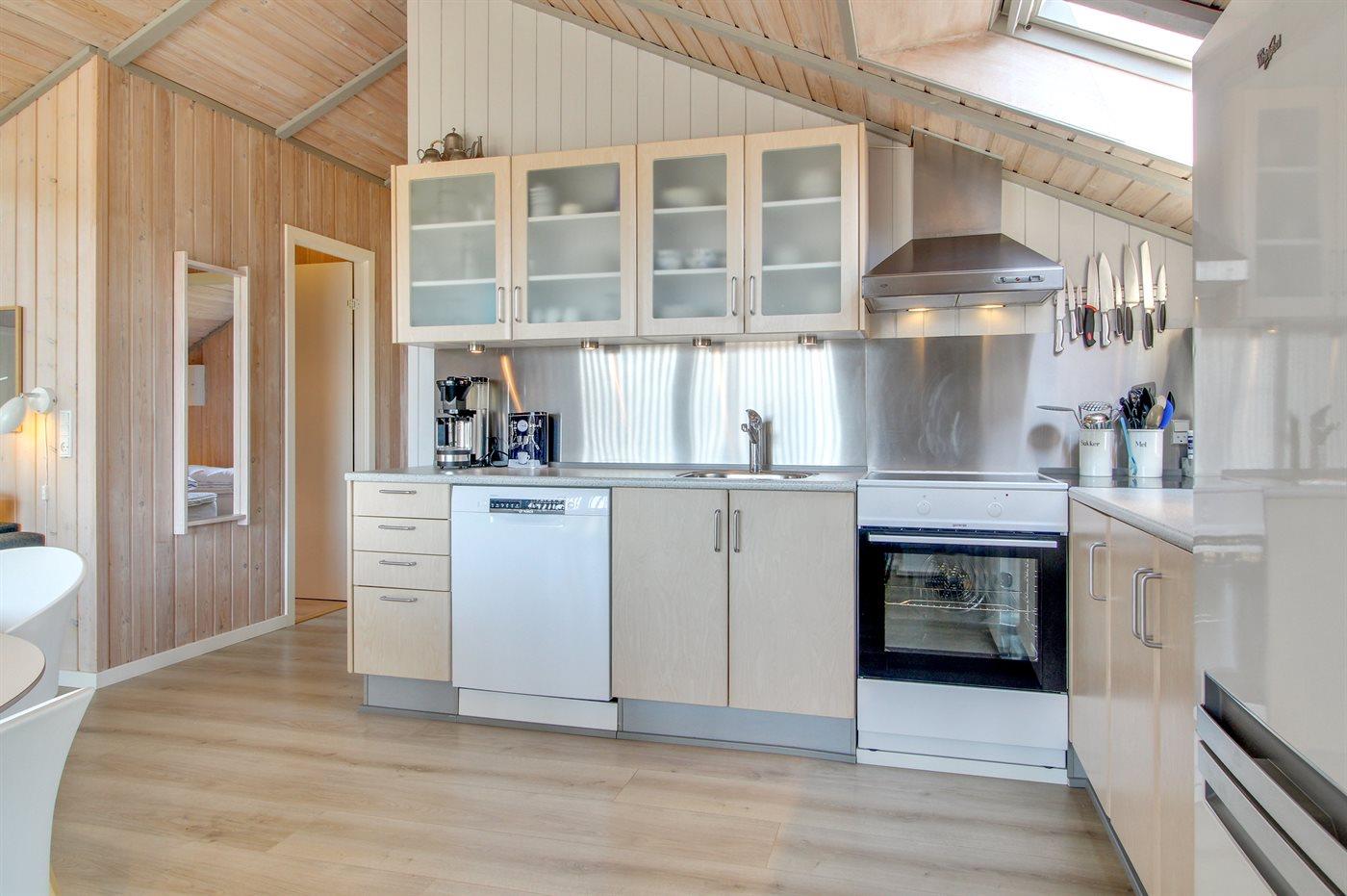 Køkkenet er udstyret med 1 køleskab. Der er 4 keramiske kogeplader, varmluftovn, mikrobølgeovn samt opvaskemaskine.