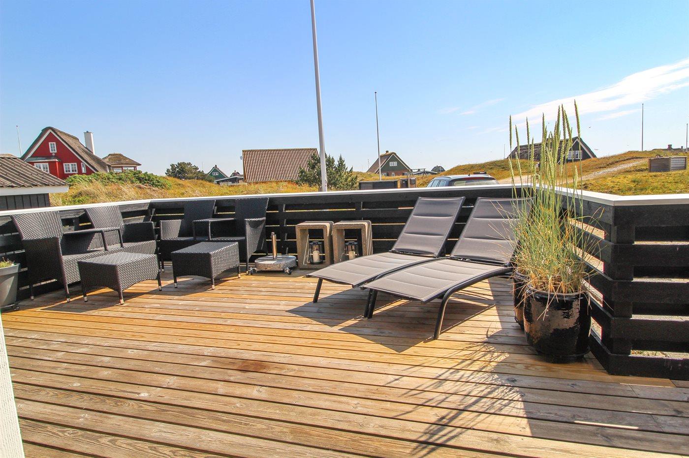 Ferieboligen er beliggende på en 868 m² stor klitgrund. Der er 400 m til havet. Nærmeste forretning er beliggende i en afstand af 900 m. Der er en golfbane i en afstand af 200 m. Til ferieboligen hører 40 m² terrasseareal. Desuden er der 12 m² overdækket terrasse. Gynge. Grill til rådighed. Parkering ved ferieboligen.