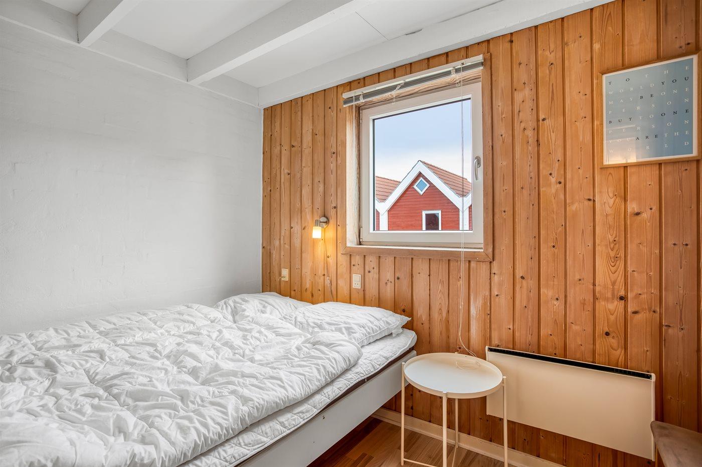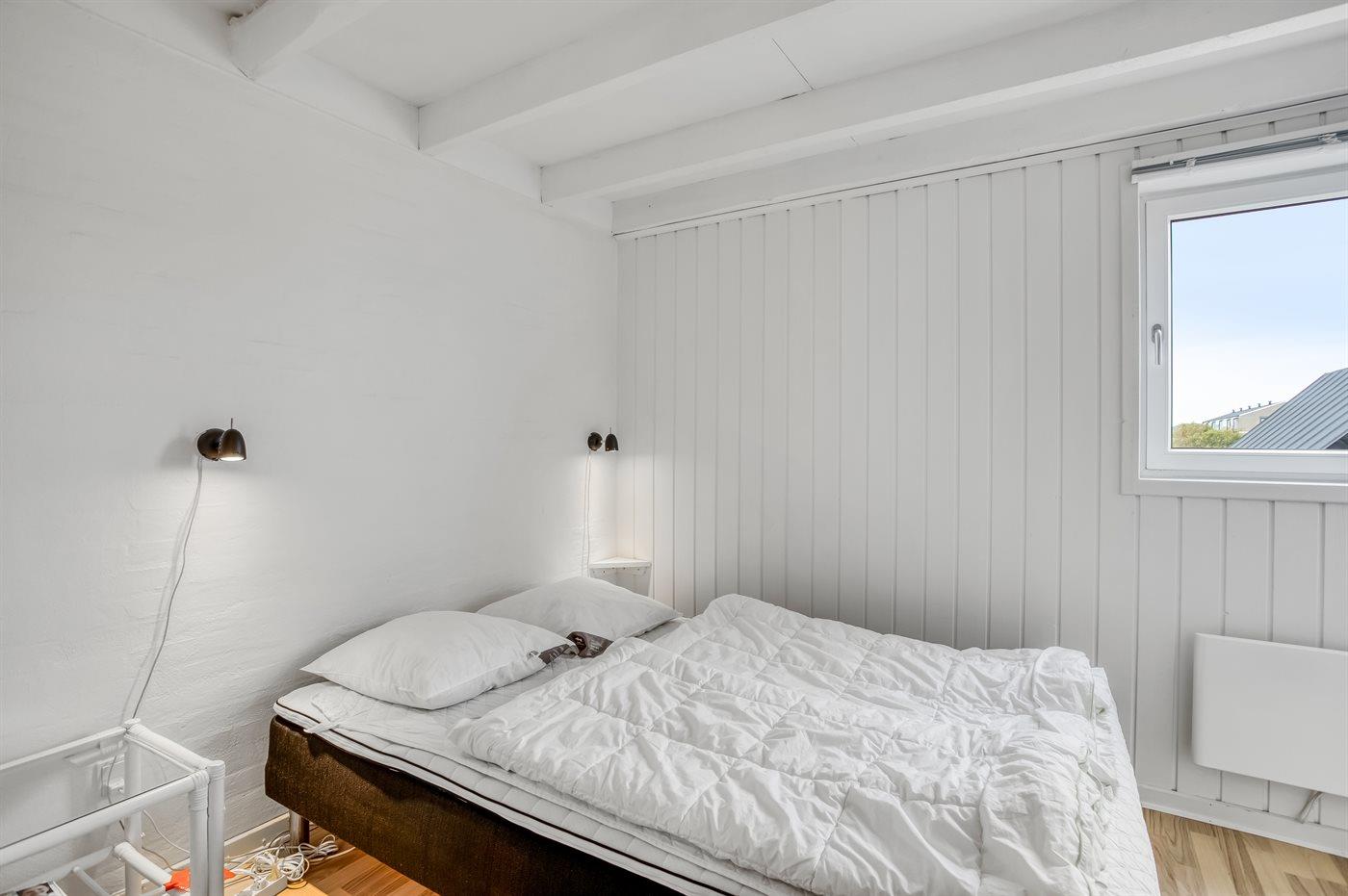 Der er i alt 2 soveværelser. Sovepladserne fordeler sig på: 4 sovepladser i dobbeltsenge. 1 soveplads på madras. 1 af disse sovepladser befinder sig på husets hems. Derudover er der 1 stk. barneseng.