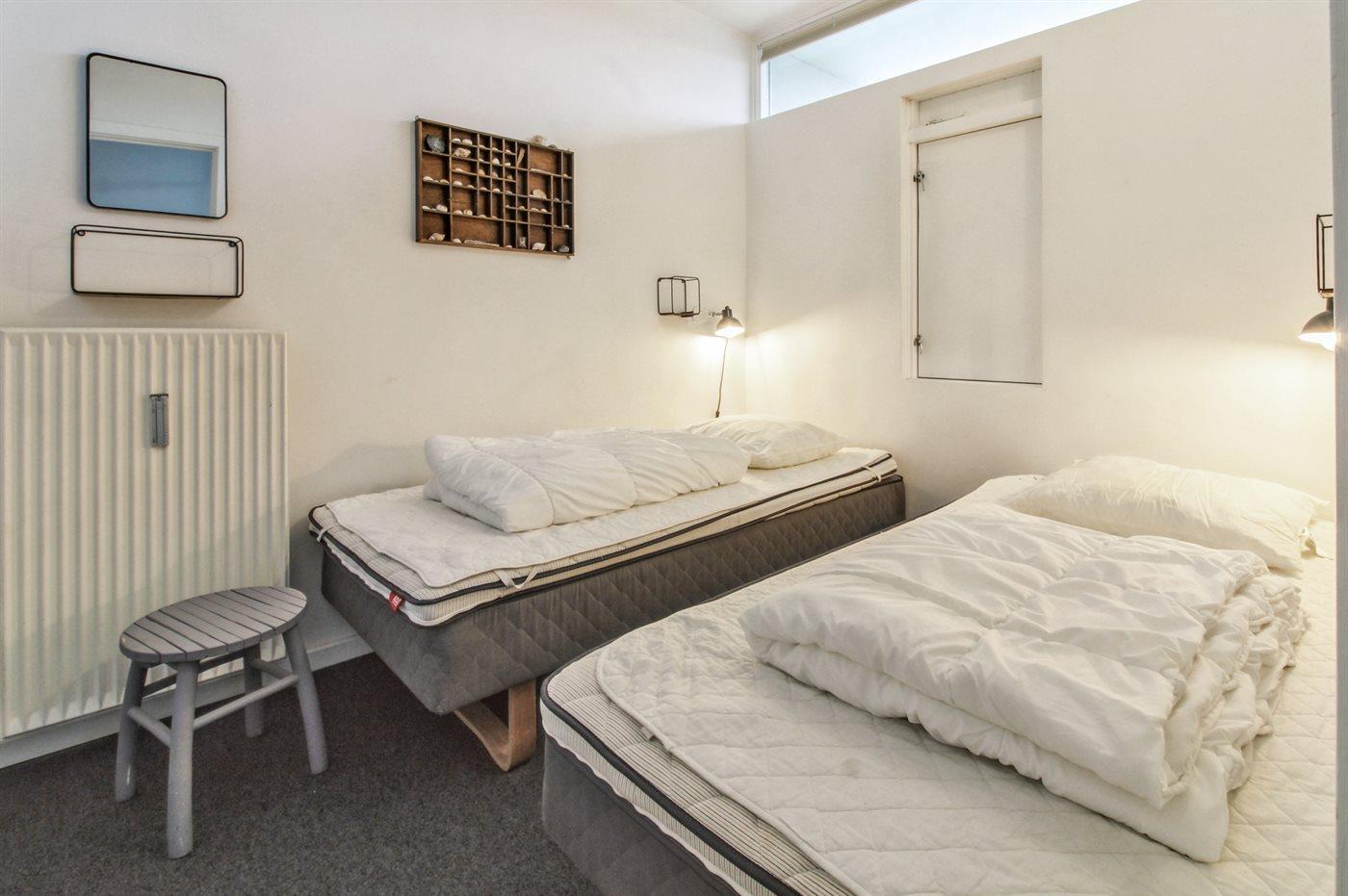 Der er i alt 1 soveværelse. Sovepladserne fordeler sig på: 2 sovepladser i enkeltsenge. 2 sovepladser i sovesofa (dobbelt). 2 af disse sovepladser befinder sig i stuen.