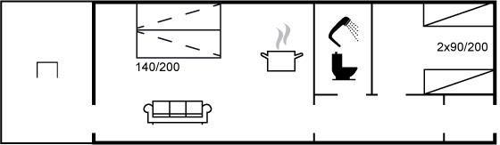 Bemærk: 2 sovepladser befinder sig på sovesofa i opholdsstuen.