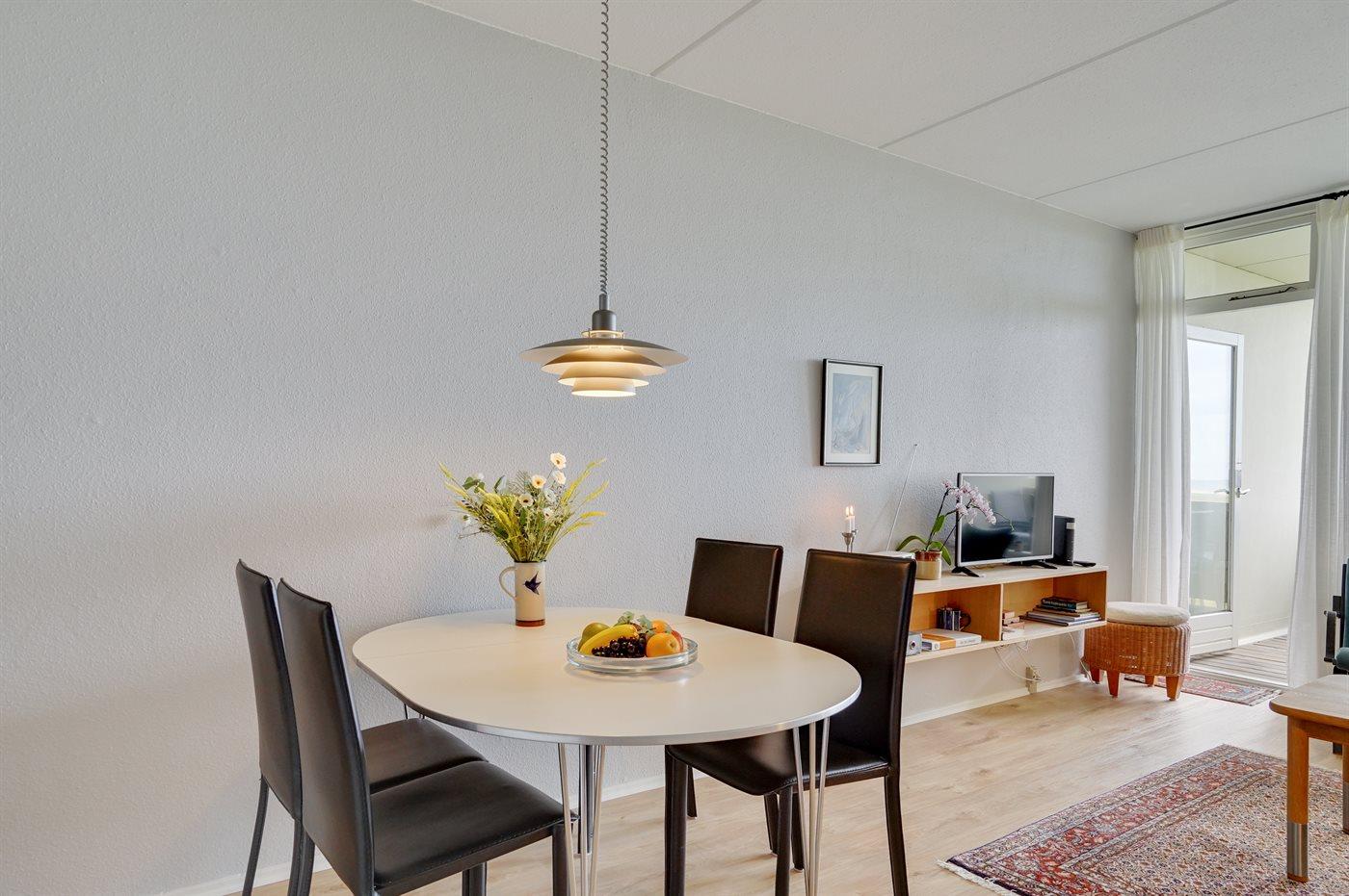 En hyggelig ferielejlighed med en fantastisk udsigt over den dejlige strand. Feriecentret tilbyder aktiviteter for hele familien som f.eks. udendørs pool, som er opvarmet med solvarme (til rådighed fra den 01.07 til 31.08), indendørs pool samt børnepool, sauna, vaskerum med tørretumbler og strygemulighed, gratis internet,aktivitetsrum med bl.a bordtennis, legerum, airhockey. Dejlige udendørsarealer m. grillarealer, borde-bænke, petanquebane. En dejlig ferielejlighed til den lille familie, hvor sovepladserne fordeler sig på 1 soveværelse og 2 sovepladser i opholdsstuen.