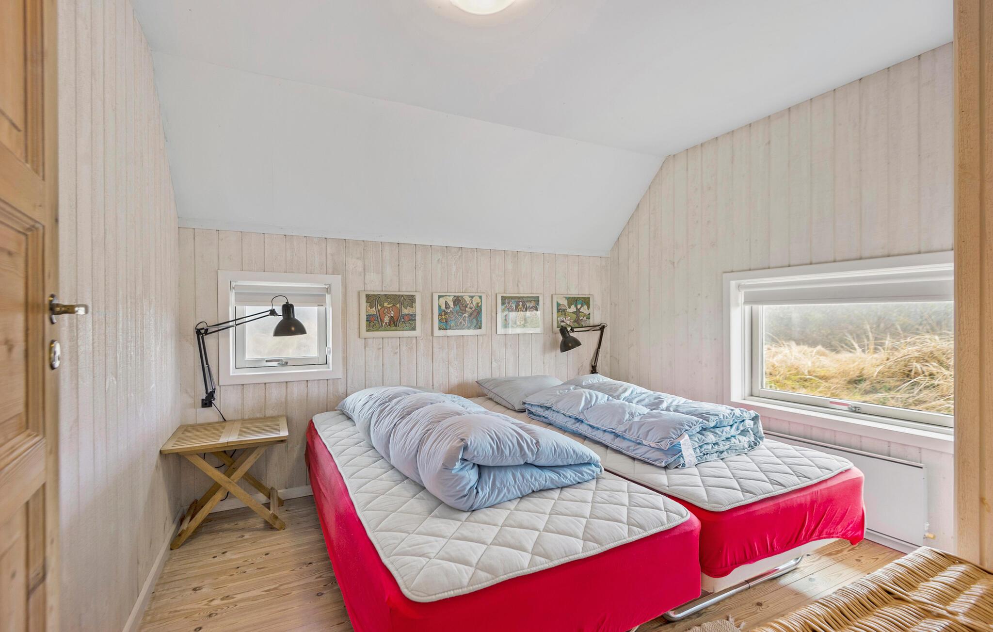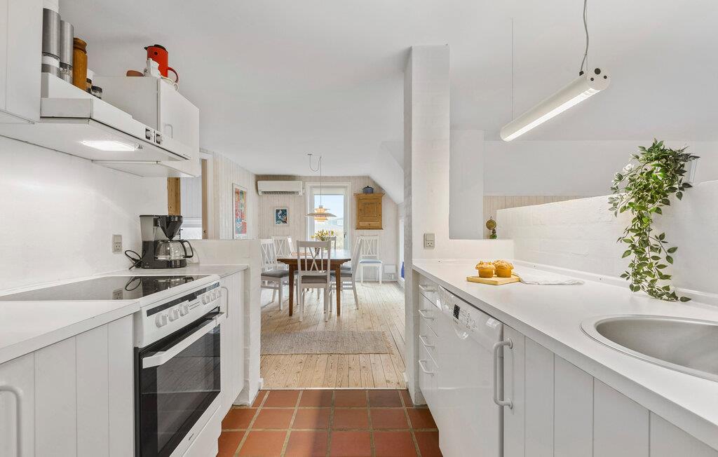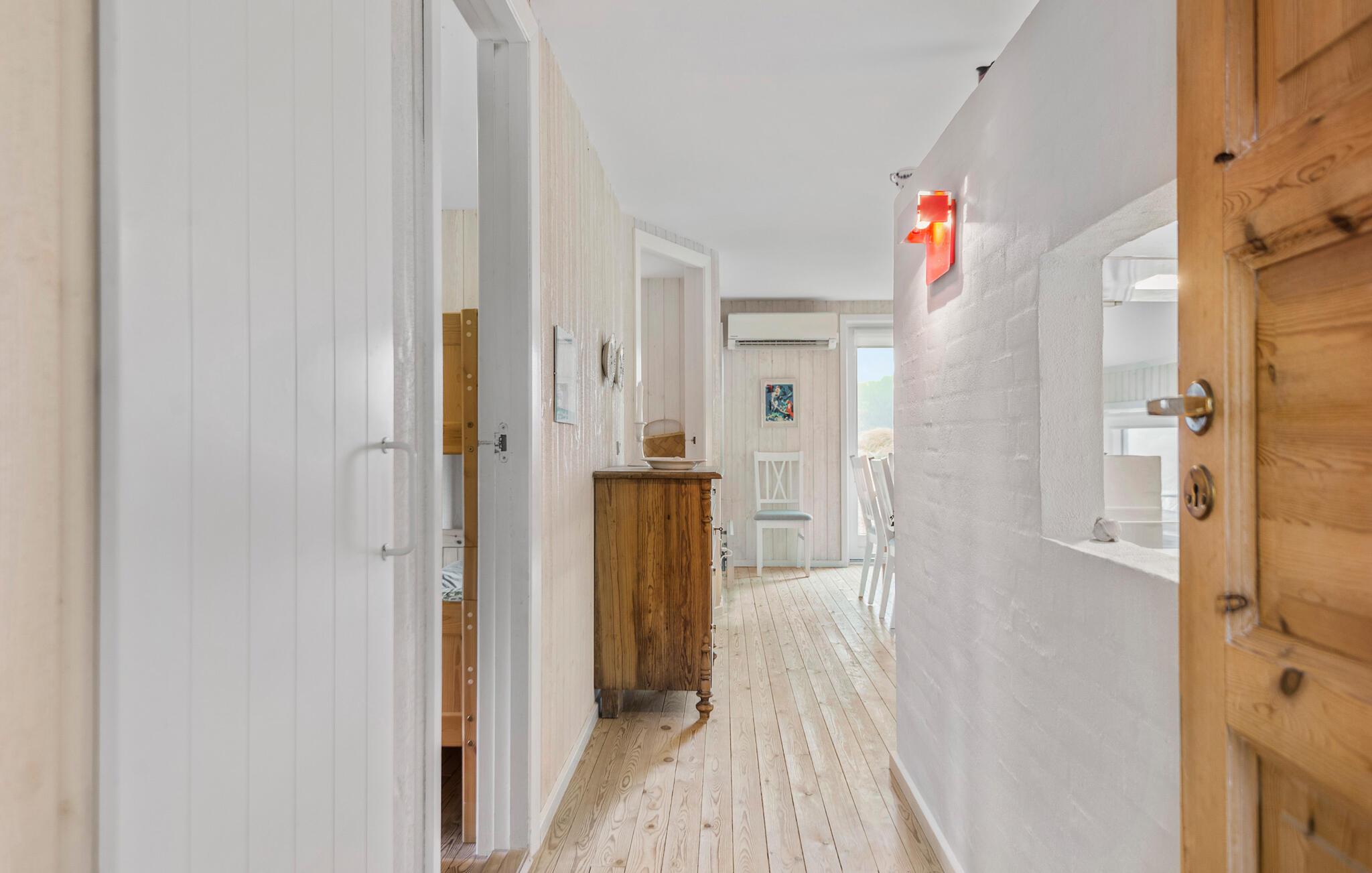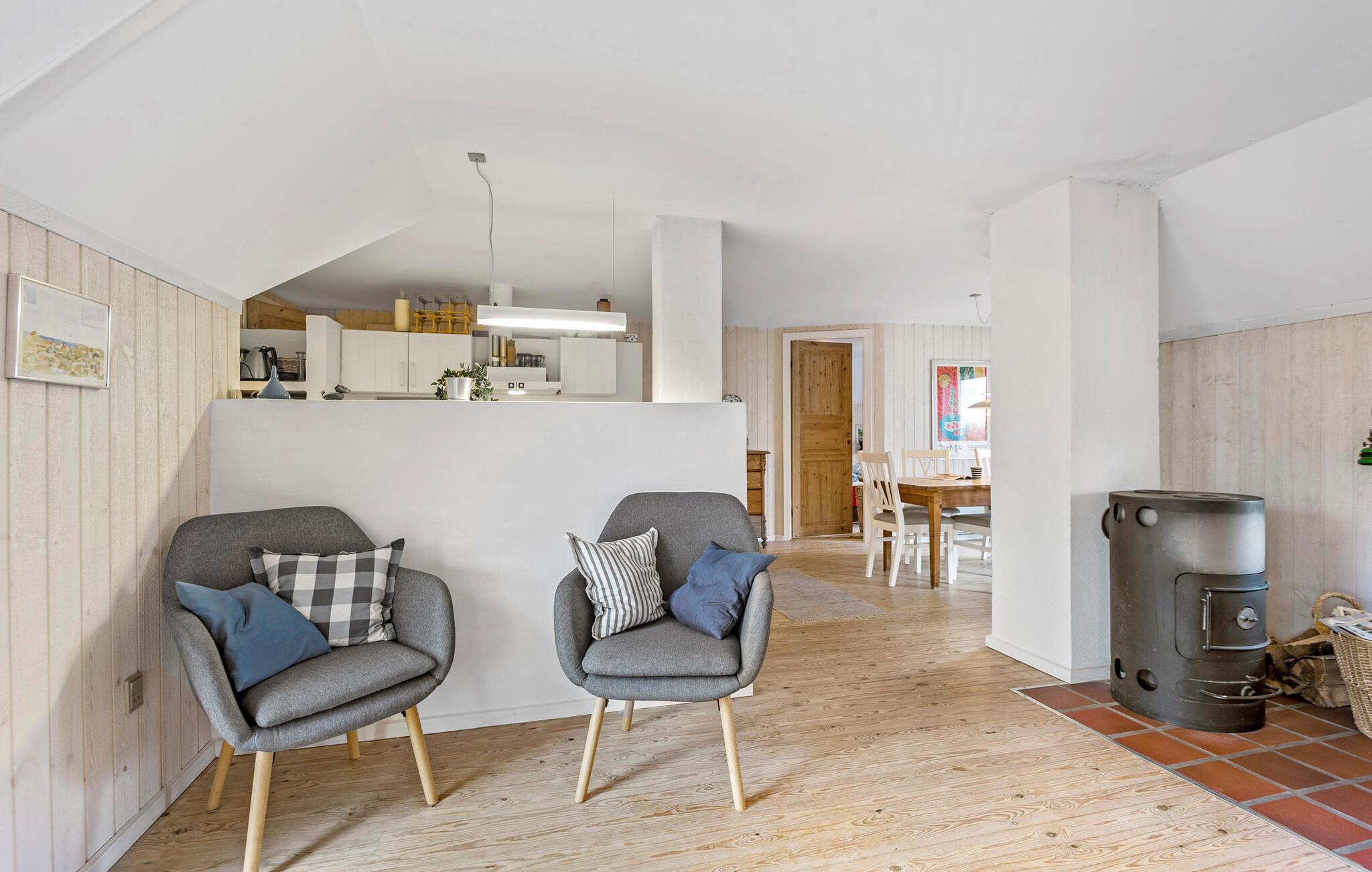 Huset er både charmerende og indbydende, og indretningen emmer simpelthen af hygge med sin åbne planløsning og træelementer i varme farver. Den står på klassisk feriehygge med god tid til madlavningen, hyggelige fælles måltider og ægte afslapning på sofaen. Og alt sammen foregår det med en dejlig udsigt til det åbne klitlandskab.