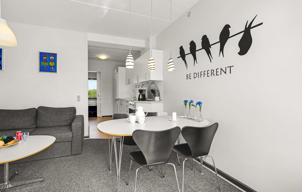 Velkommen til Fanø Bad og denne skønne lejlighed, som giver jer et herligt udgangspunkt for jeres feriedage. Her kan den lille familie flade ud oven på dagens oplevelser og nyde samværet i den indbydende stue. Begynd dagene med at planlægge jeres aktiviteter over morgenmaden, som nydes rundt om spisebordet. Læn jer tilbage i sofaen efter en lang dag på farten og sæt en serie på fjernsynet eller hyg jer med brætspil og gode bøger.