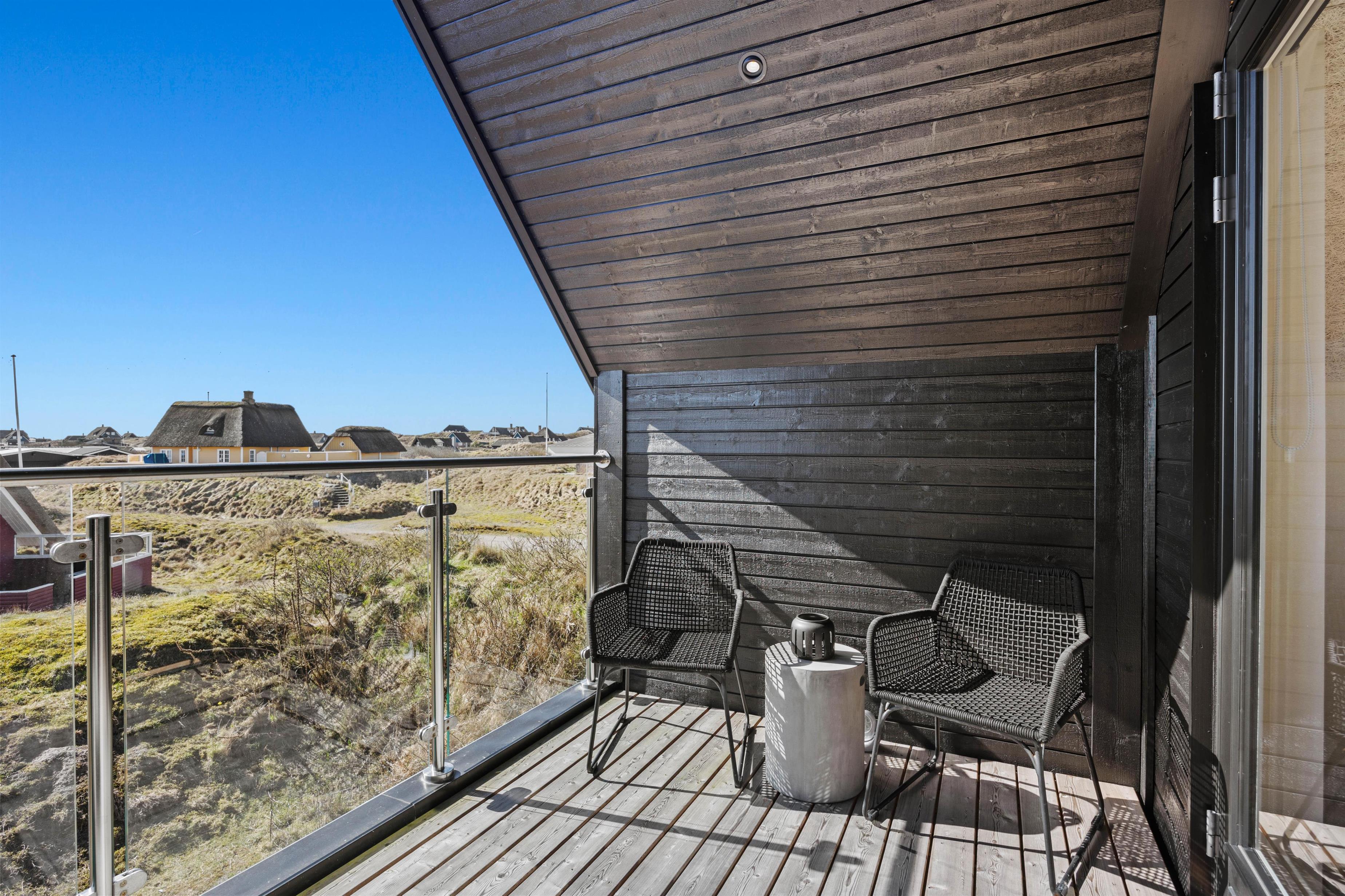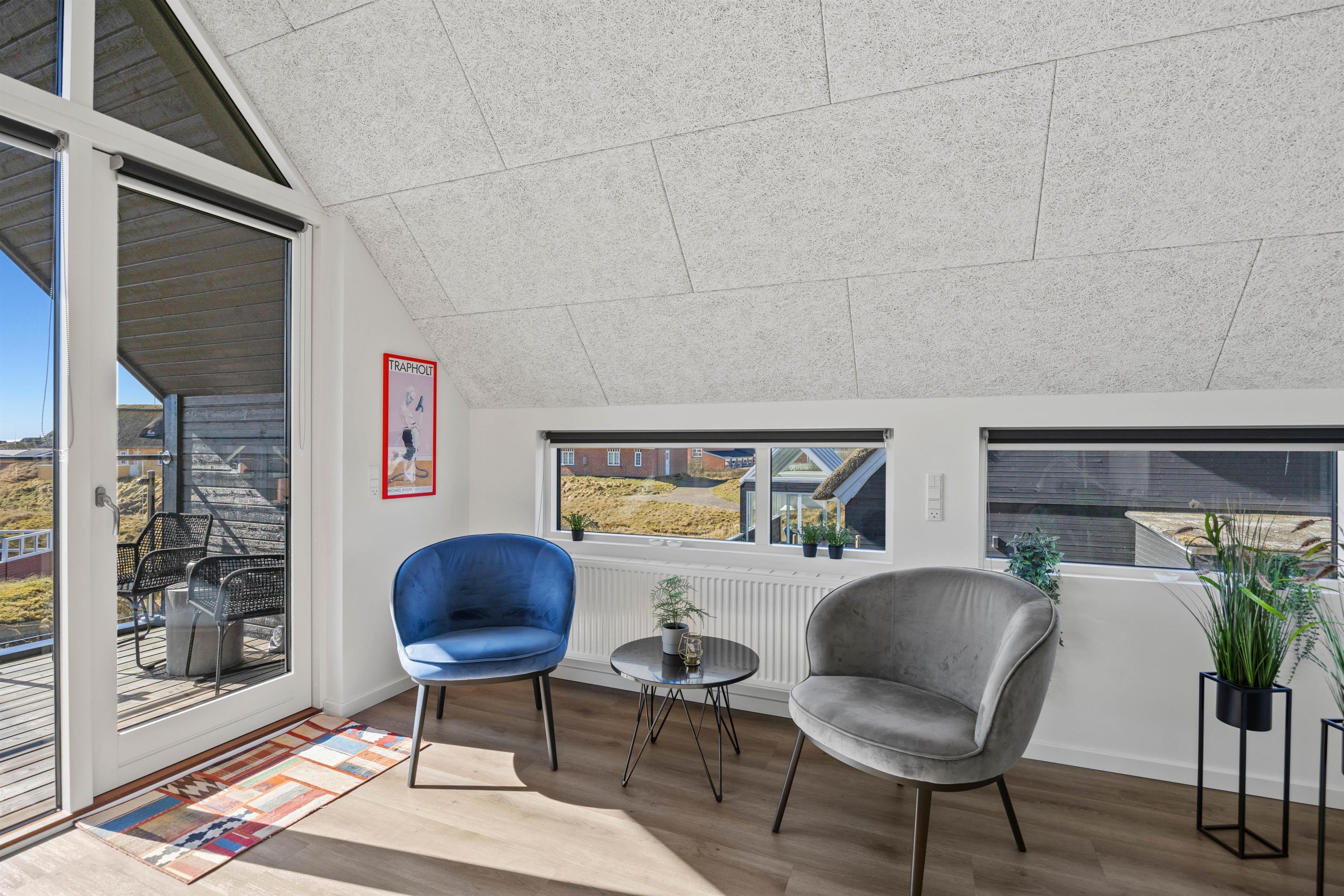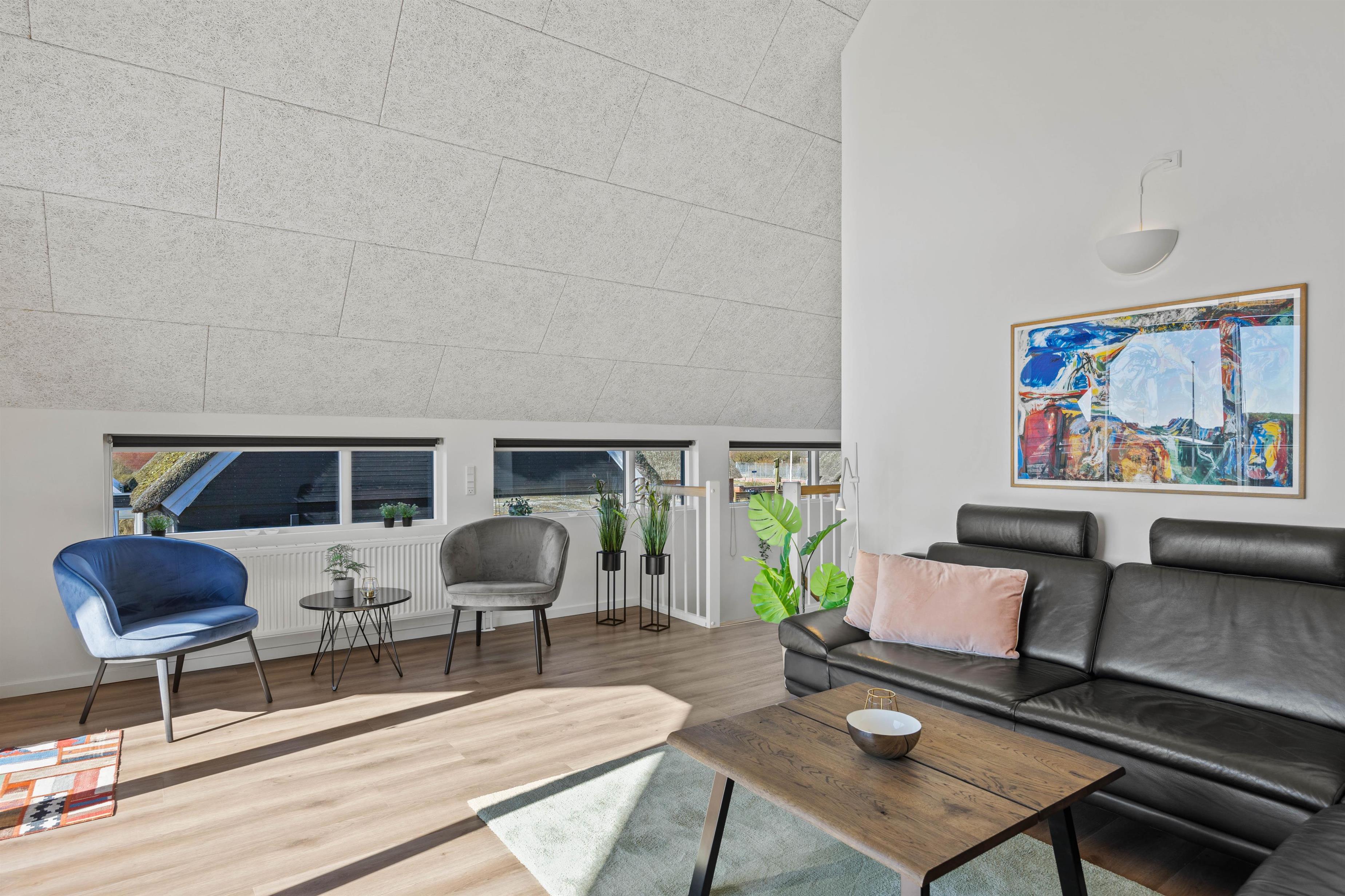 Ferielejligheden er opført i 2021, og indendørs finder I en hyggelig opholdsstue på førstesalen, indrettet med komfortable møbler og tv med danske kanaler. Her kan I slappe af i sofaen, se en god film eller bare nyde udsigten gennem de store vinduer. Fra stuen har I udgang til en overdækket altan, hvor morgenkaffen eller en stille stund med en god bog venter.