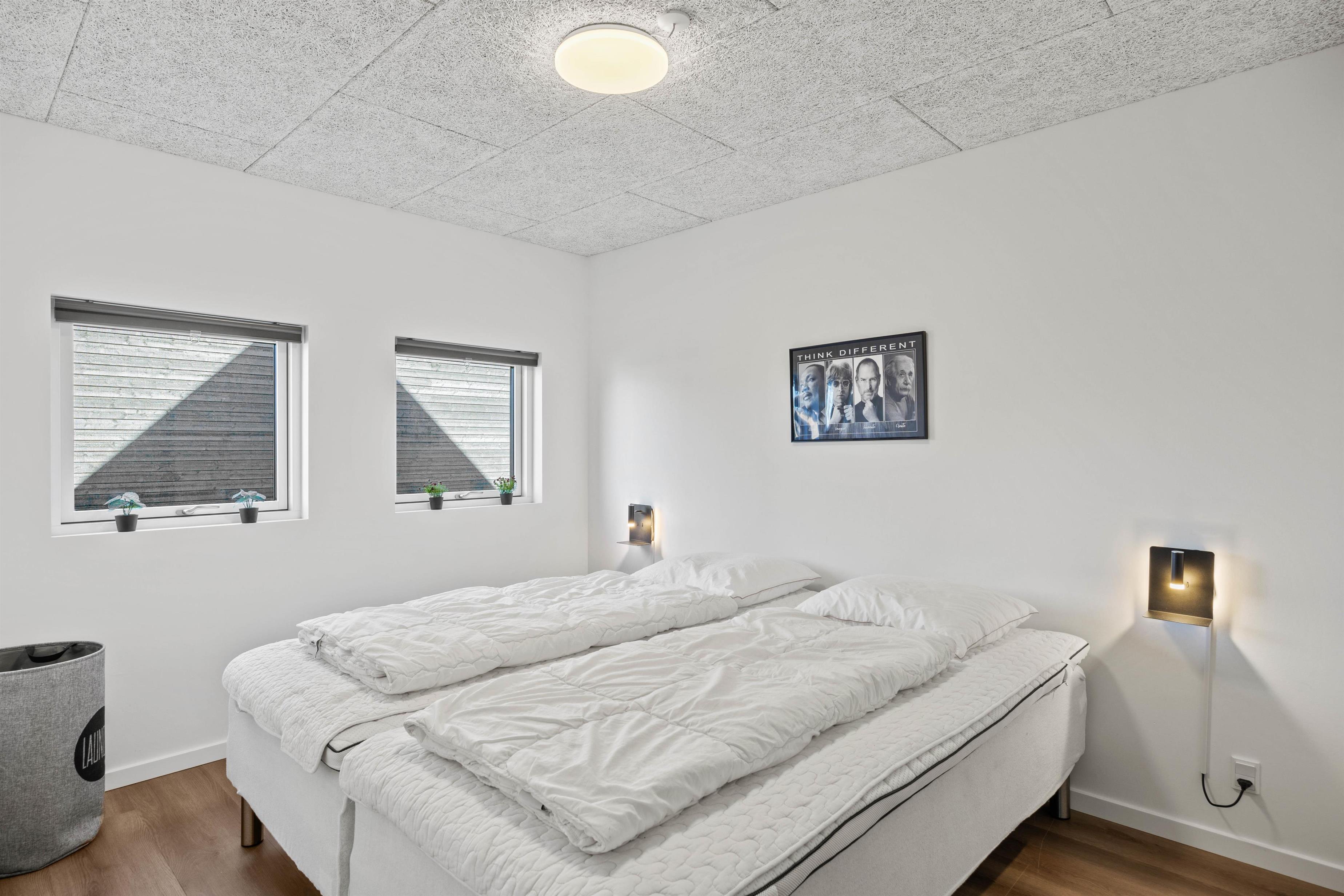 På førstesalen ligger også det ene af 2 moderne badeværelser samt 2 af de i alt 3 lyse soveværelser med dobbeltseng.