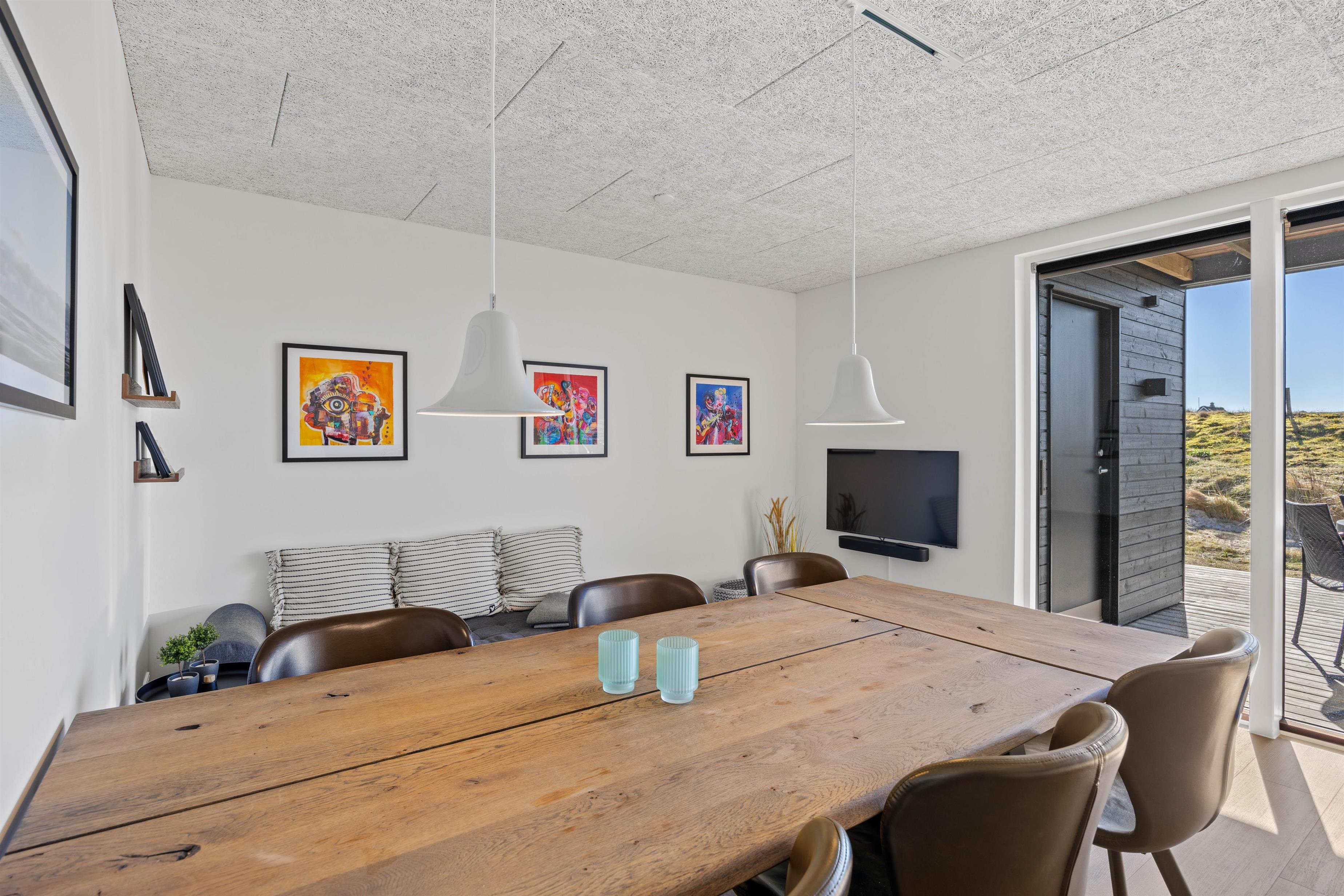 I stueplan ligger den åbne og veludstyrede køkkenafdeling. Her er både vinkøleskab, induktionskomfur, opvaskemaskine, mikroovn og en køle-/frysekombination. Alt, hvad I skal bruge til en hyggelig aften med madlavning og samvær. Ved spisebordet ved siden af køkkenet er der god plads til fælles måltider og måske et spil kort til et glas vin.
