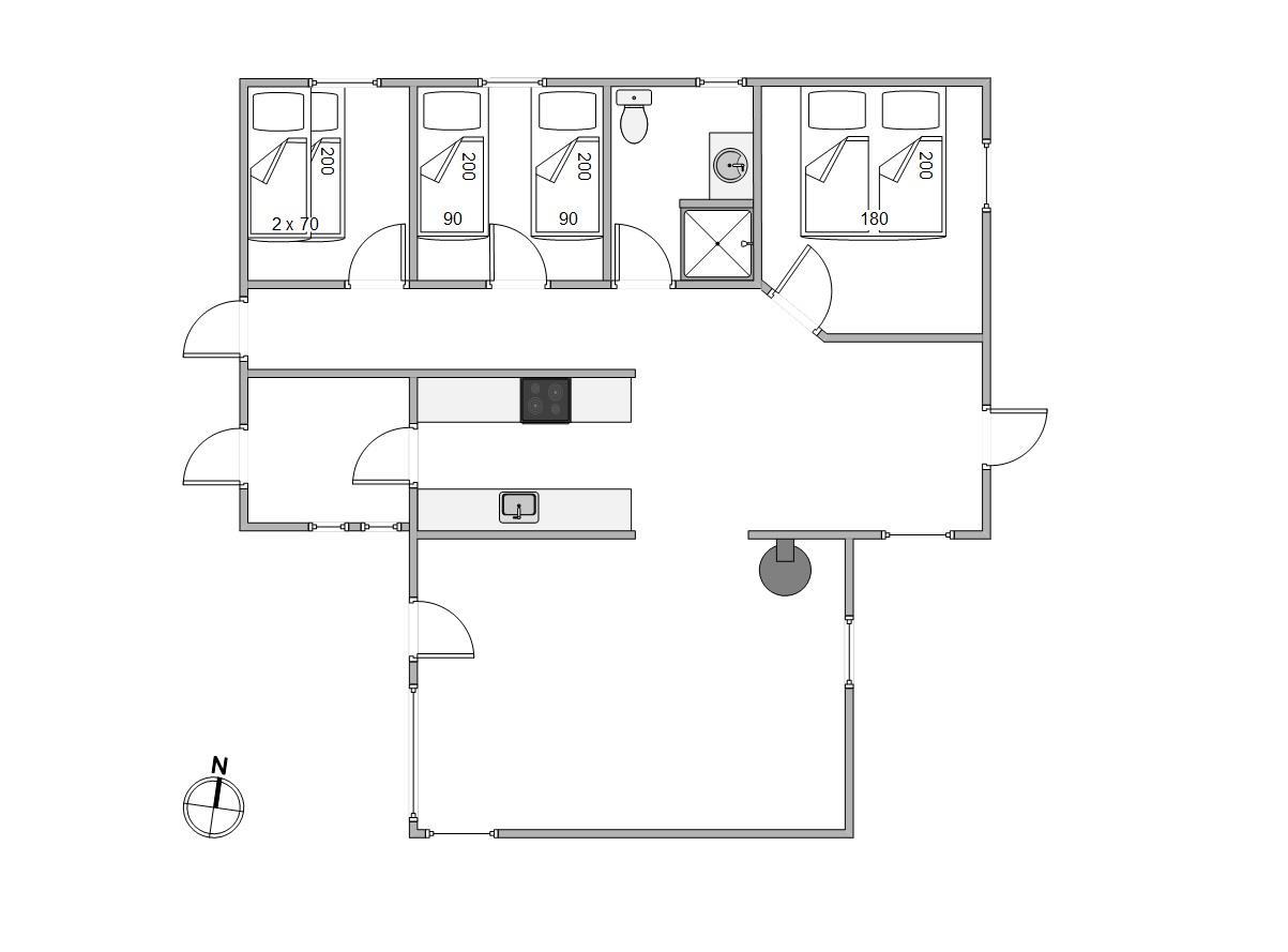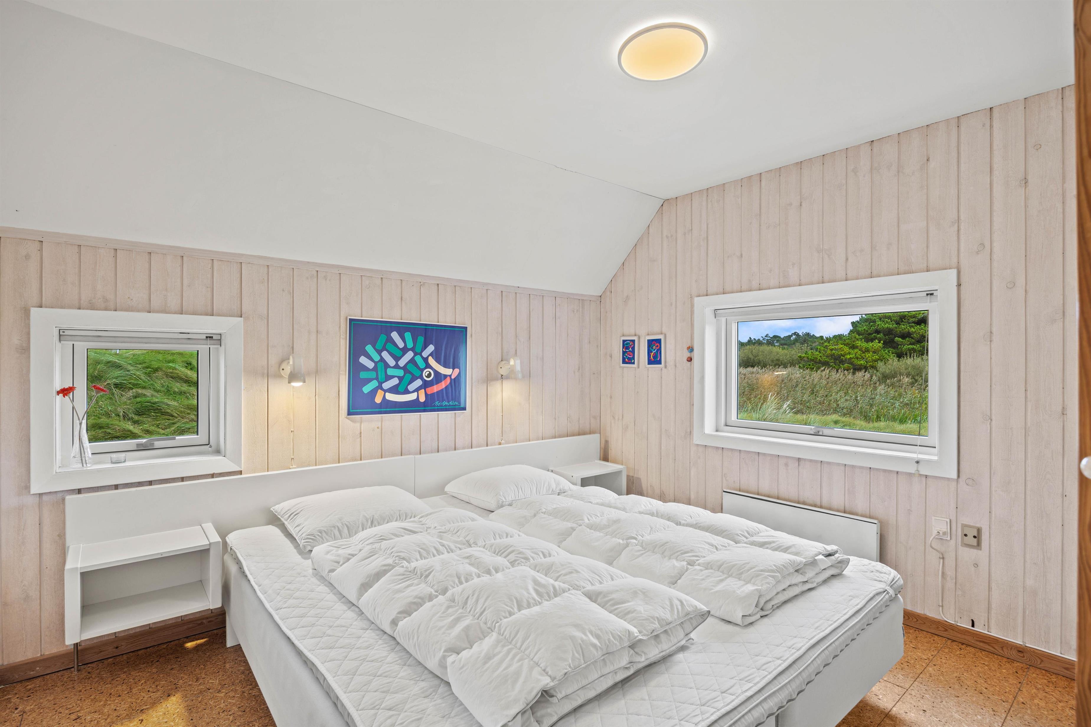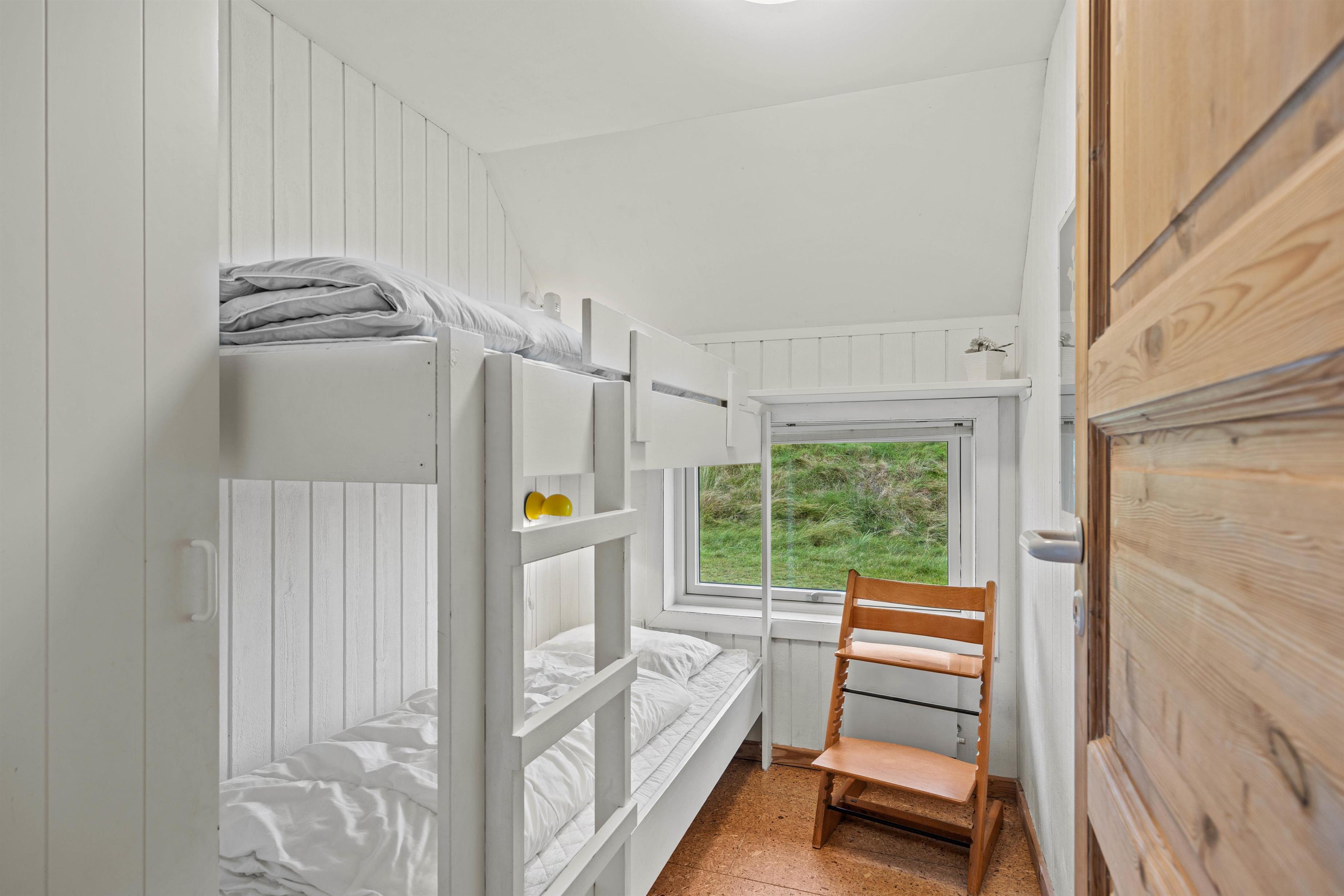 I feriehuset har I 3 gode soveværelser, I kan søge mod, når det er tid til at gå til køjs og samle ny energi til de kommende feriedage. Soveværelserne er udstyret med en dobbeltseng, en køjeseng og to enkeltsenge. På badeværelset er der gulvvarme, så ingen behøver at fryse fødderne.