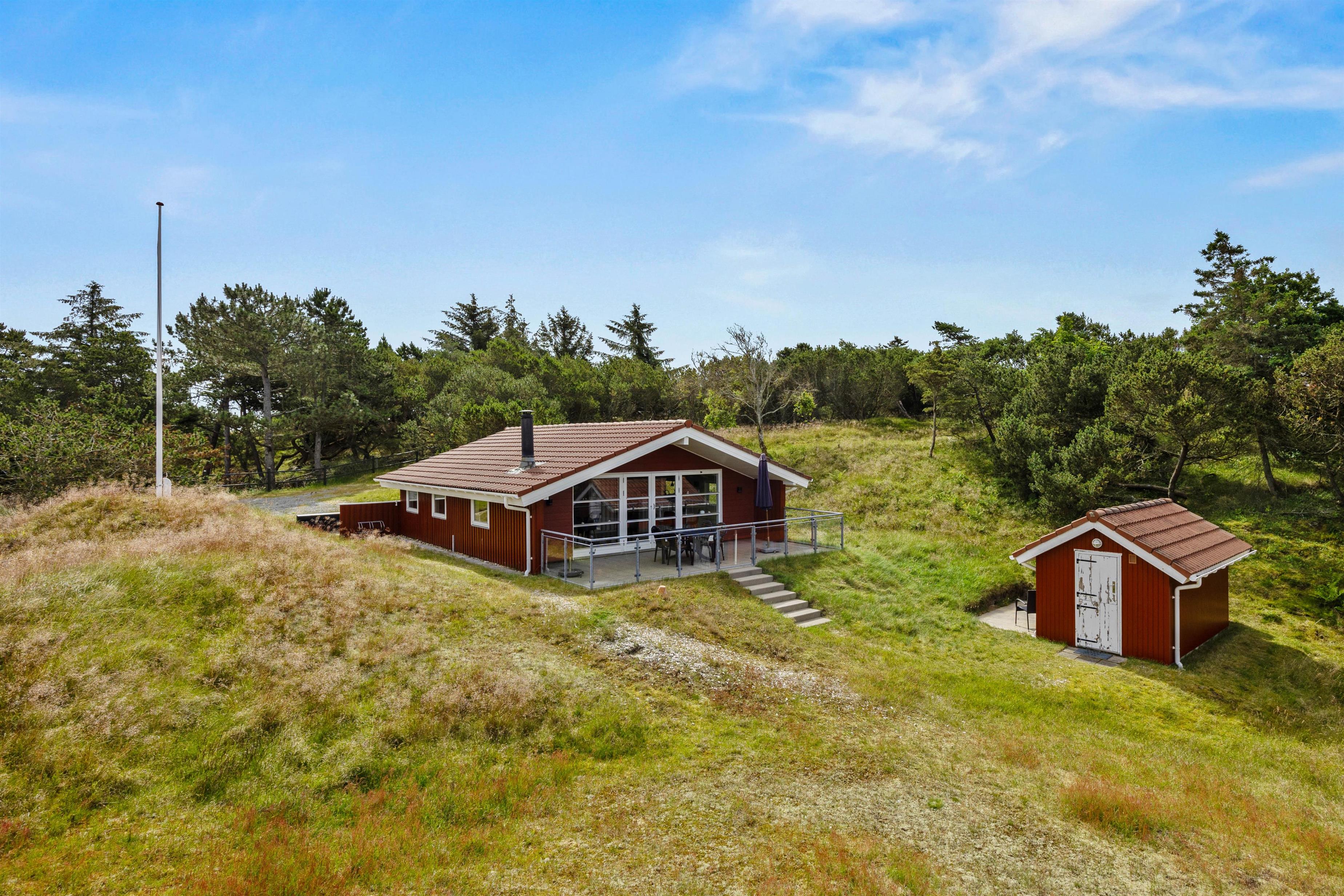 Jeres hyggelige sommerhus ligger på en godt 2100 m2 stor naturgrund, omgivet af buske og træer. På terrassen står der komfortable havemøbler og en grill til rådighed til hyggelige BBQ-aftener. På solrige dage kan I nyde varmen på liggestolene, læse en god bog eller forfriske jer med en kølig drink.