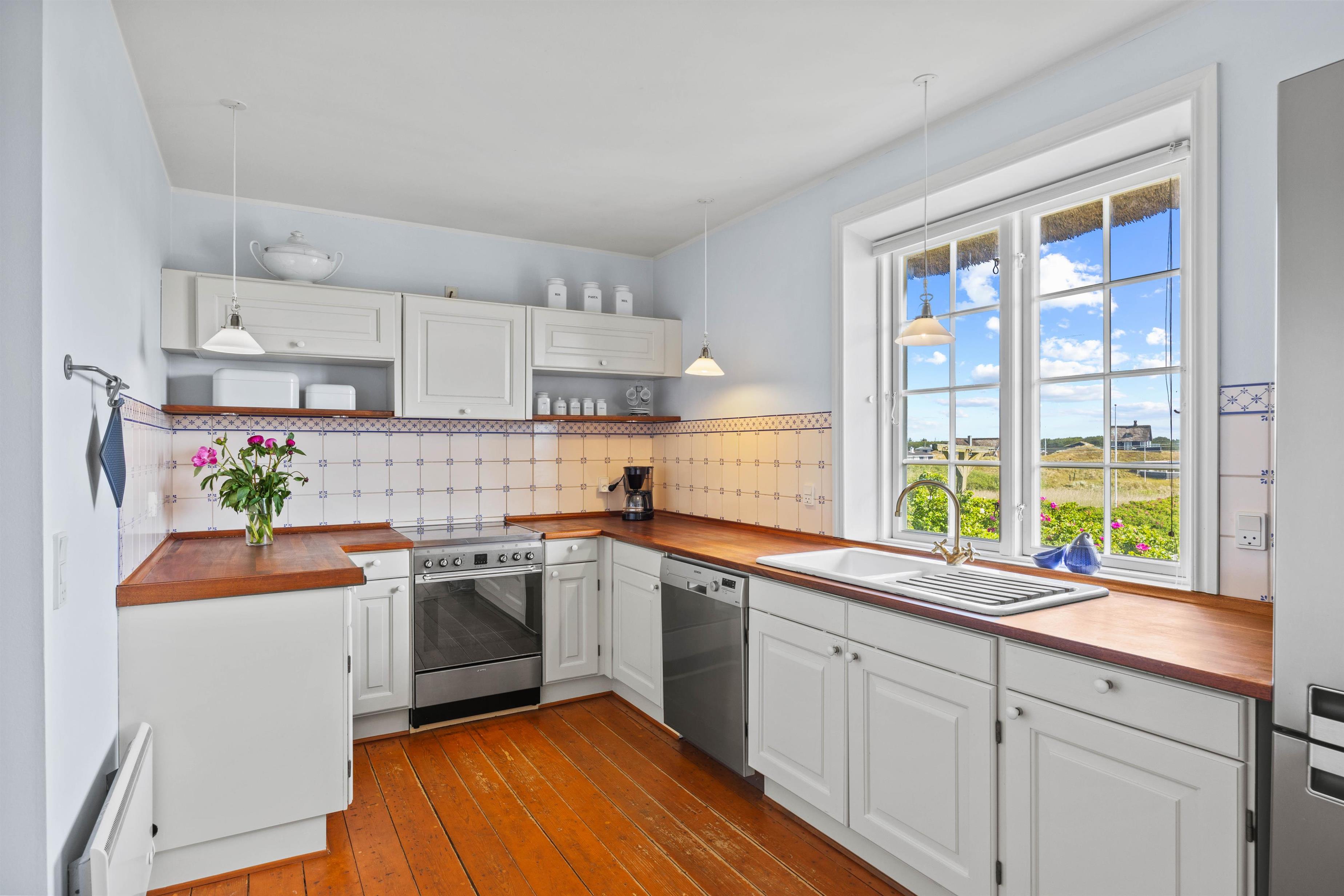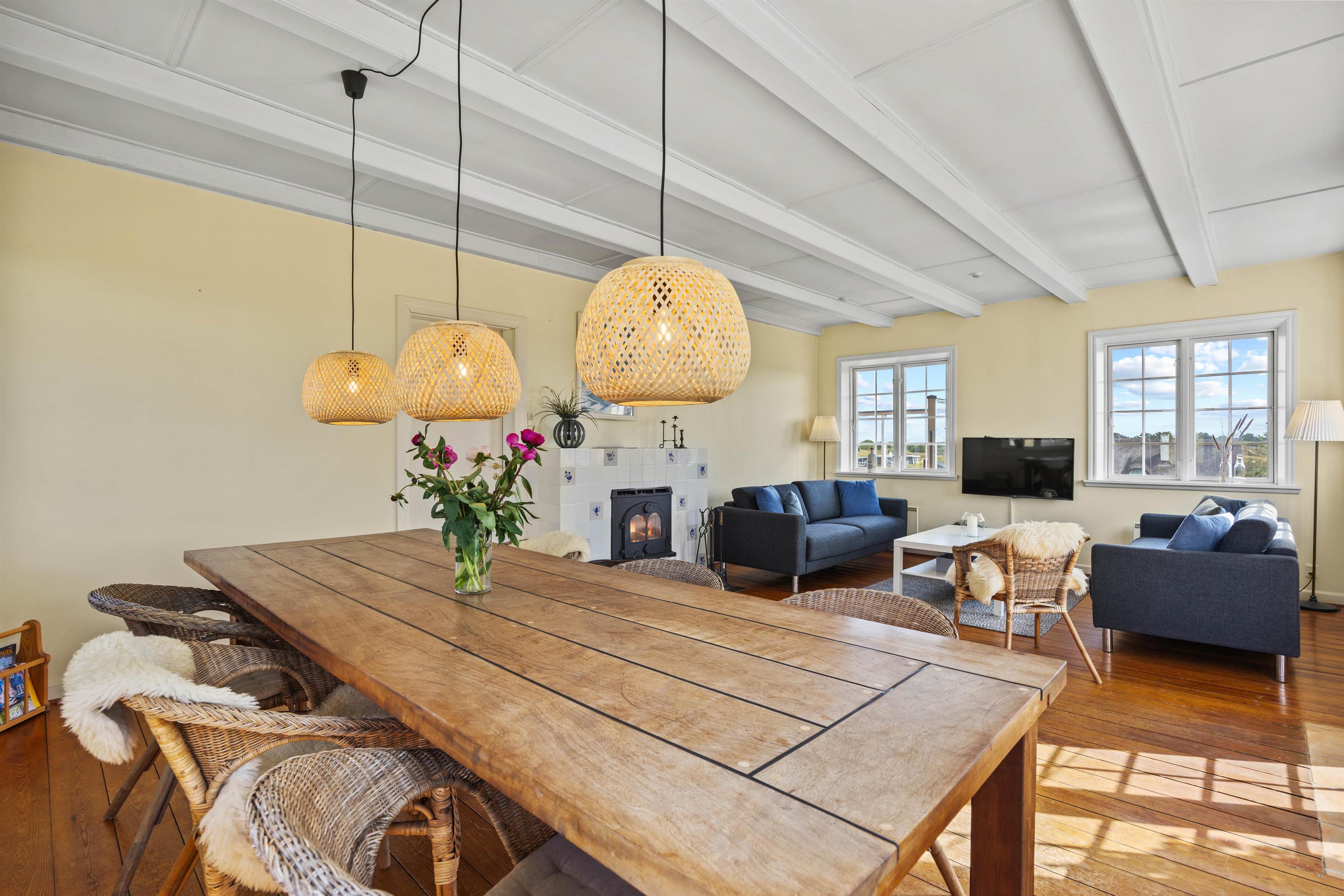 Indendørs bydes I velkommen af en varm og afslappet atmosfære, hvor sommerhusets oprindelige stil og stemning er velbevaret. De klassiske detaljer skaber sammen med moderne bekvemmeligheder en hjemlig ramme for jeres ferie.