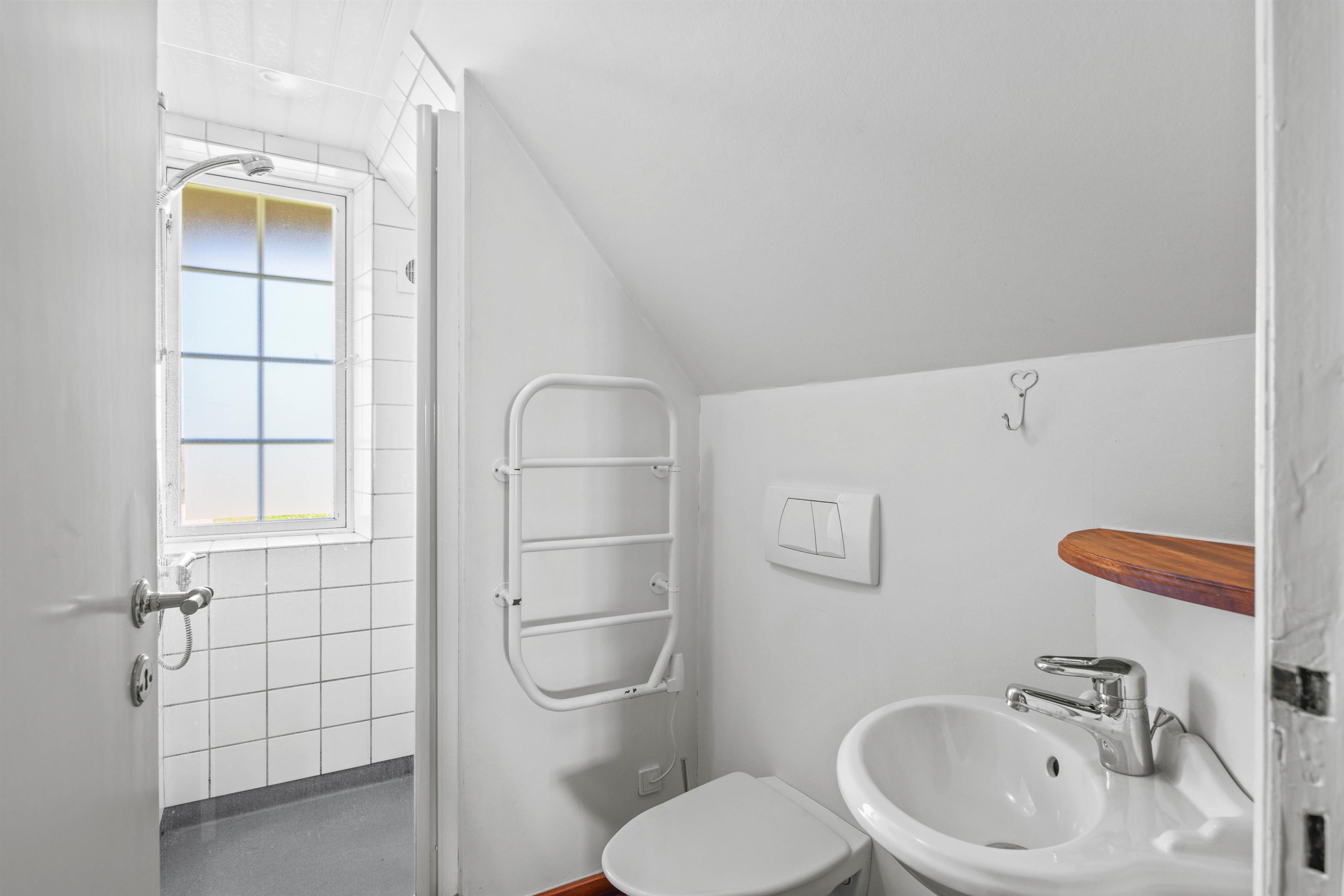 Det separate køkken er veludstyret med blandt andet opvaskemaskine og mikrobølgeovn og lægger op til fælles madlavning og hyggelige måltider. I alt findes der 2 badeværelser – det ene på første sal – og på øverste etage er der 3 soveværelser, 2 dobbeltsenge og 2 enkeltsenge.