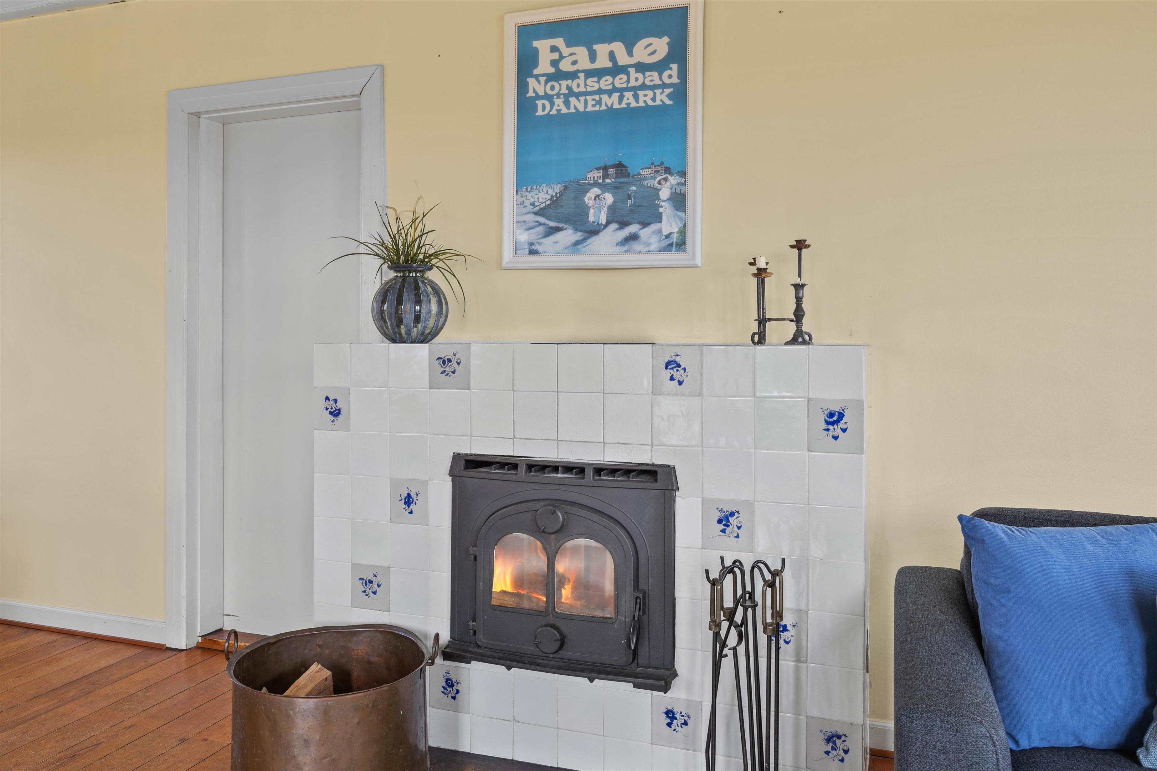 Opholdsstuen er indrettet med komfortable sofaer, tv med danske kanaler og en hyggelig brændeovn – ideel til afslappede aftener med familien. En energibesparende varmepumpe sikrer et behageligt indeklima året rundt.