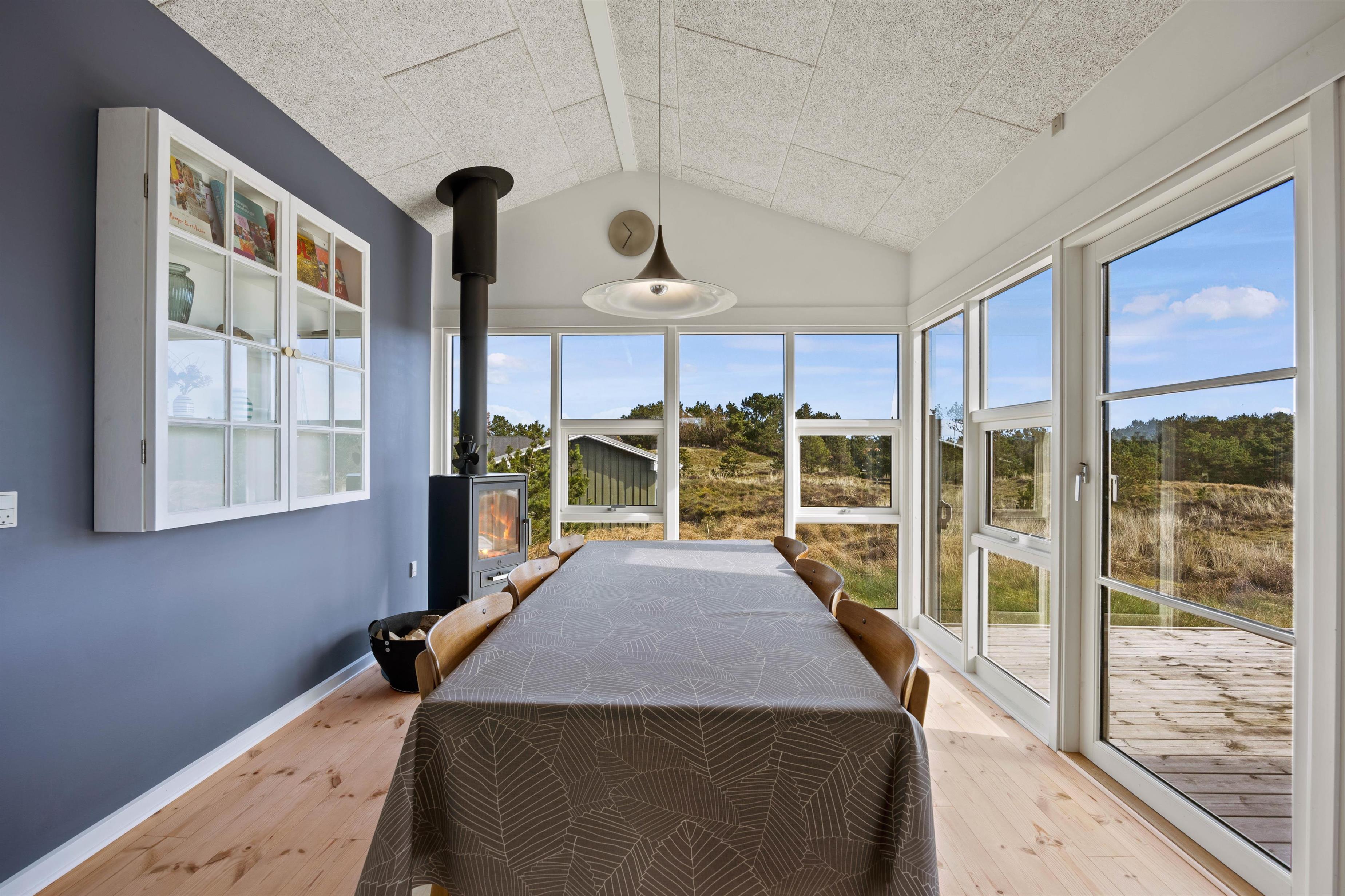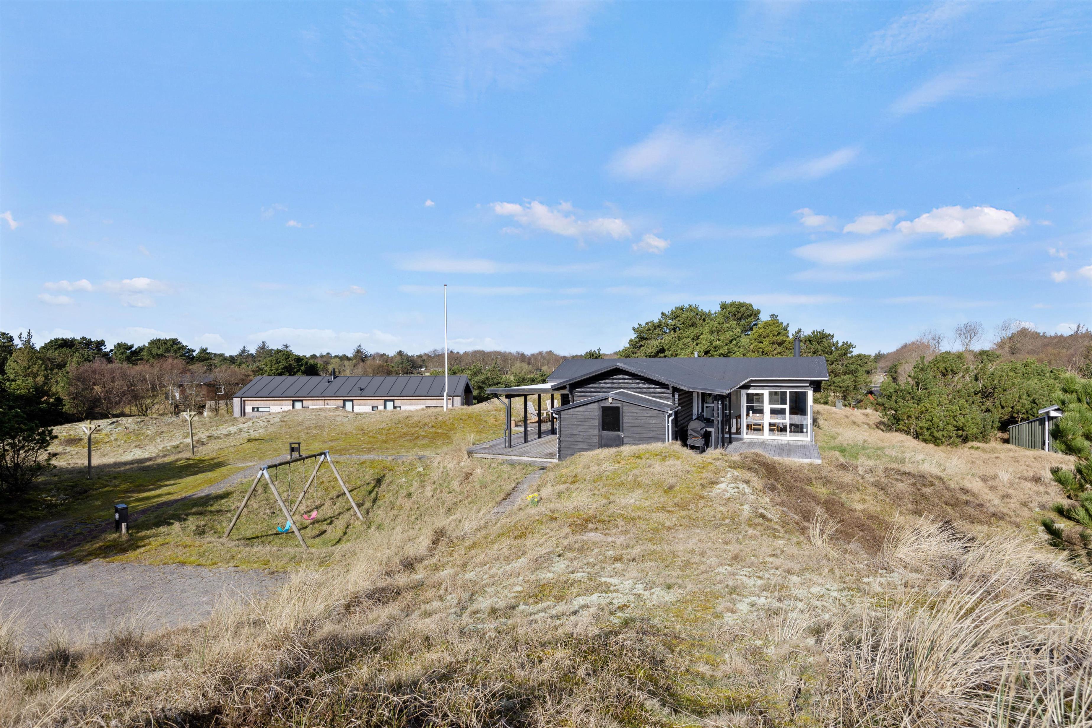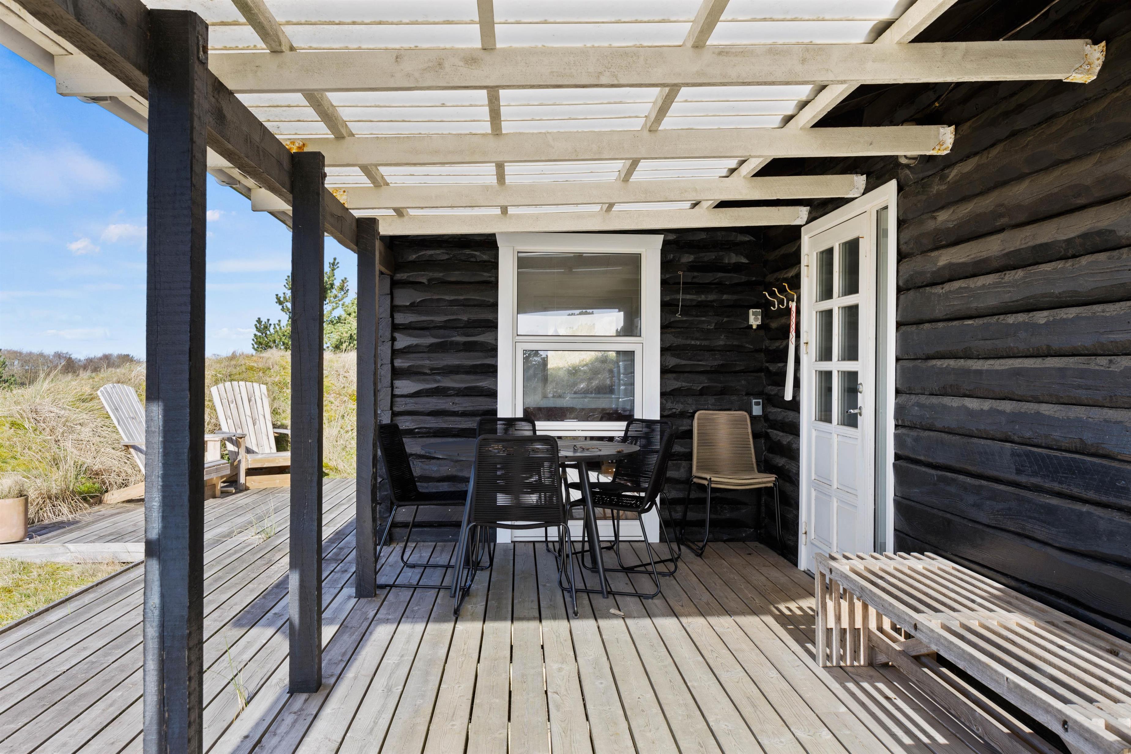 Sommerhusets terrasse er delvist overdækket, og her vil I uden tvivl få mange timer til at gå i løbet af ferien. Sommersolens stråler kan nydes fra en liggestol, mens eftermiddagskaffen nydes i havemøblerne. Fra terrassen har I et godt udsyn til klitgrunden, hvorpå der er en gynge til familiens yngste.
