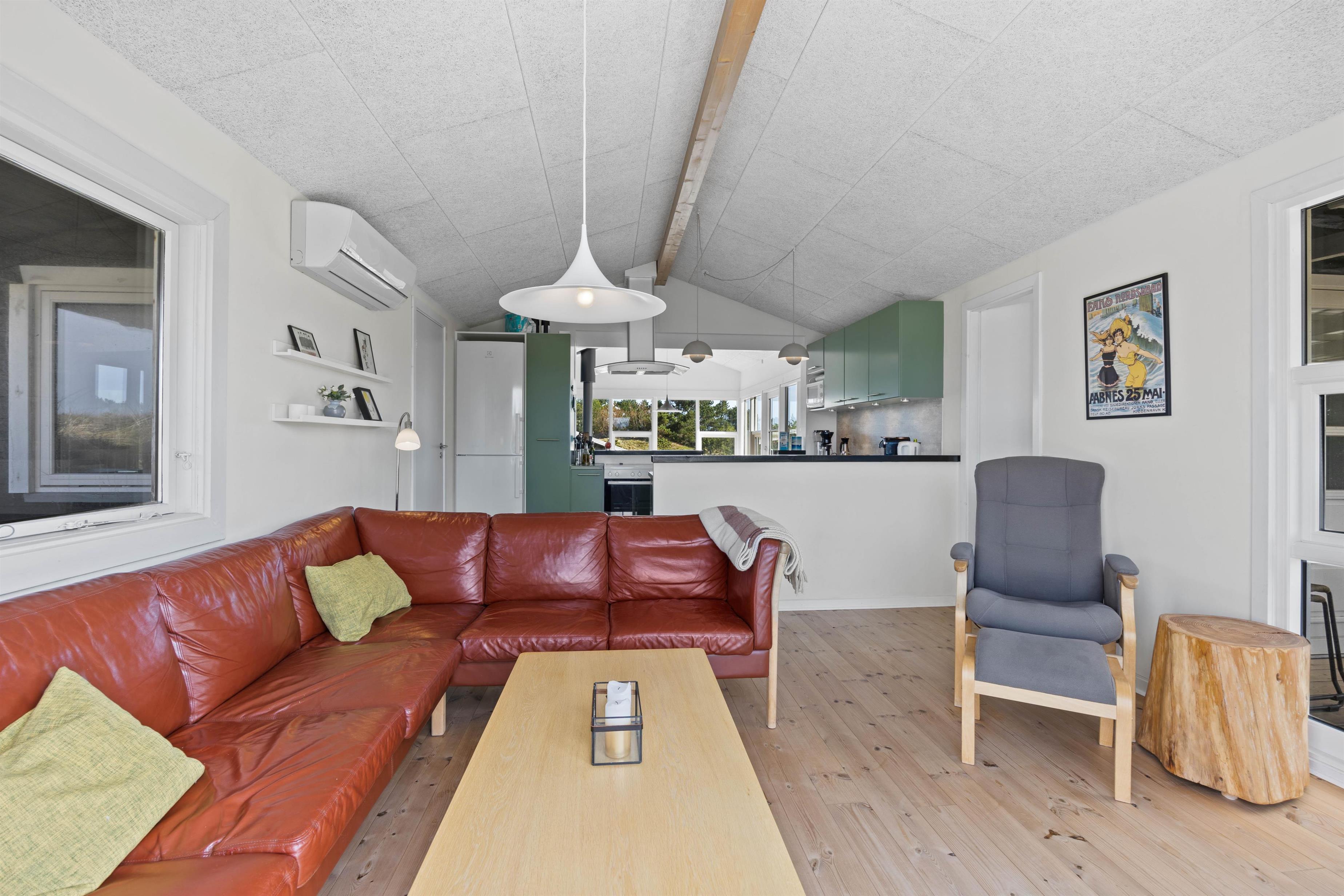 Sommerhuset er renoveret i 2022 og har en hyggelig og indbydende atmosfære, hvori I hurtigt vil føle jer godt tilpasse. Stuen, køkkenet og spisepladsen ligger i forlængelse af hinanden, så I kan snakke og hygge jer sammen, selvom nogle laver mad og andre slapper af i sofaen.