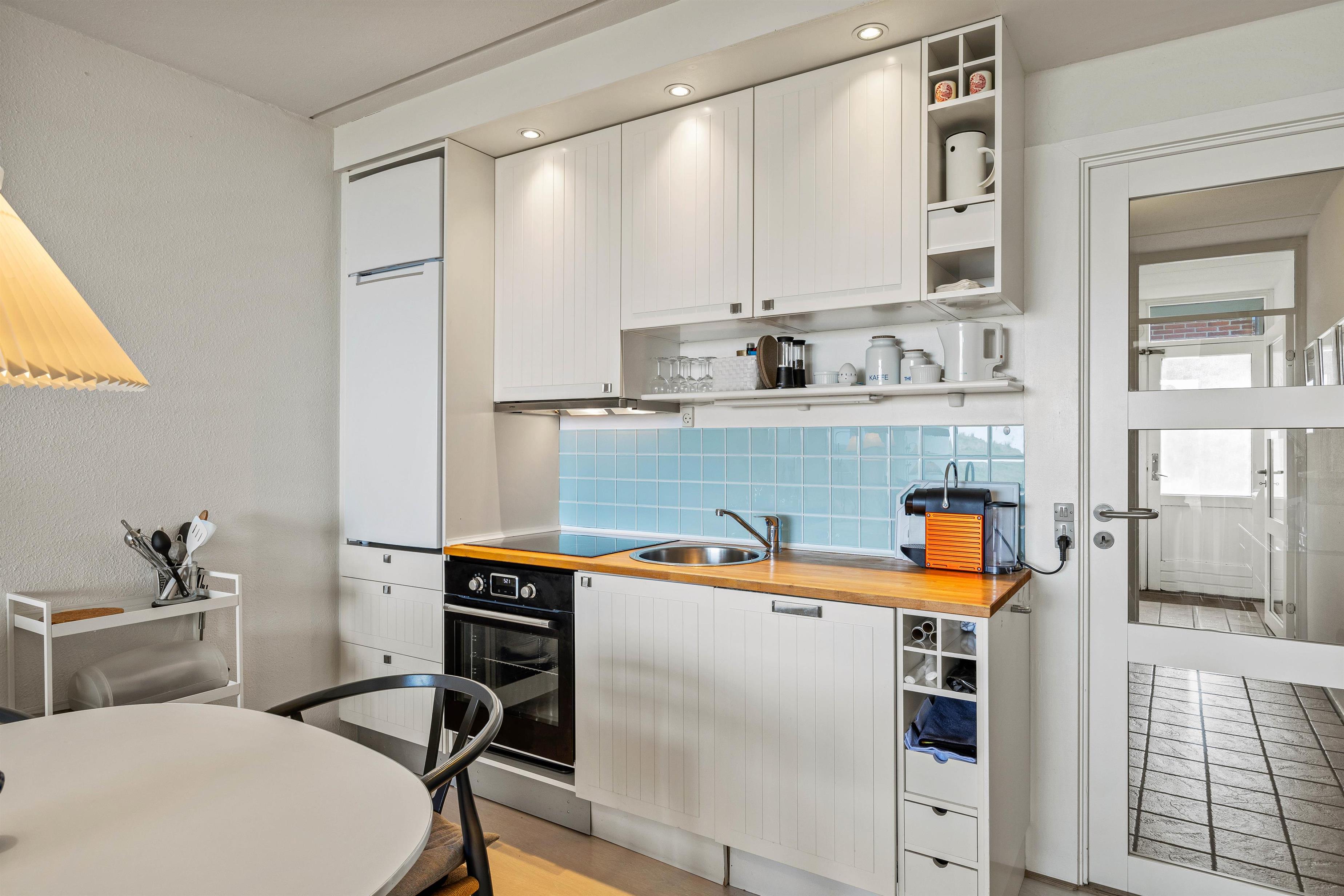 Ferielejligheden har et opholdsrum med komfortable møbler, hvorfra I kan nyde udsigten og hygge med en god bog eller et slag kort ved sofaen eller bare Chromcaste en film. I det overskuelige og veludstyrede køkken er der ud over ovn og kogeplader et køleskab med frostboks samt en opvaskemaskine til rådighed.