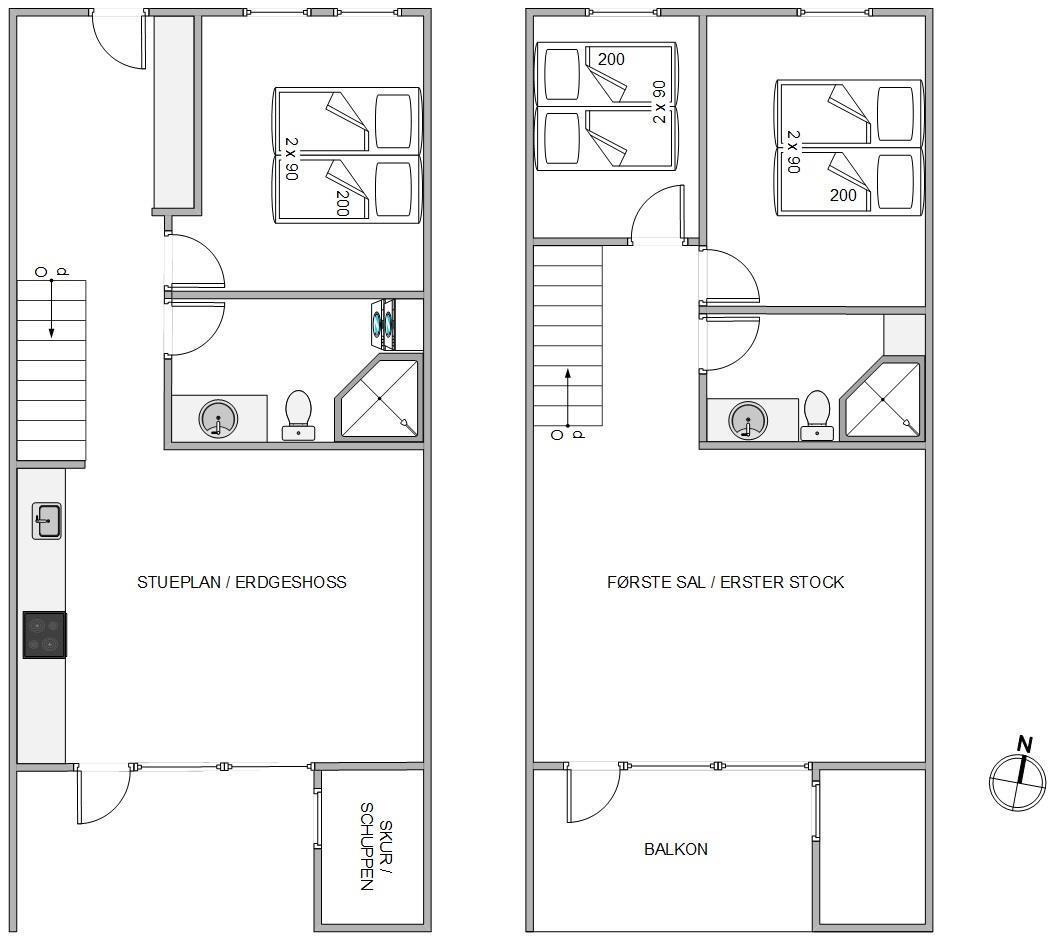 Om morgenen behøver I ikke frygte kø til badeværelset – der er nemlig 2 af dem. Badeværelserne ligger på hver sin etage, hvor der i stueetagen også er en vaskemaskine og tørretumbler tilgængelig, så I nemt og hurtigt kan friske tøjet op under jeres ferie.
