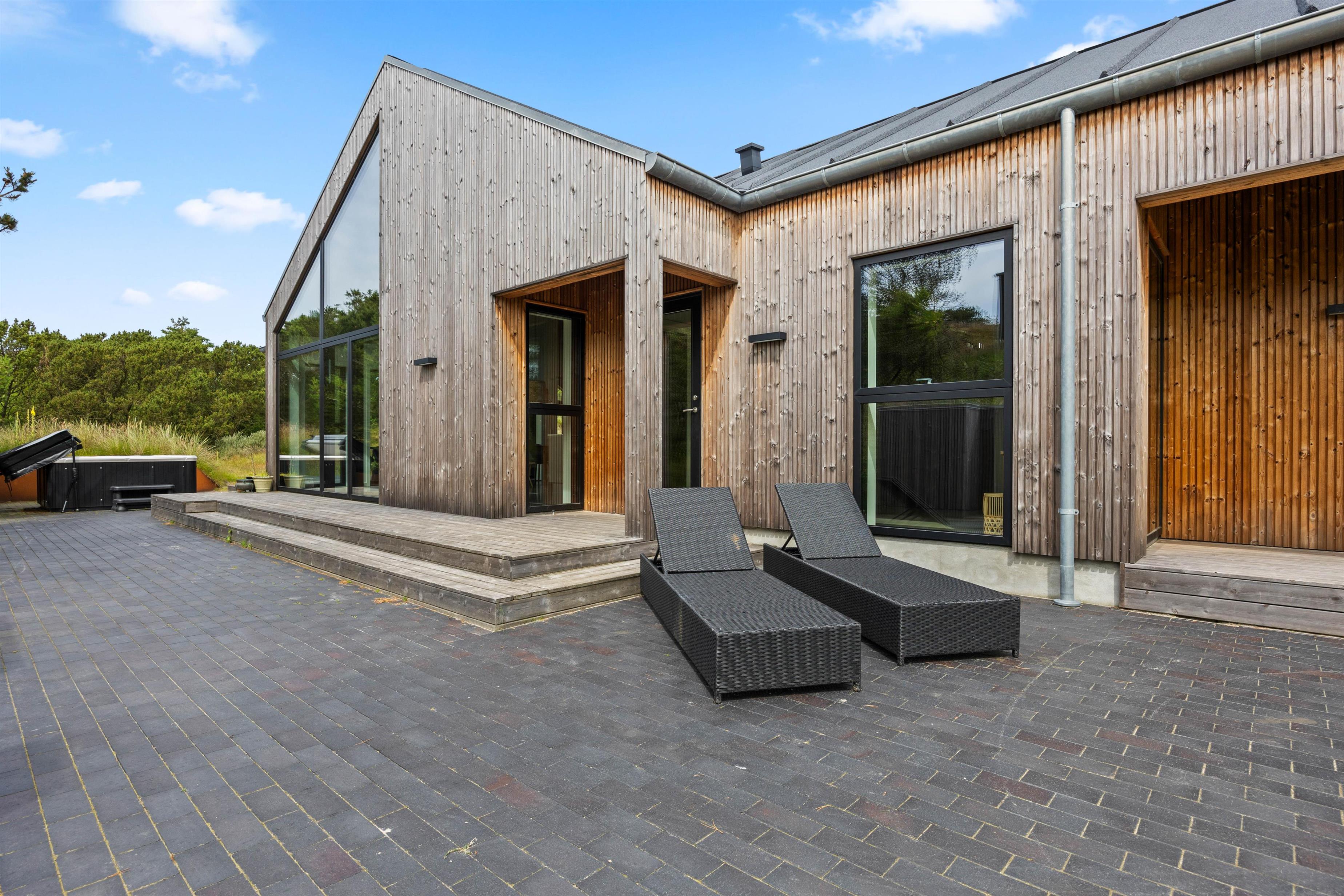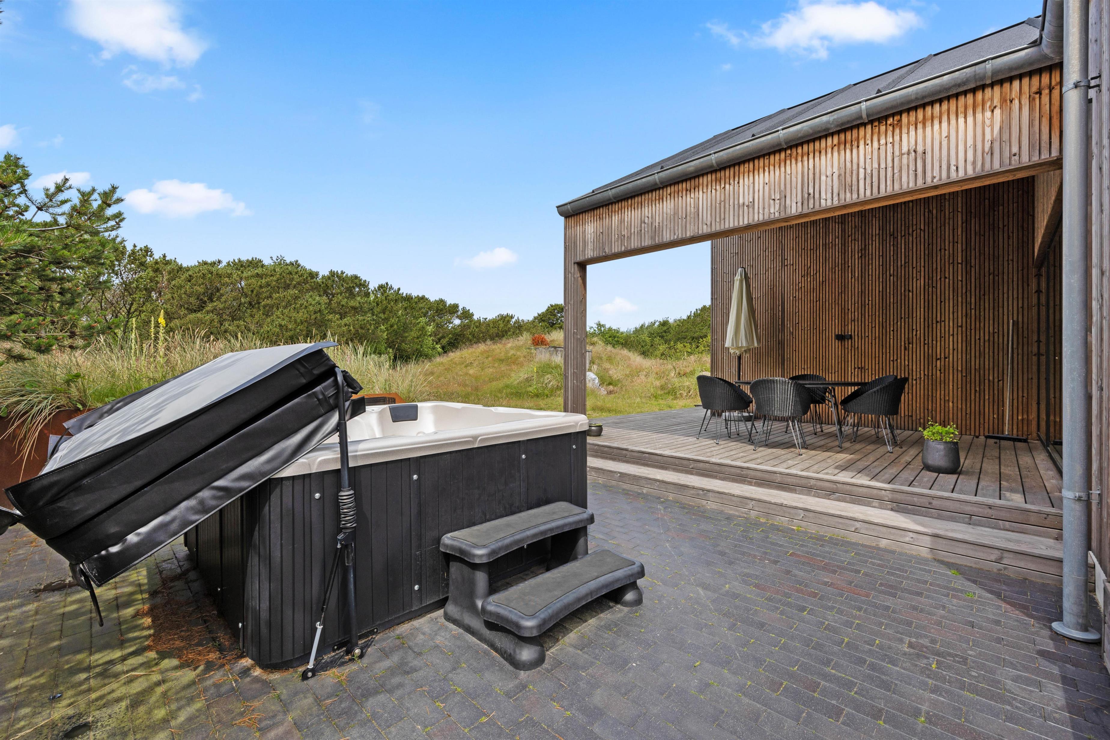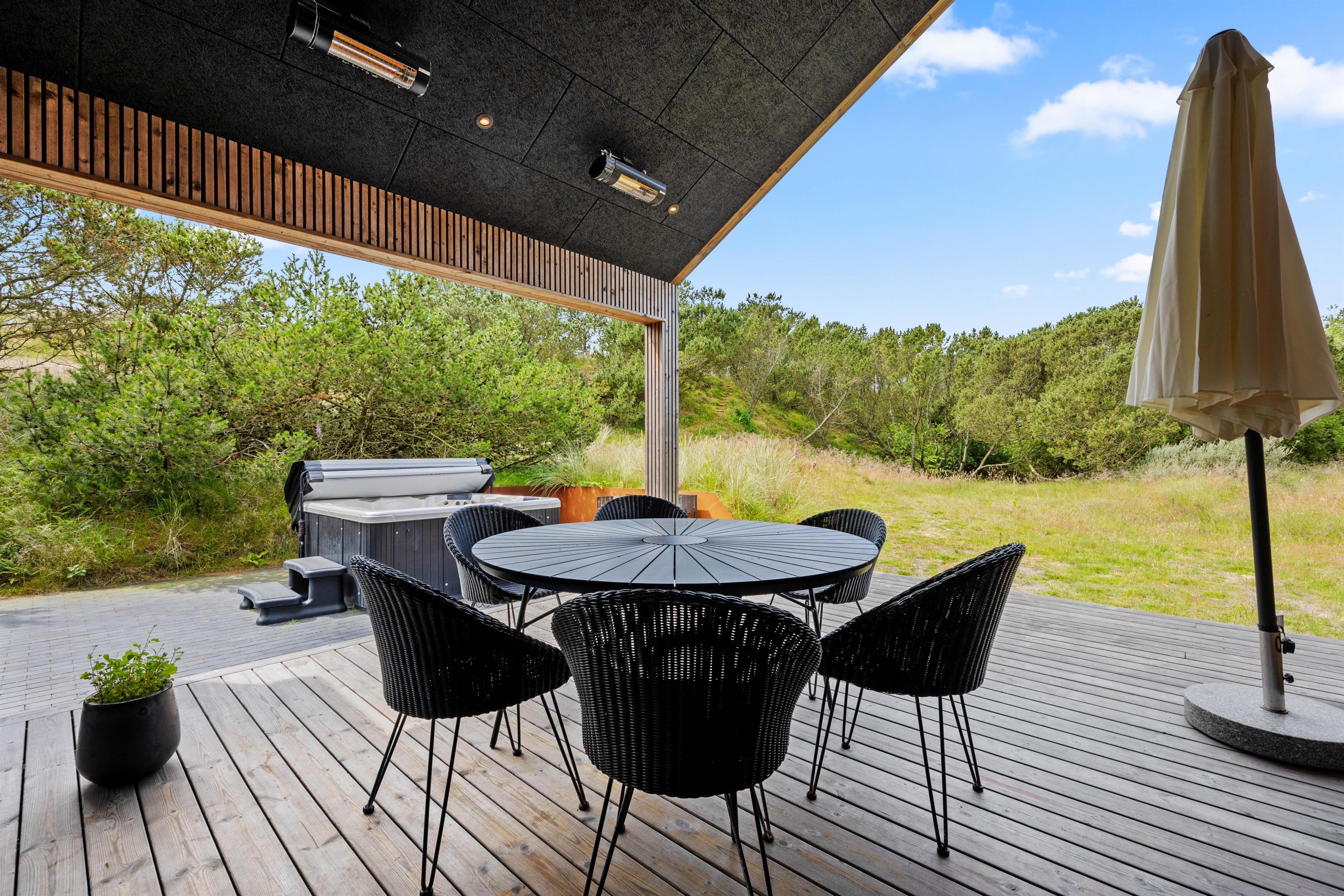 Den smukke terrasse har både et afskærmet og et overdækket område, så I kan flytte rundt efter solen. Tag solbad på liggestolene eller slap af i havemøblerne. Hvis I har børn med, kan de udforske den spændende naturgrund imens. Tænd op i grillen til aften og nyd et lækkert grillmåltid sammen. Bagefter kan I gå de 600 meter til stranden og opleve solnedgangen i Vesterhavet - det er altid en imponerende oplevelse. Slut dagen af med en uforglemmelig aften i det udendørs boblebad, og med lidt held kan I nyde stjernehimlen over Fanø.